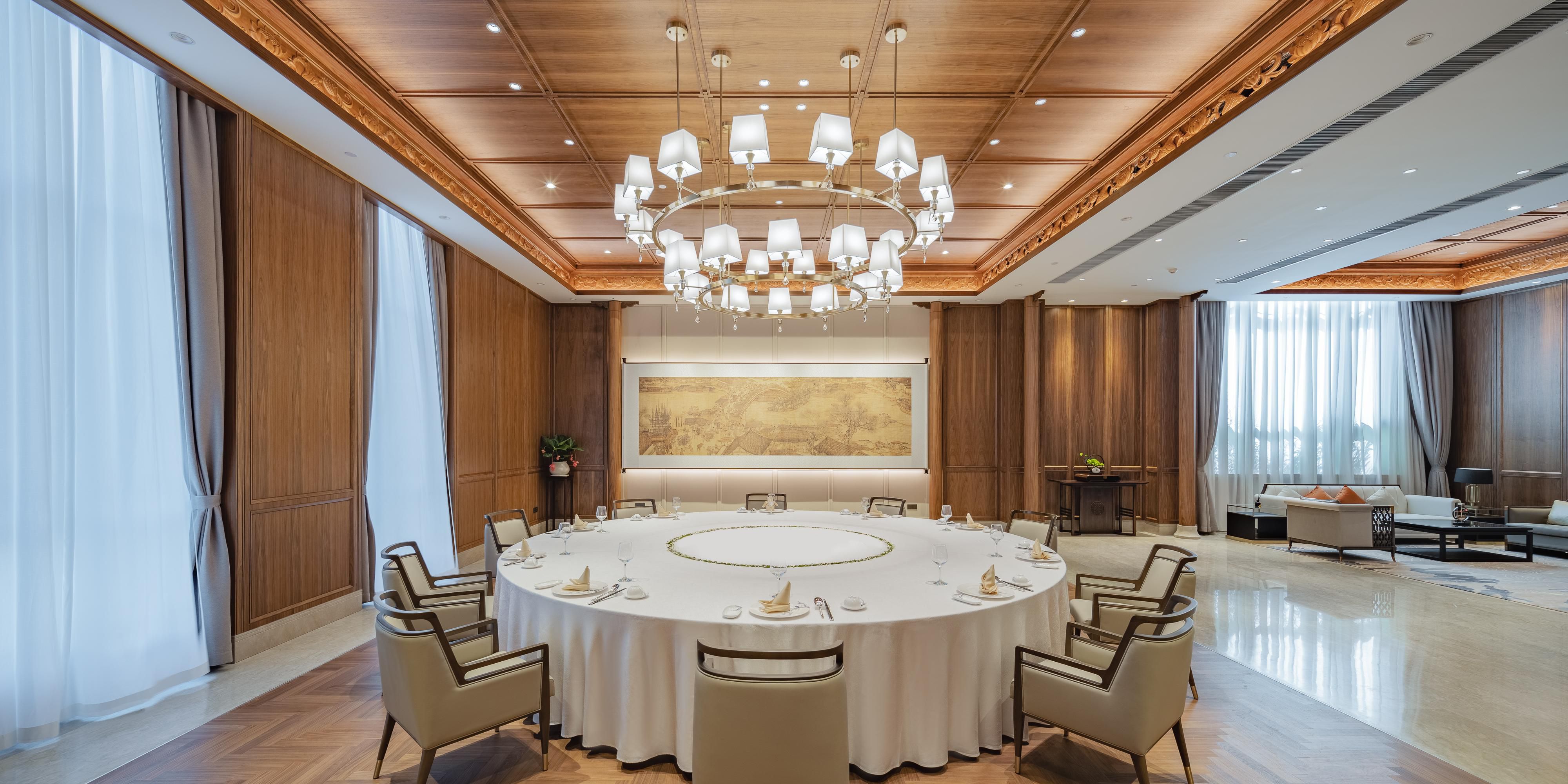 我们的自助早餐提供新鲜的糕点,而鸿源粤菜餐厅的私人餐厅则装饰着水晶吊灯,突显中国艺术气息。