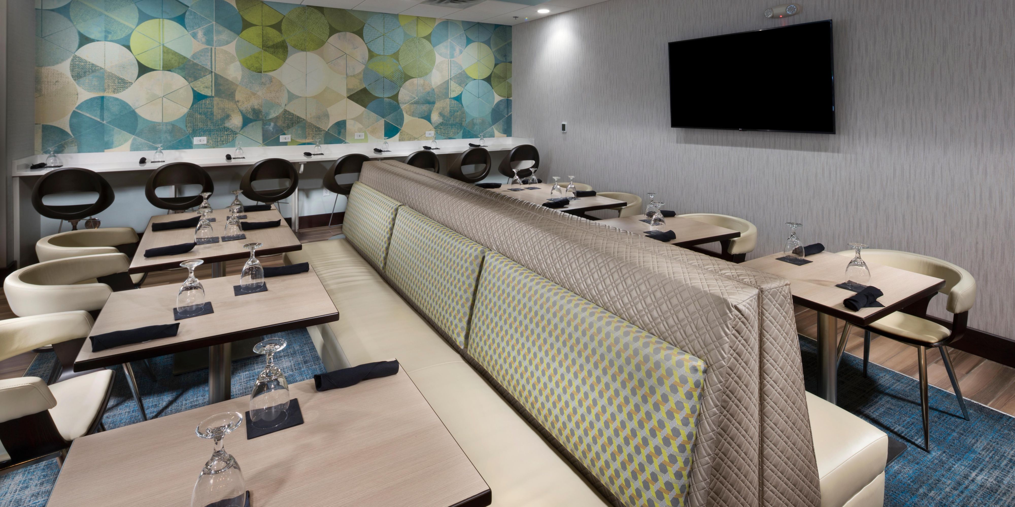 Runway 9 Lounge is a full-service lounge featuring a sleek, contemporary design with a relaxed, casual vibe. Whether you're meeting friends or unwinding solo, it’s the perfect spot to enjoy handcrafted drinks and laid-back ambiance. Guests can also enjoy the full American cuisine menu from our Concourse B Restaurant, featuring elevated comfort food made with locally sourced ingredients.