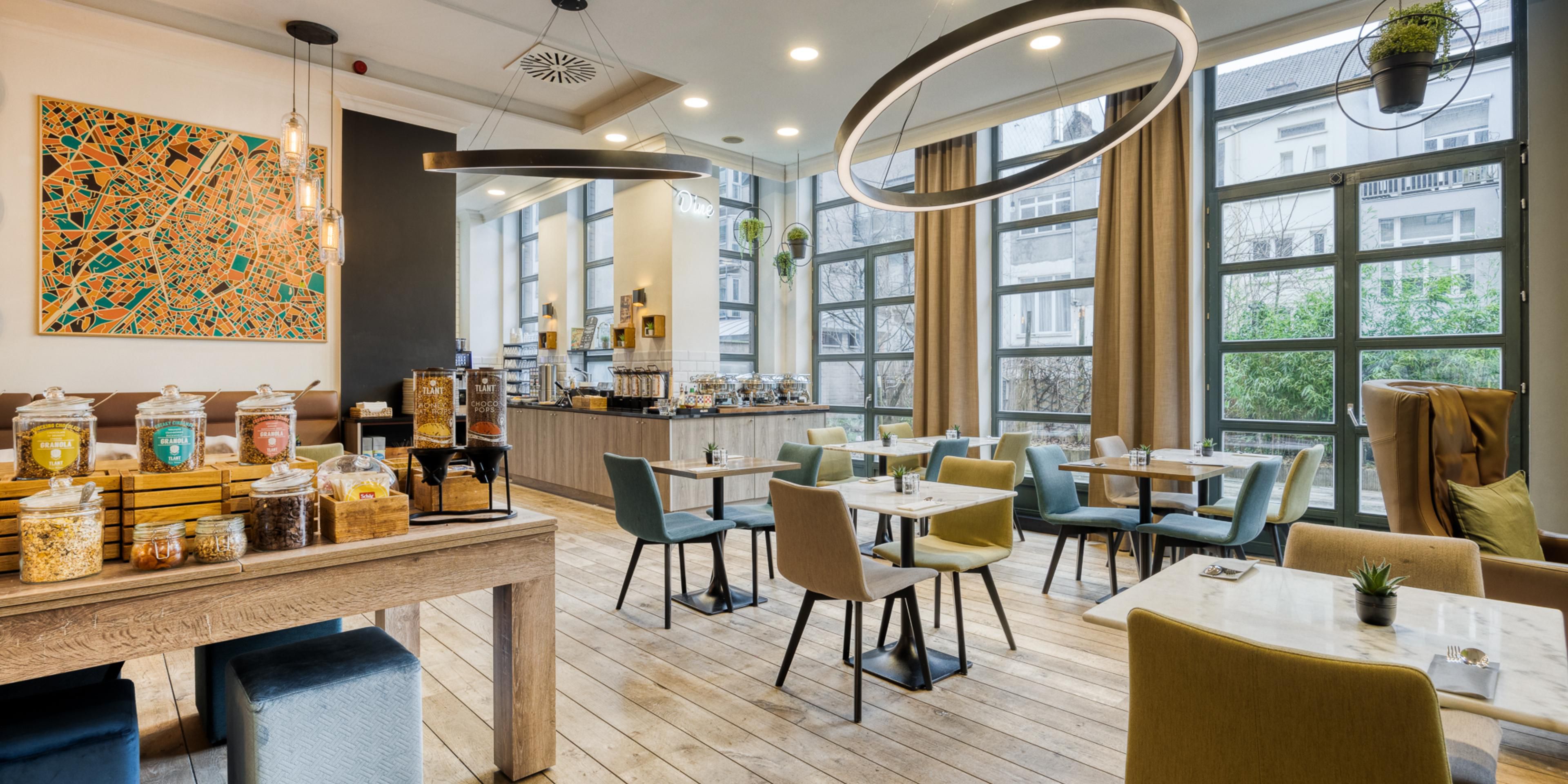 Choose from a variety of pastries, pancakes or eggs for breakfast, and stay up-to-date with the latest news on TV. The brasserie serves a wide variety of European dishes for lunch and dinner. Enjoy it on the cosy terrace when the weather is nice.