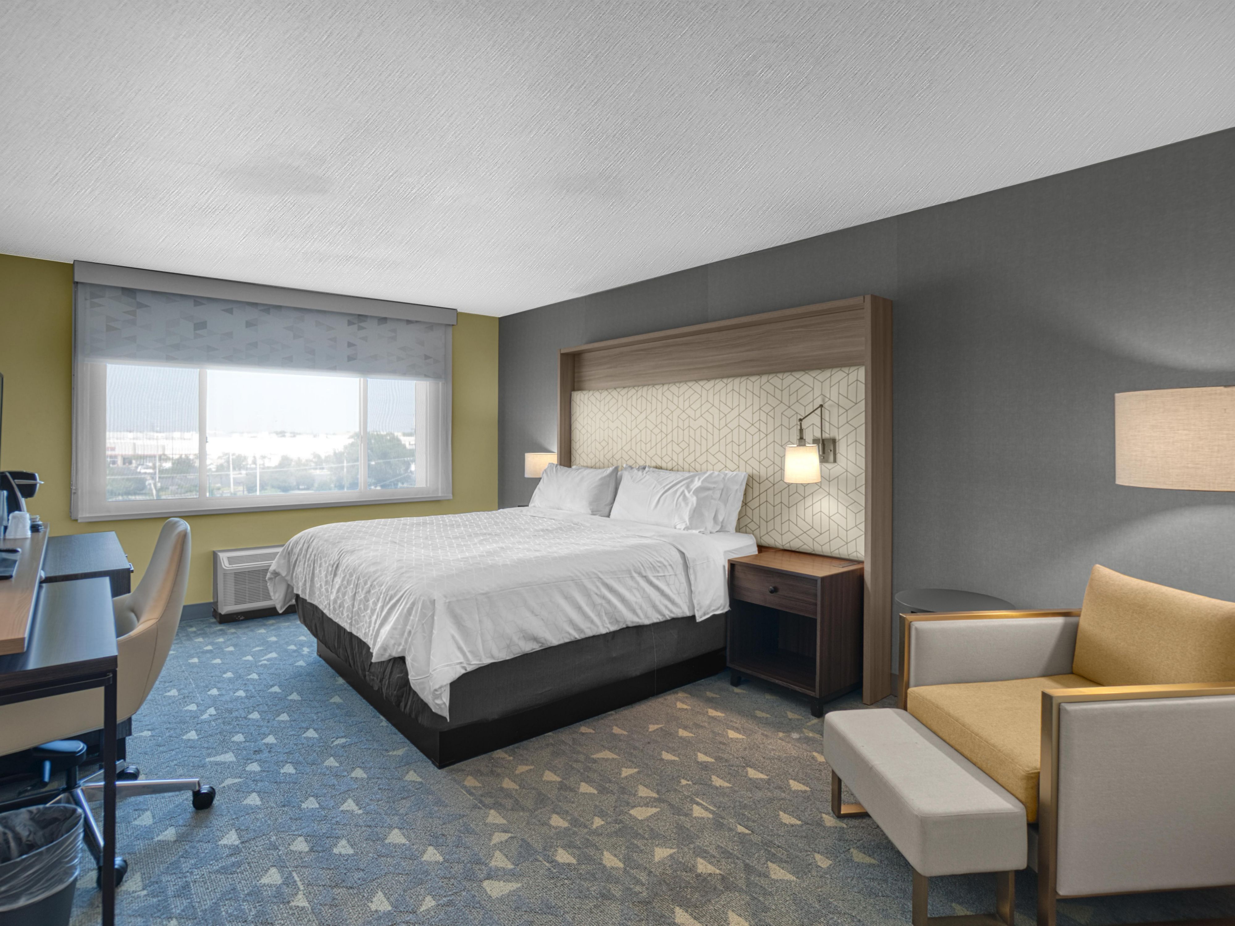 A Chicago Airport hotel room offers visitors a one-of-a-kind experience in comfort and incredible conveniences, with rooms providing guests plush beds, complimentary high-speed Wi-Fi internet access, Keurig coffeemakers, smart TVs, and mini refrigerators.
