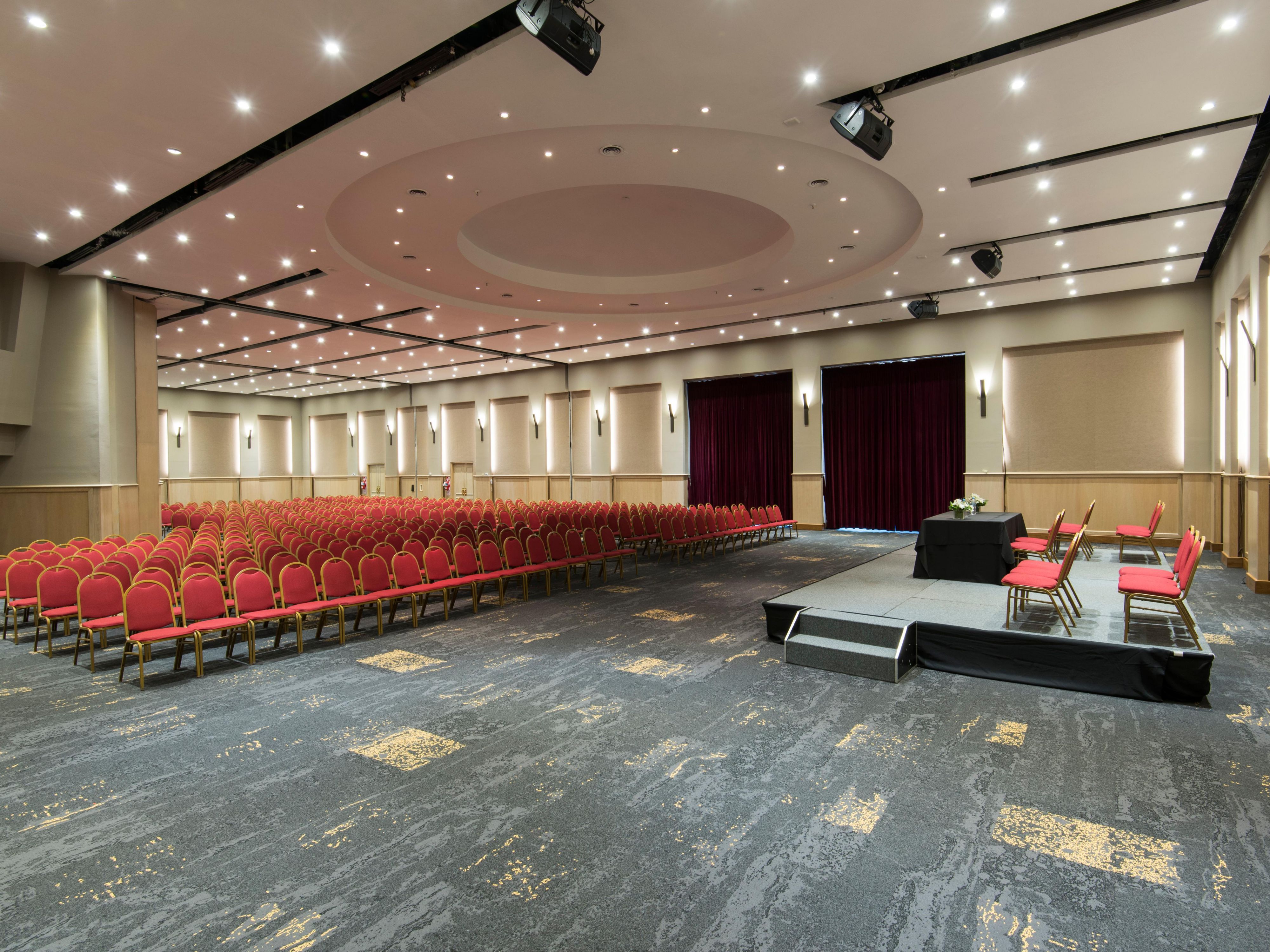 640 m² of space, ideal for conferences, exhibitions, seminars, meetings and social events. It has an exclusive entrance and private parking. The main hall can accommodate 800 people, with state-of-the-art technology.