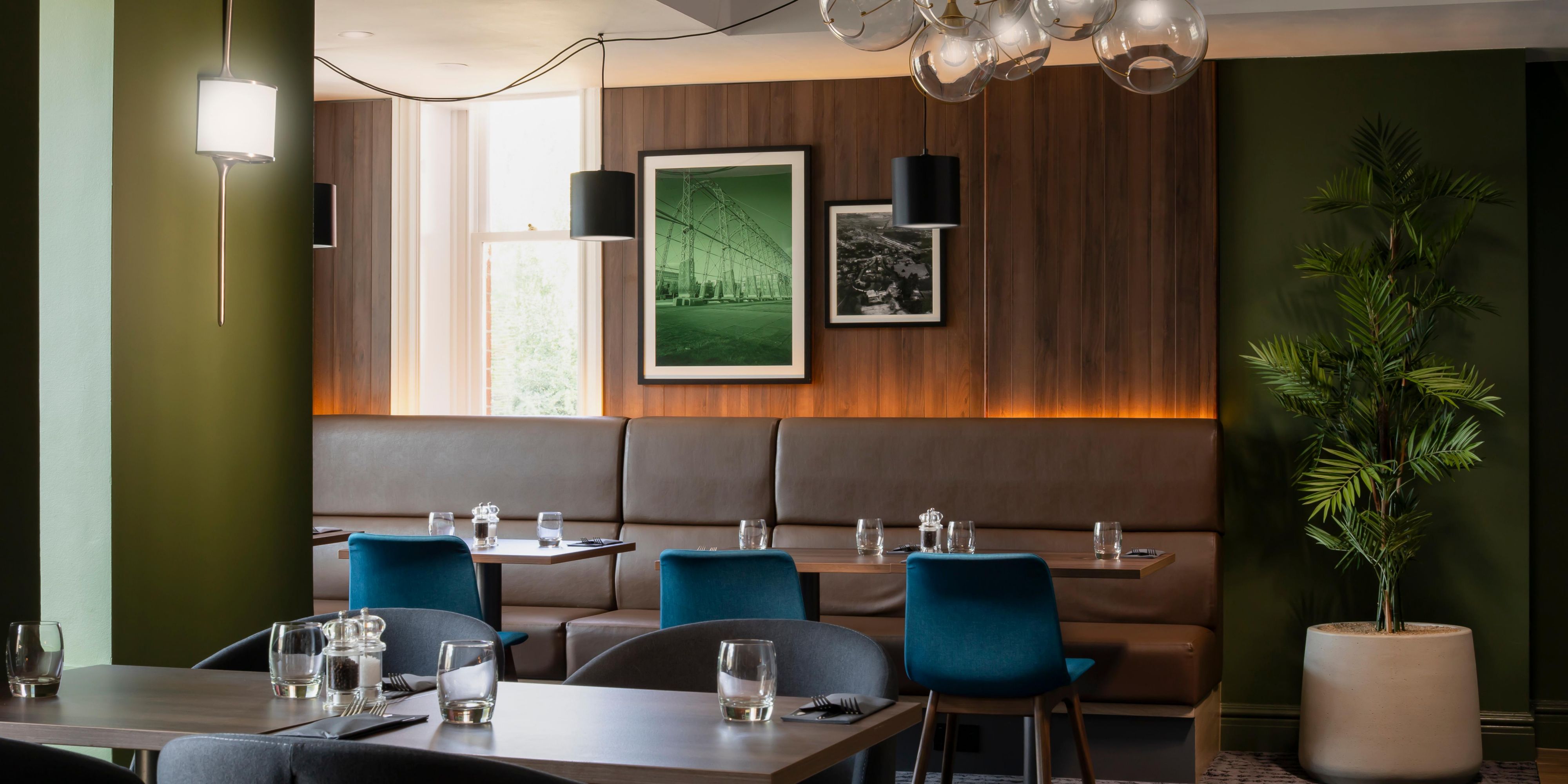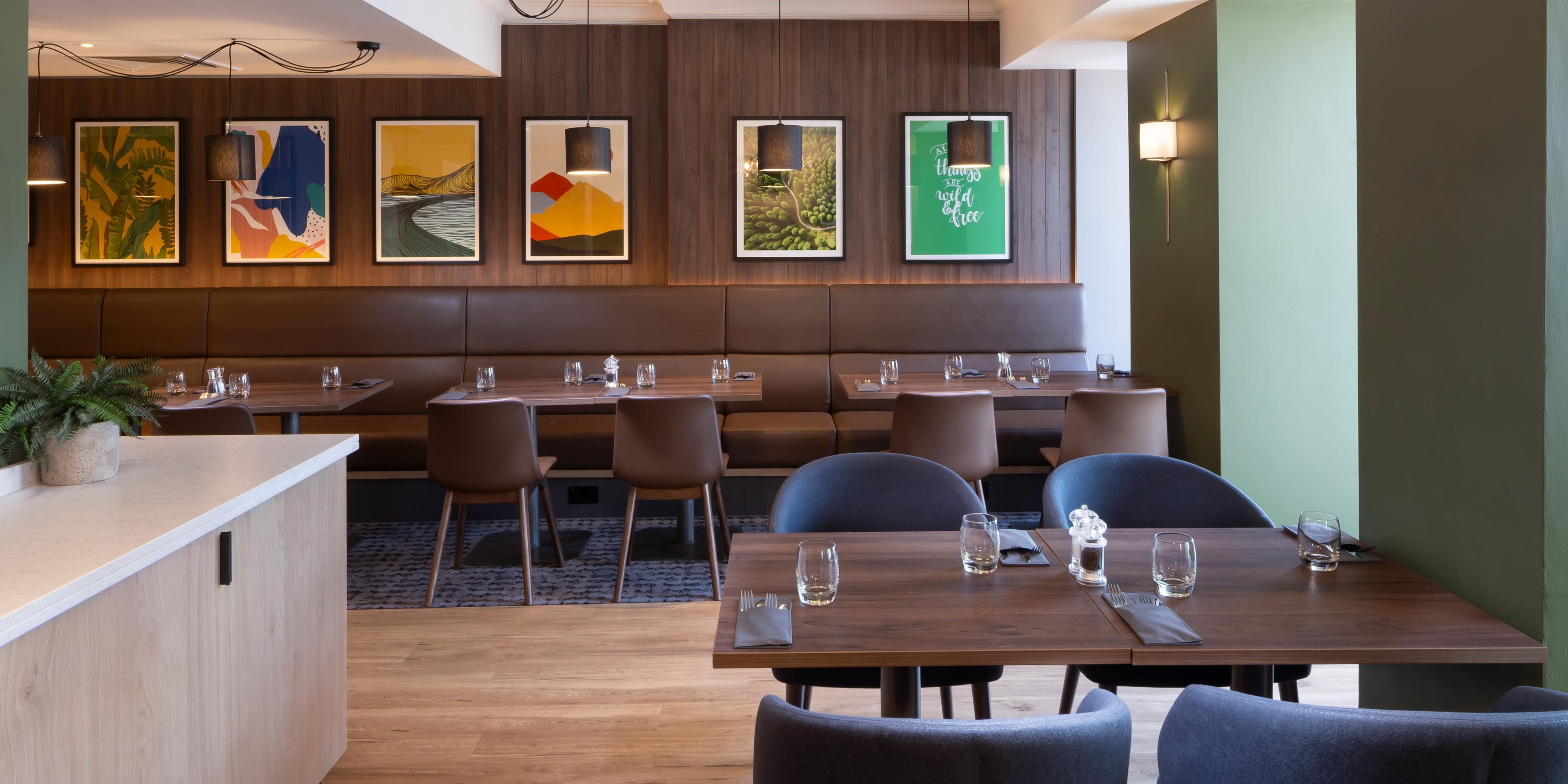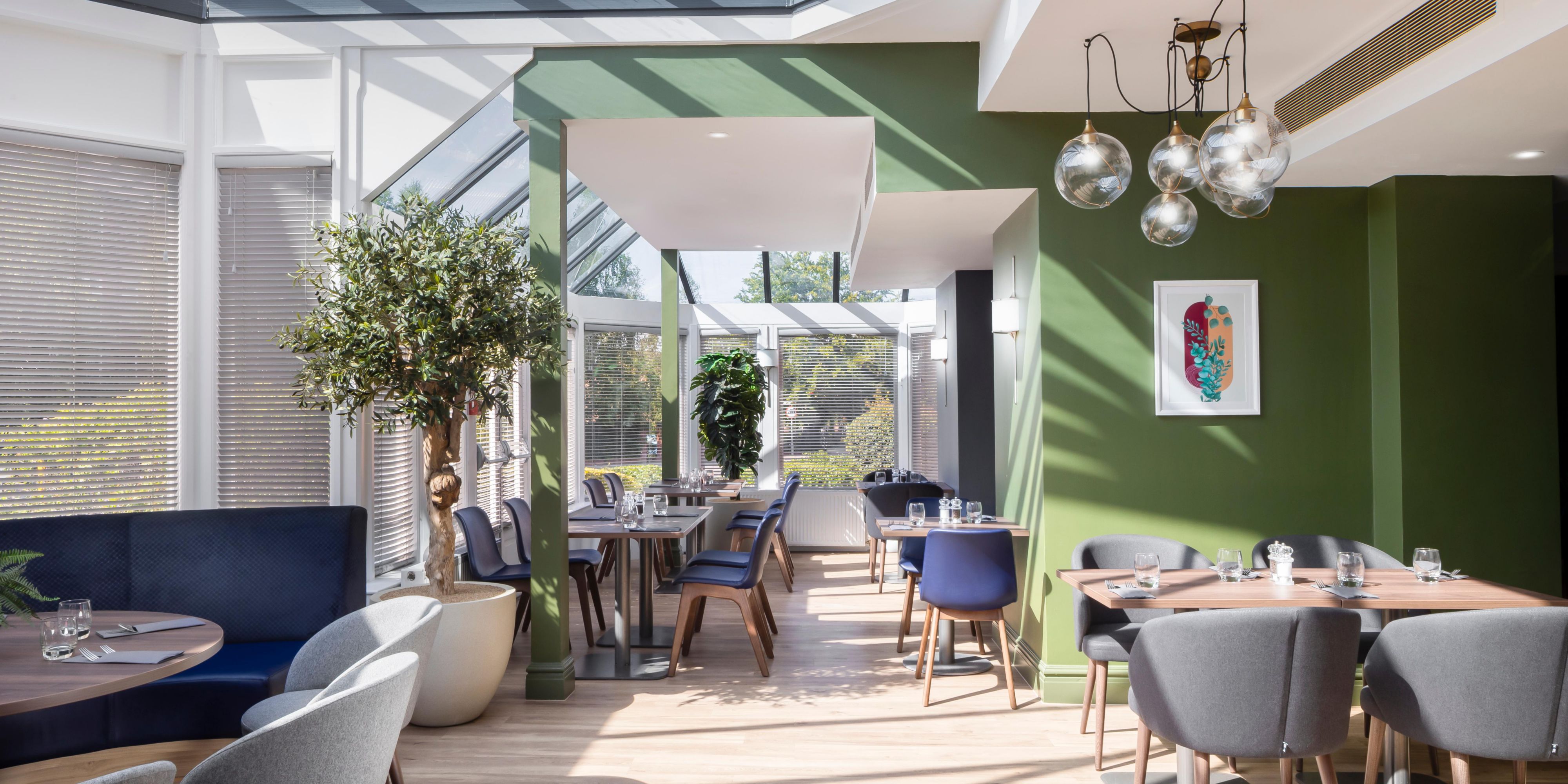 You can enjoy modern British dishes in the restaurant's bright conservatory or dine al fresco on the patio. Relax with a glass of wine in the stylish, contemporary Open Lobby, where you can order snacks.
