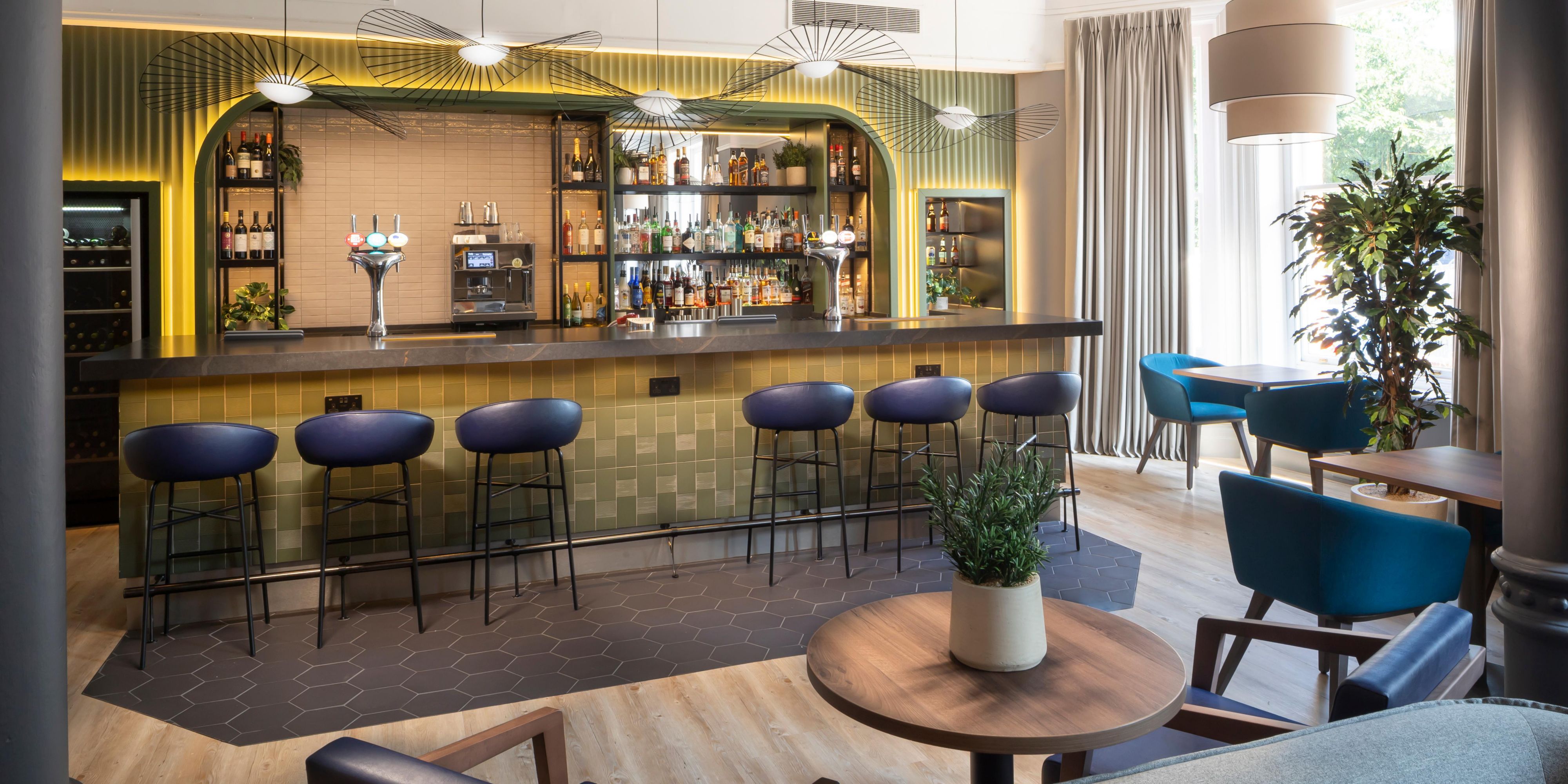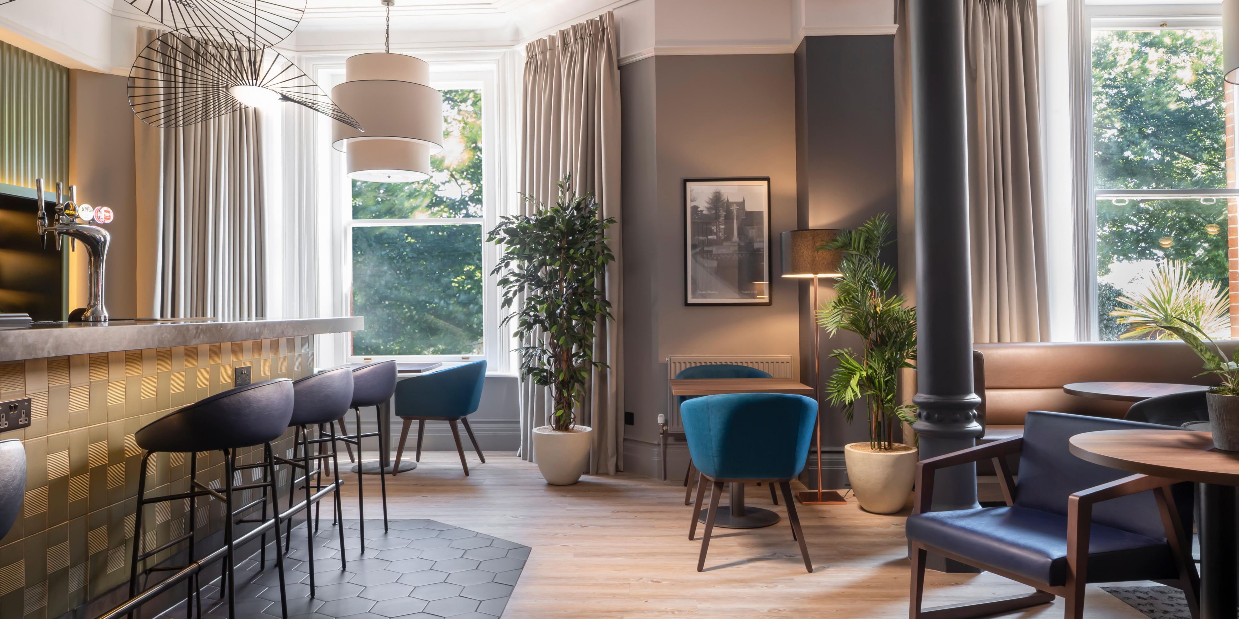 You can mingle in the Open Lobby or take your drink into the garden in fine weather and enjoy Al Fresco dining in the summer months. Watch 24-hour news coverage or live sport on our two large screen televisions. Our Open Lobby provides a 24-hour service to all hotel guests. Newly refurbished lounge in 2018.