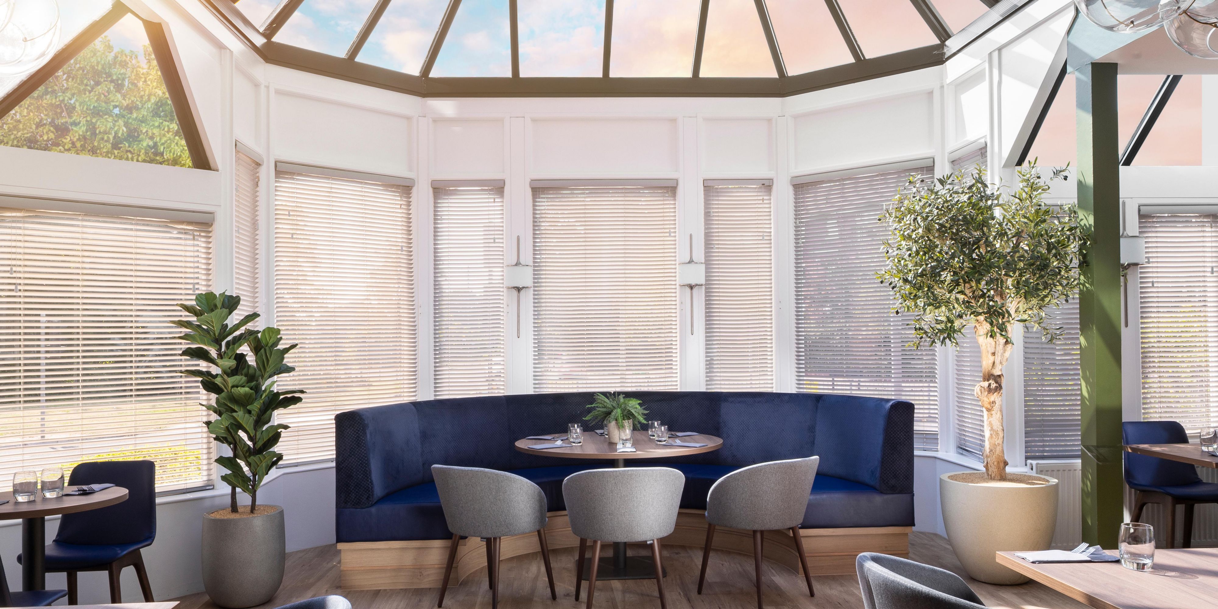 Dine in style in our contemporary and modern conservatory restaurant, serving Continental and British dishes. We cater to all guest dietary requirements and offer a variety of wines to complement your dish.