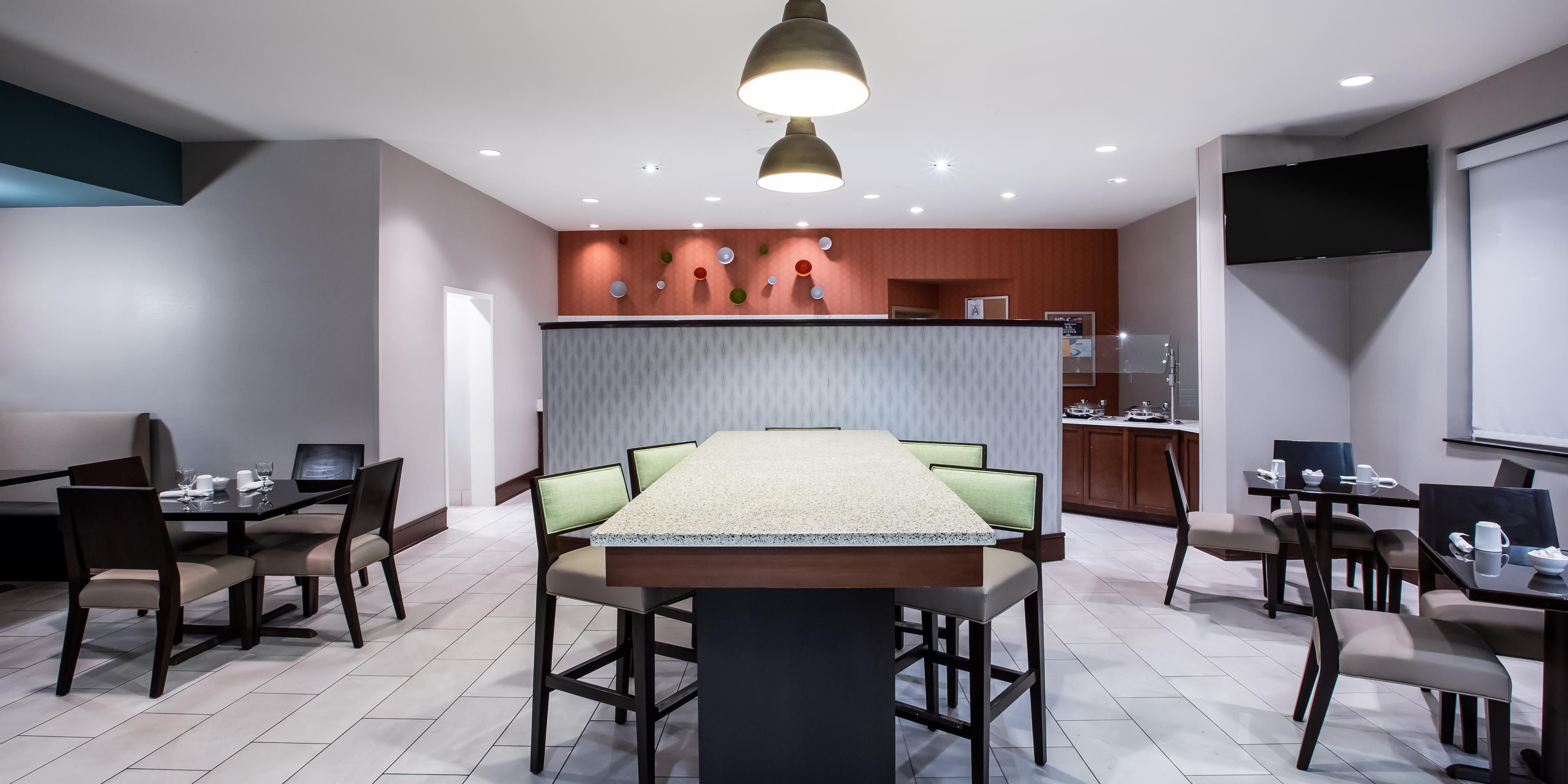The Restaurant and Lounge is open 7 days a week and is located on the first floor of the hotel. Guests can enjoy daily cocktails and dinner specials. Enjoy your favorite sporting event on our large HD Televisions. Guests who are IHG Reward Members can charge their food and beverage to their guest room and earn 10 points for every $1 spent in the restaurant.