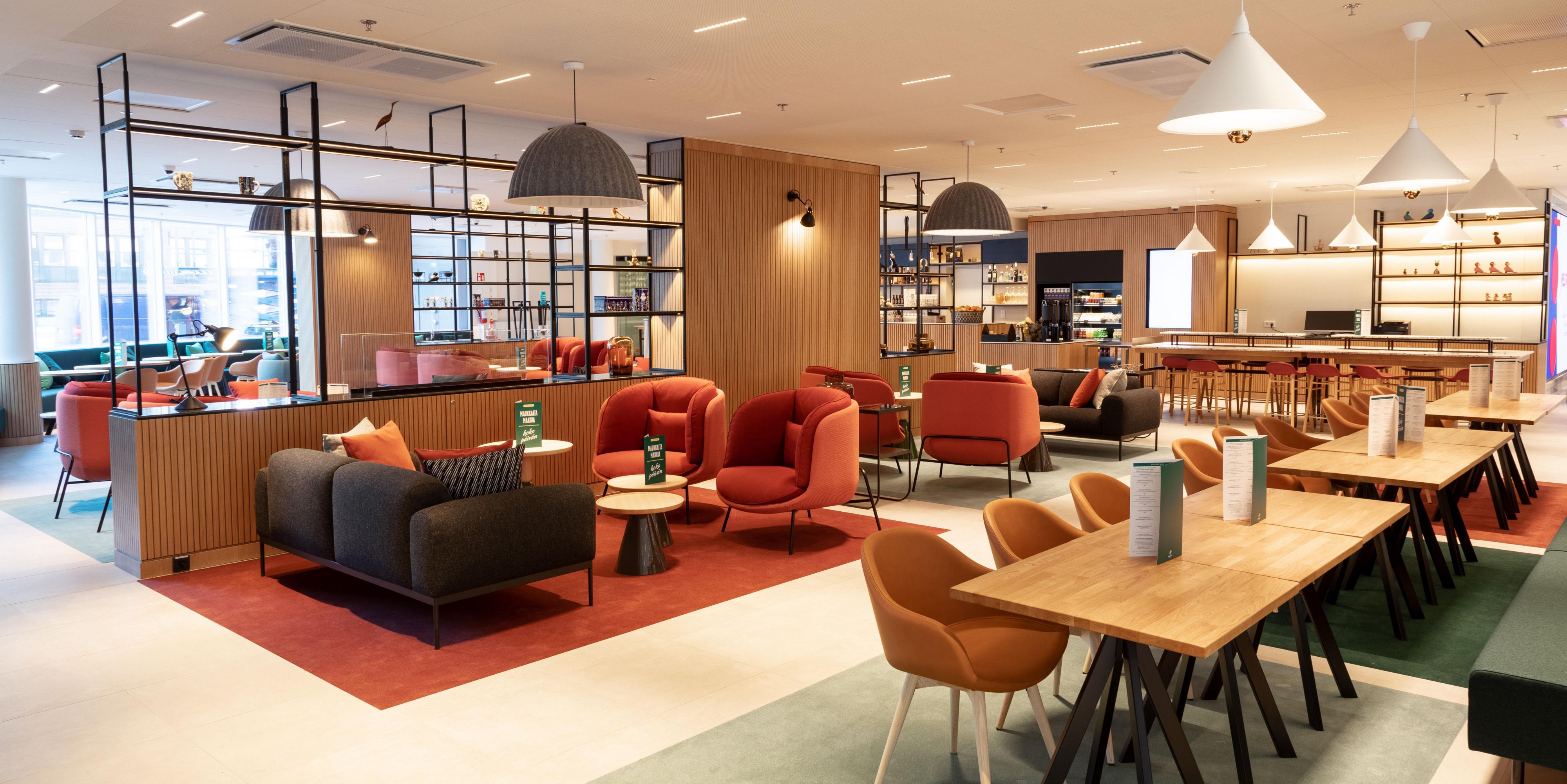 Holiday Inn Open Lobby combines the hotel's public places and the restaurant into a large living room type area where guests can freely choose where to eat, drink, work, rest and socialise in a relaxed atmosphere.