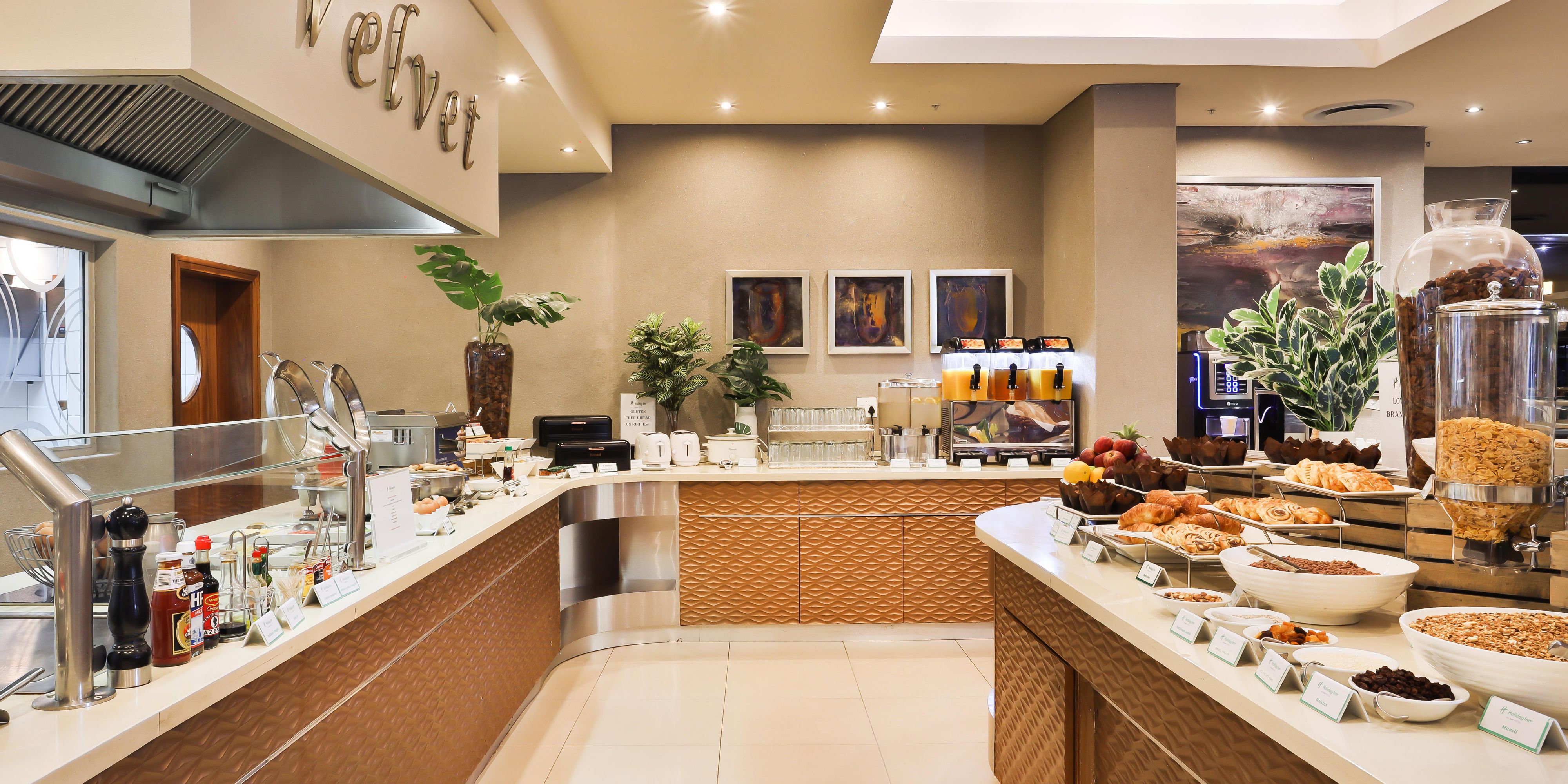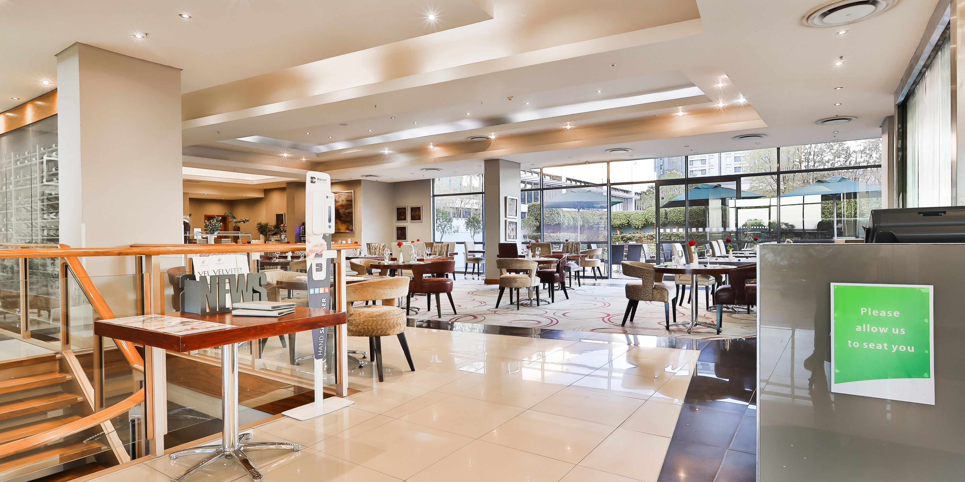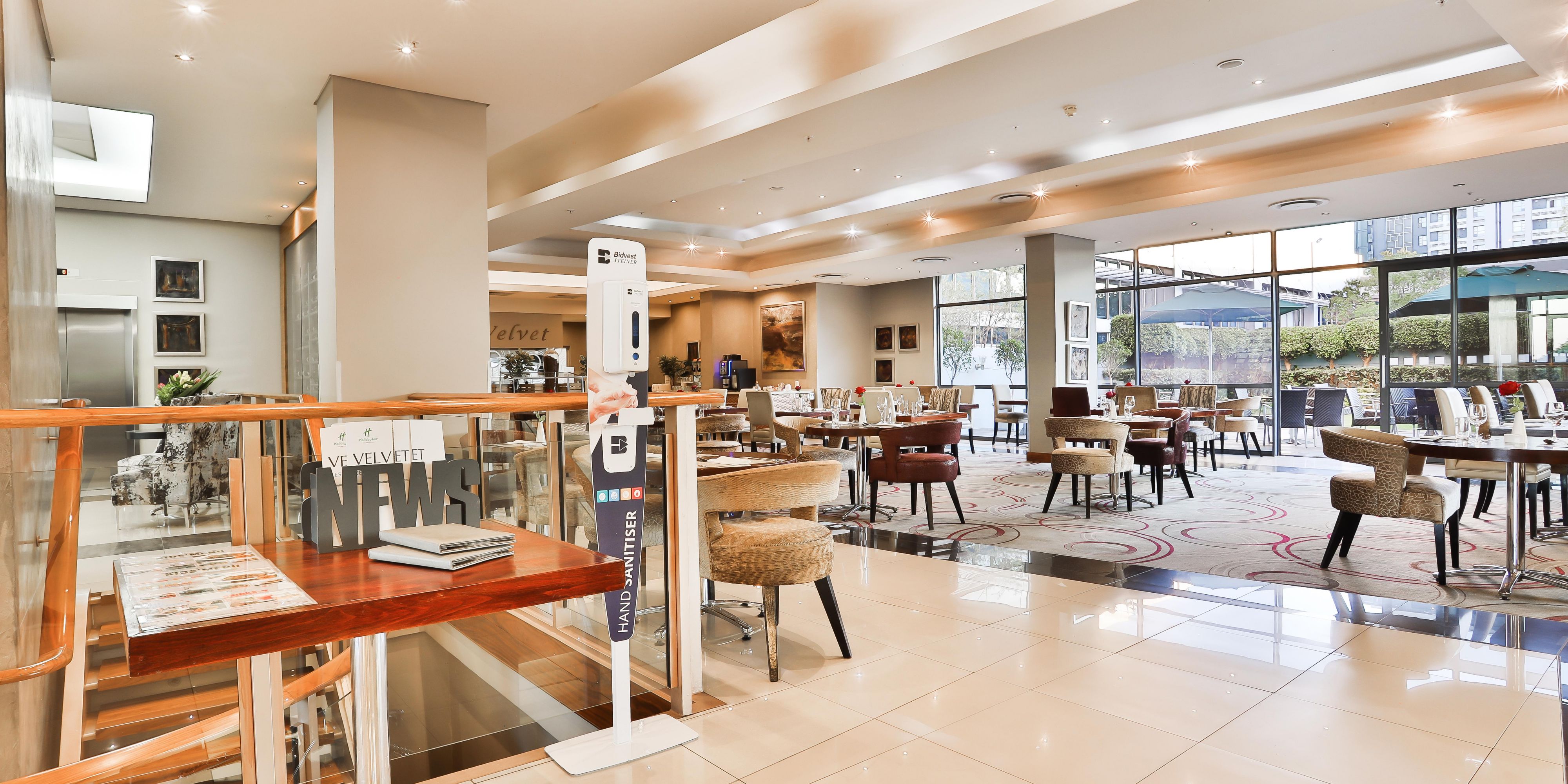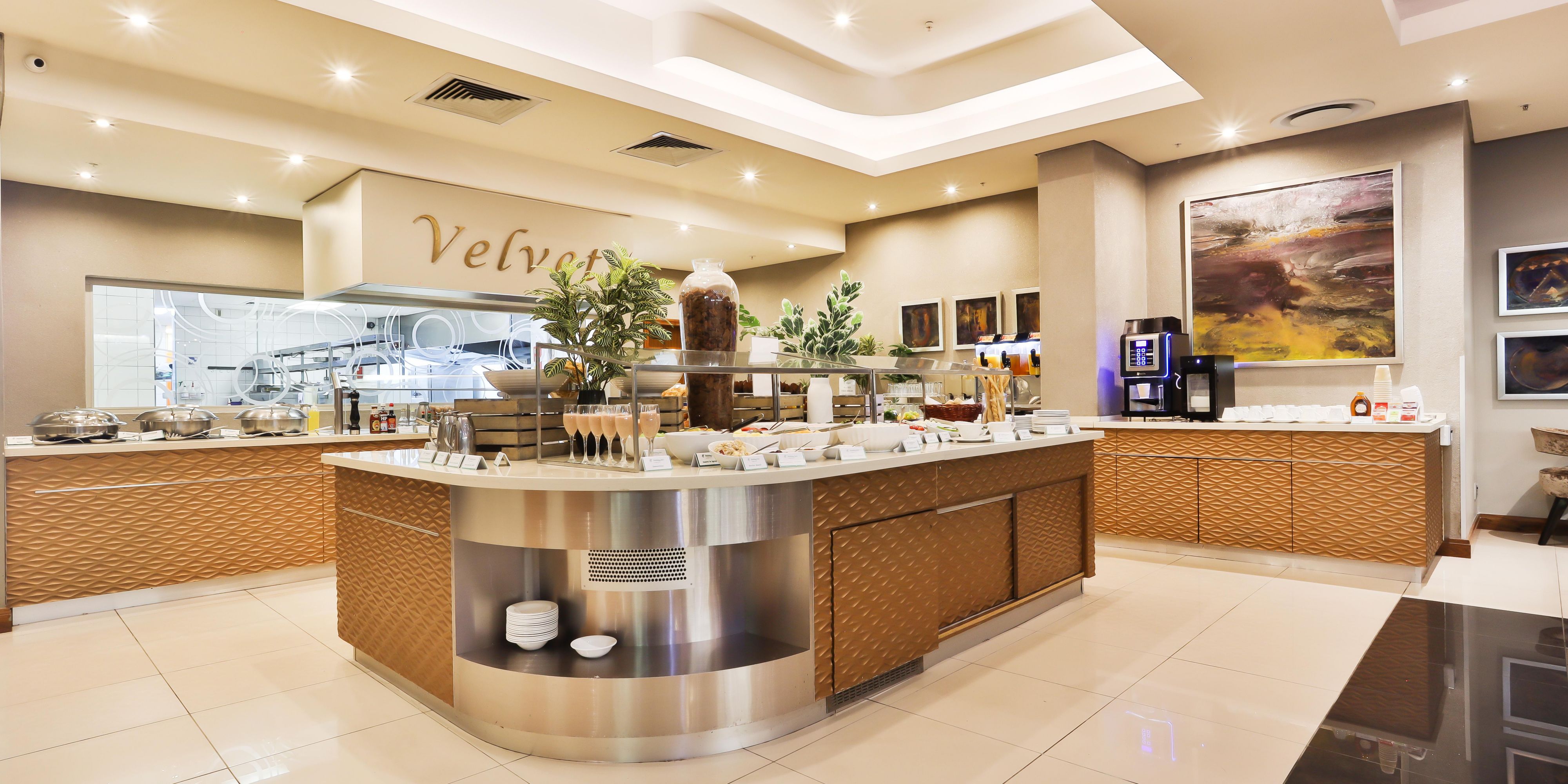 Elegant Velvet Restaurant has chic touches like a glass-walled waterfall and velvet chairs. Choose a South African wine to wash down gnocchi and fillet steak prepared in the open kitchen. Fruity cocktails and views of Johannesburg make our lounge unique.