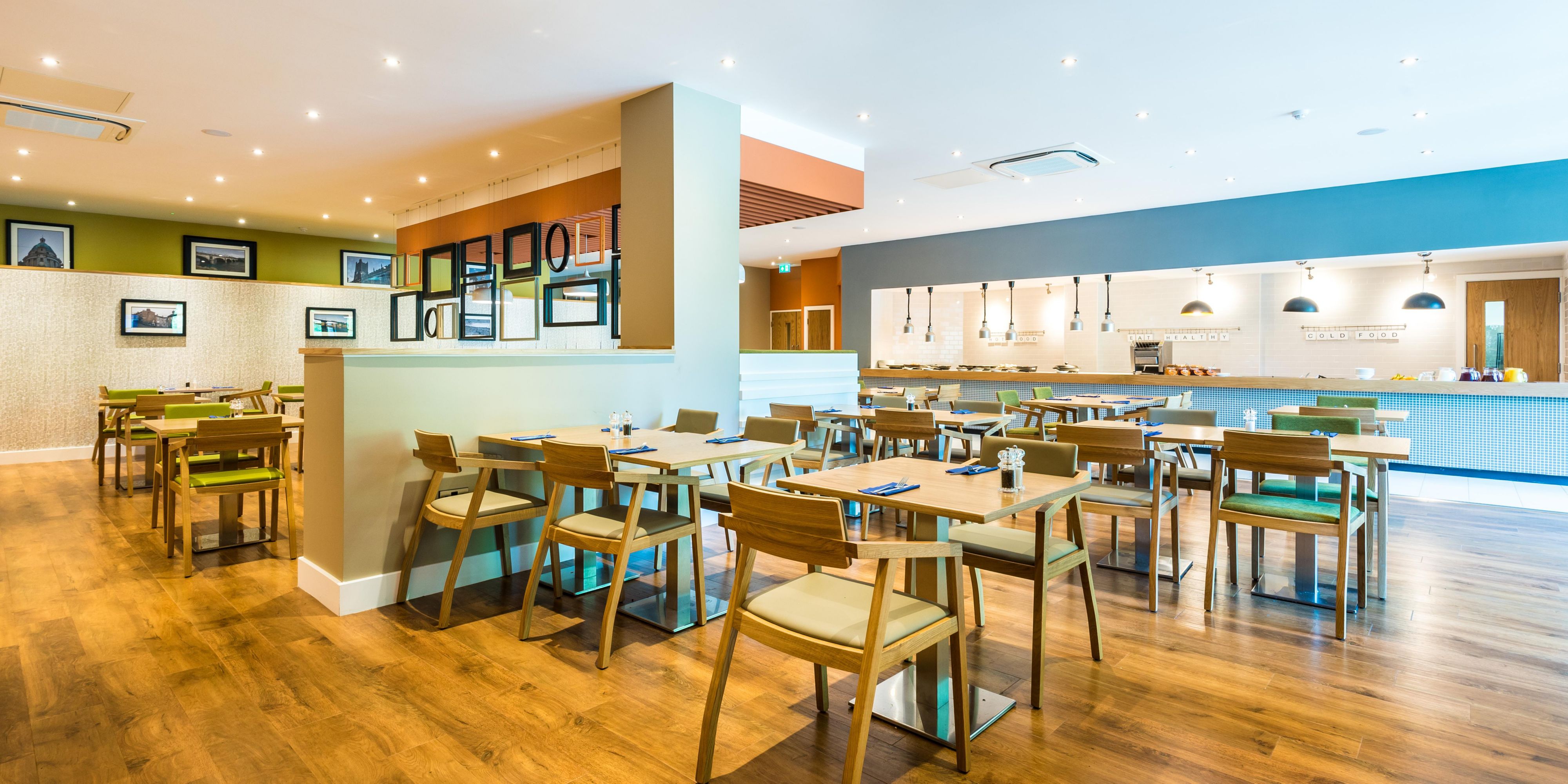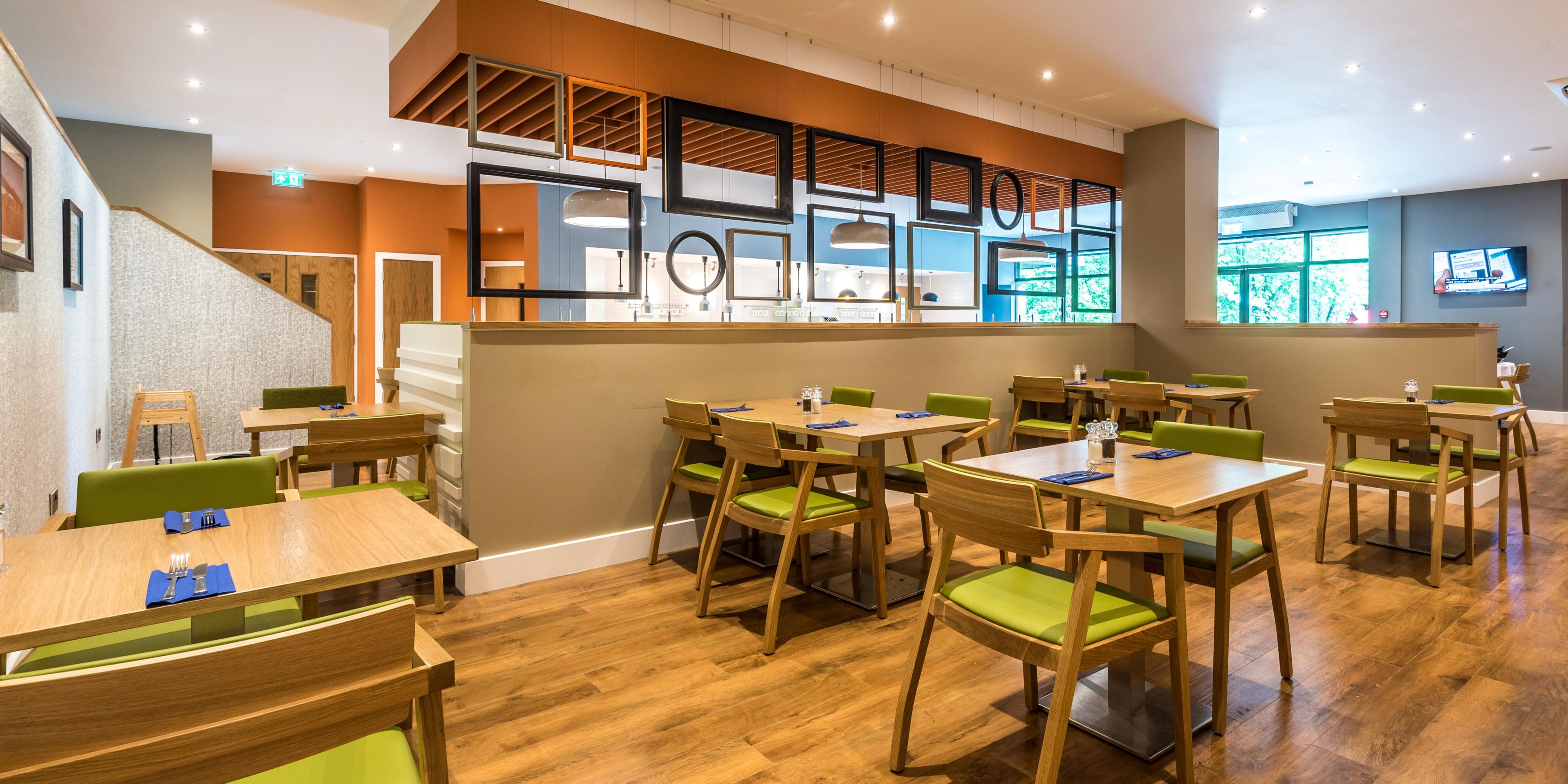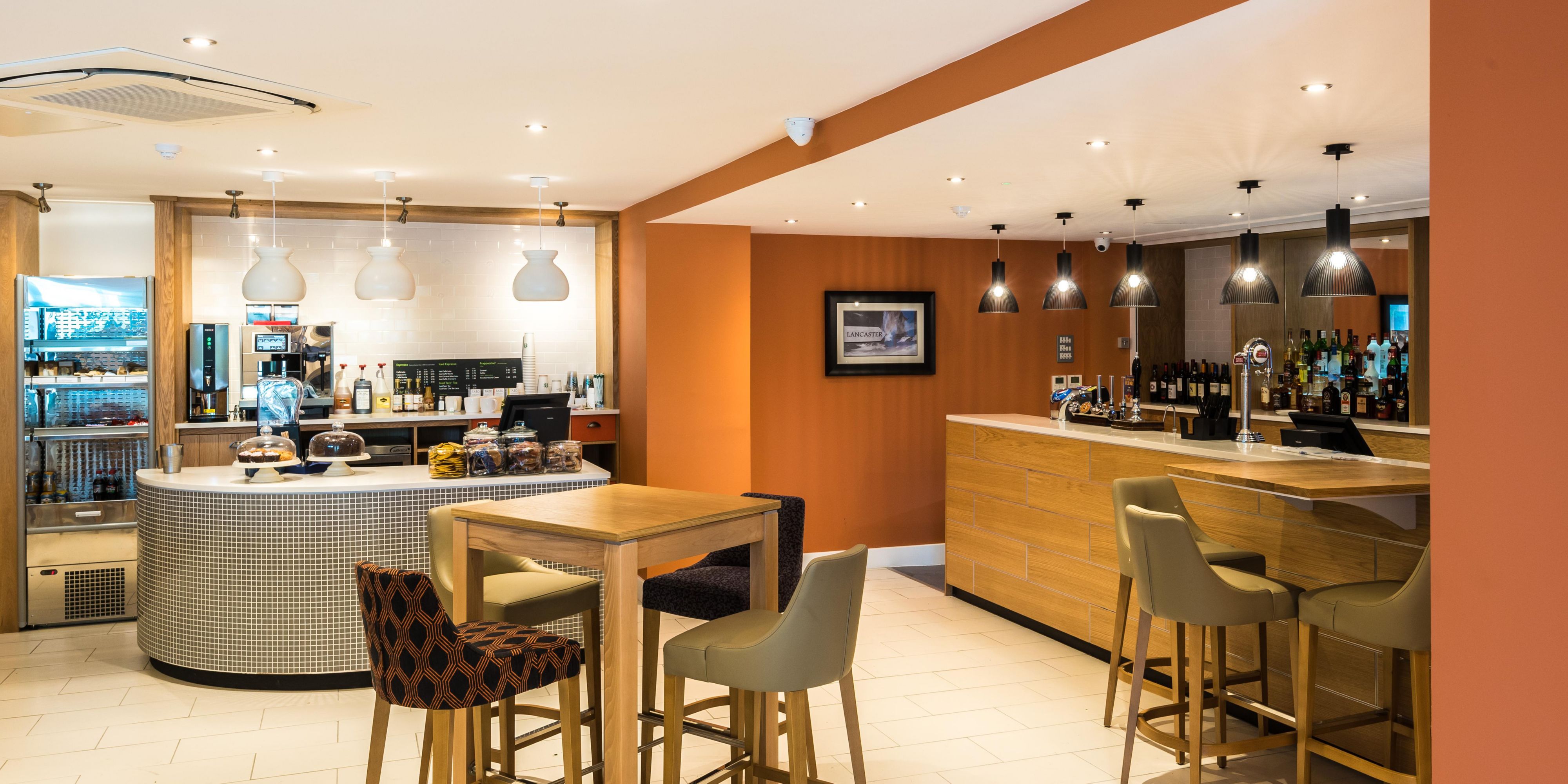 The bright, modern restaurant at Holiday Inn Lancaster offers all day dining with indoor and patio seating. Start your day with hearty breakfast or brunch options, then enjoy a wide range of British classics, stone baked pizzas, global favourites like chicken makhani, and lighter bites. Vegetarian, vegan, and gluten free options are available, along with indulgent desserts and refreshing salads.