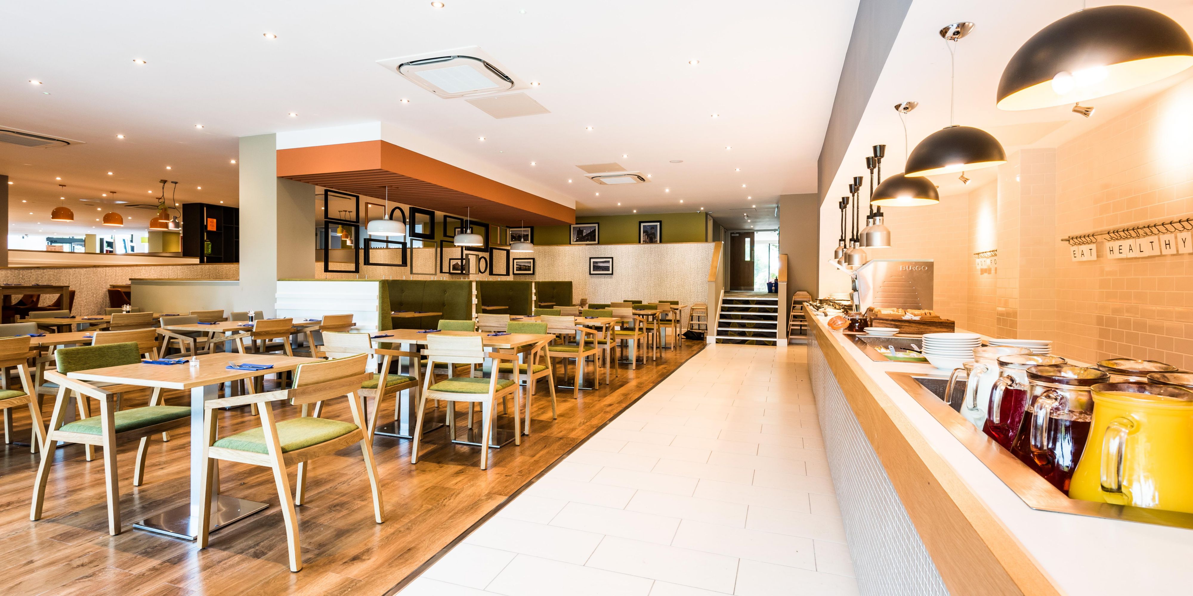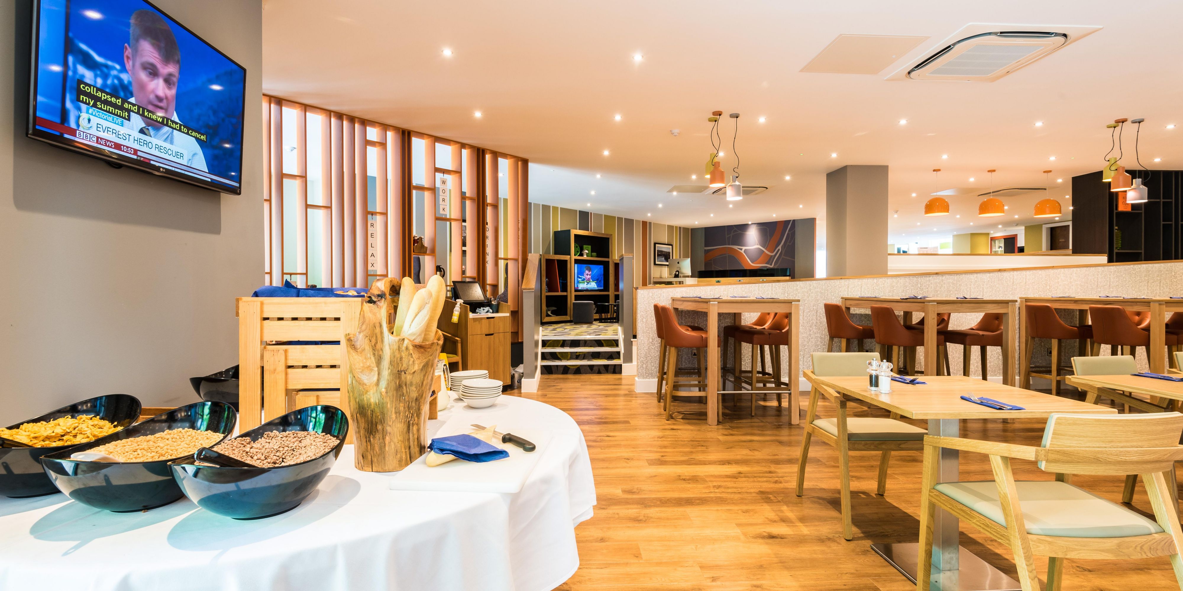Wake up with a buffet breakfast in the relaxed open lobby, or order British or continental dishes for dinner. You can dine alfresco on the terrace, take it easy over drinks and a burger in the bar or bag an armchair to enjoy live TV sports.