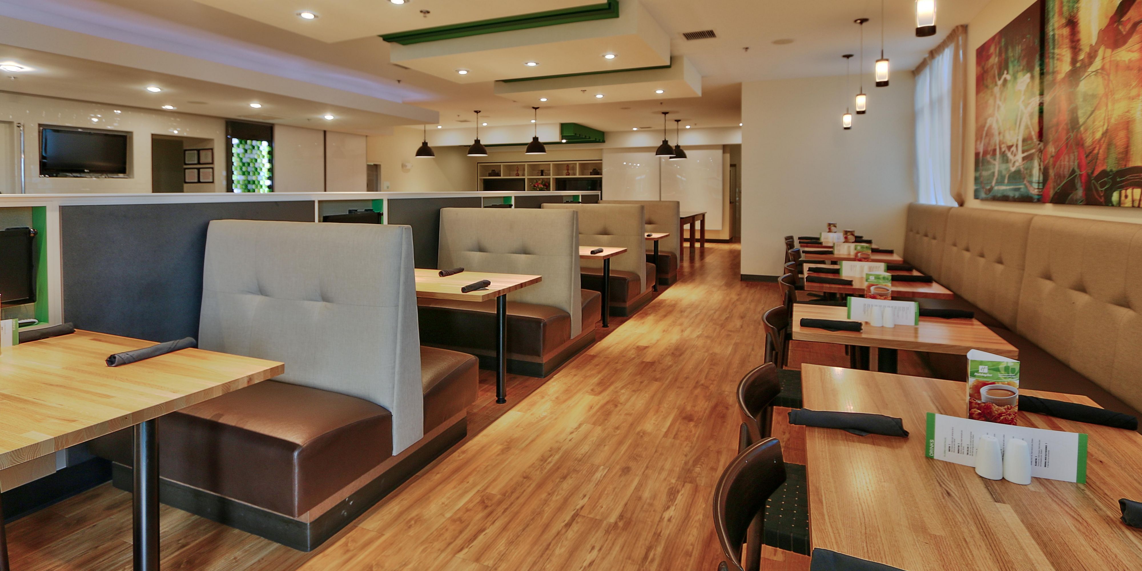 Join us daily in Oasis Bar & Grill. Breakfast is served from 6:30 AM to 9:30 AM Monday to Friday and 7:00 AM to 10:00 AM on Saturday & Sunday. Tasty made to order food is available for breakfast. Dinner is served from 5:00 PM to 10:00 PM daily.