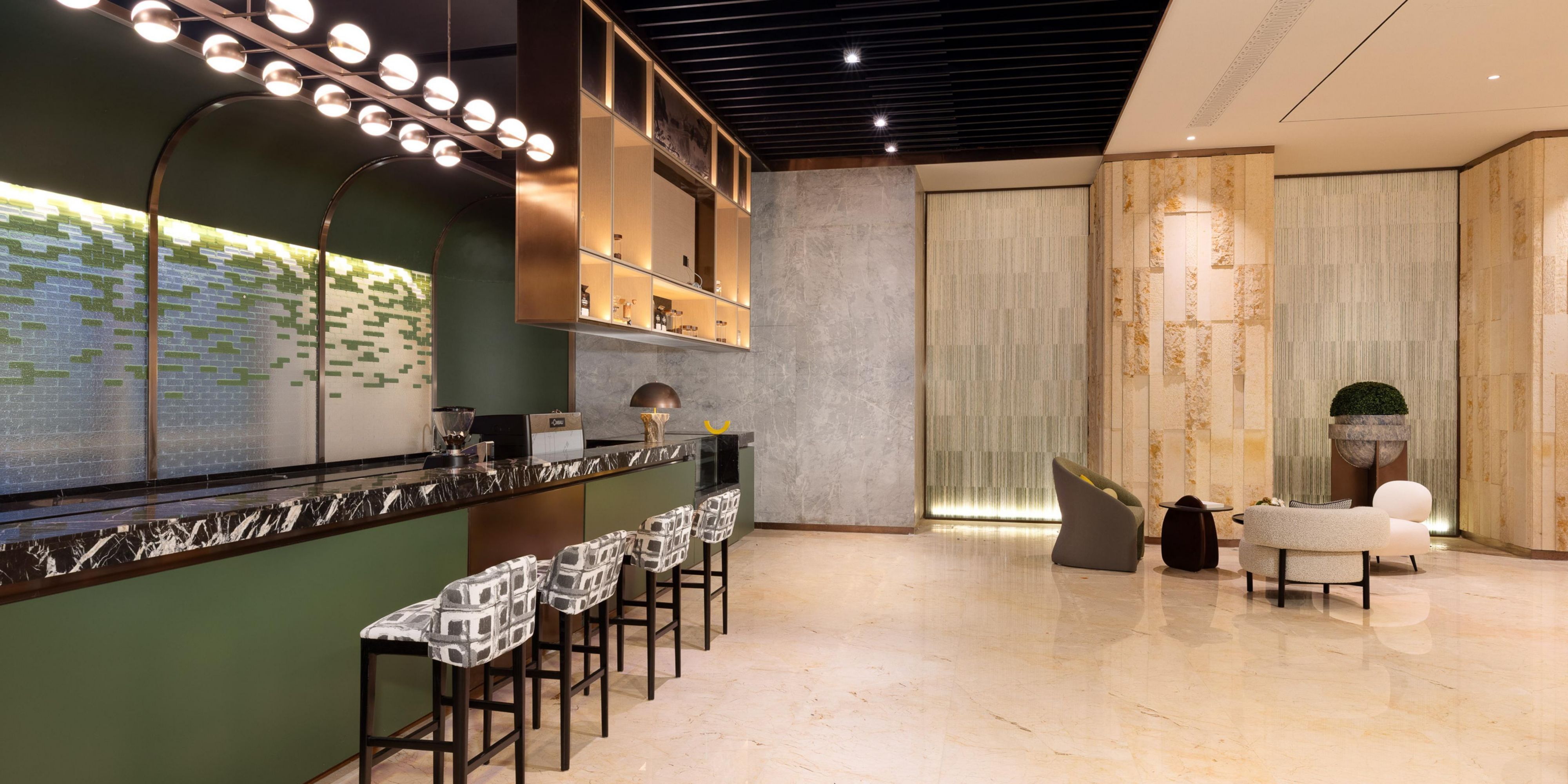 The open lobby bar on the first floor serves aromatic coffee, adding convenience and comfort to your journey.