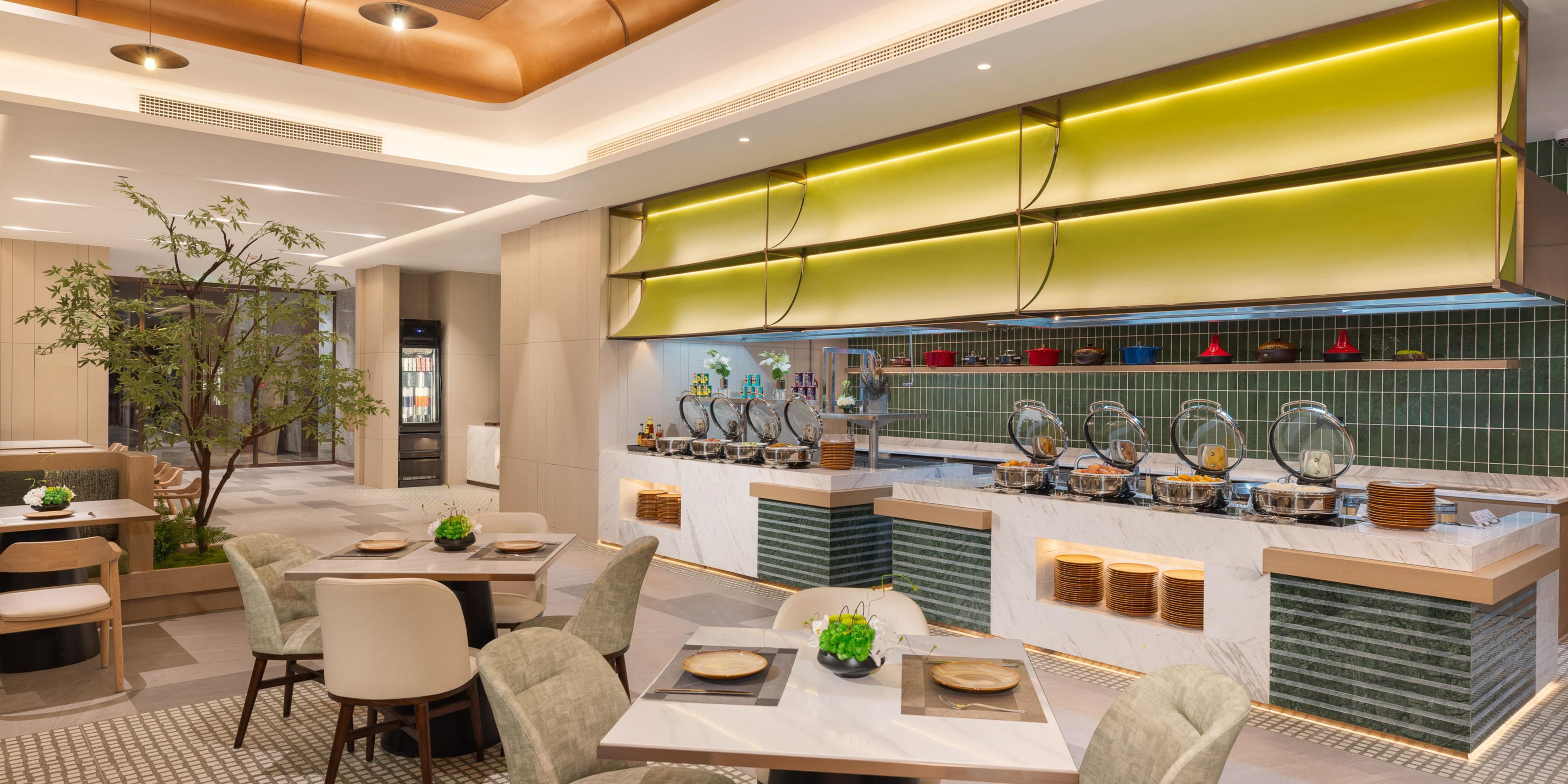 The hotel features an all-day dining restaurant offering a variety of flavors to satisfy every palate. The open lobby bar on the first floor serves aromatic coffee, adding convenience and comfort to your journey.