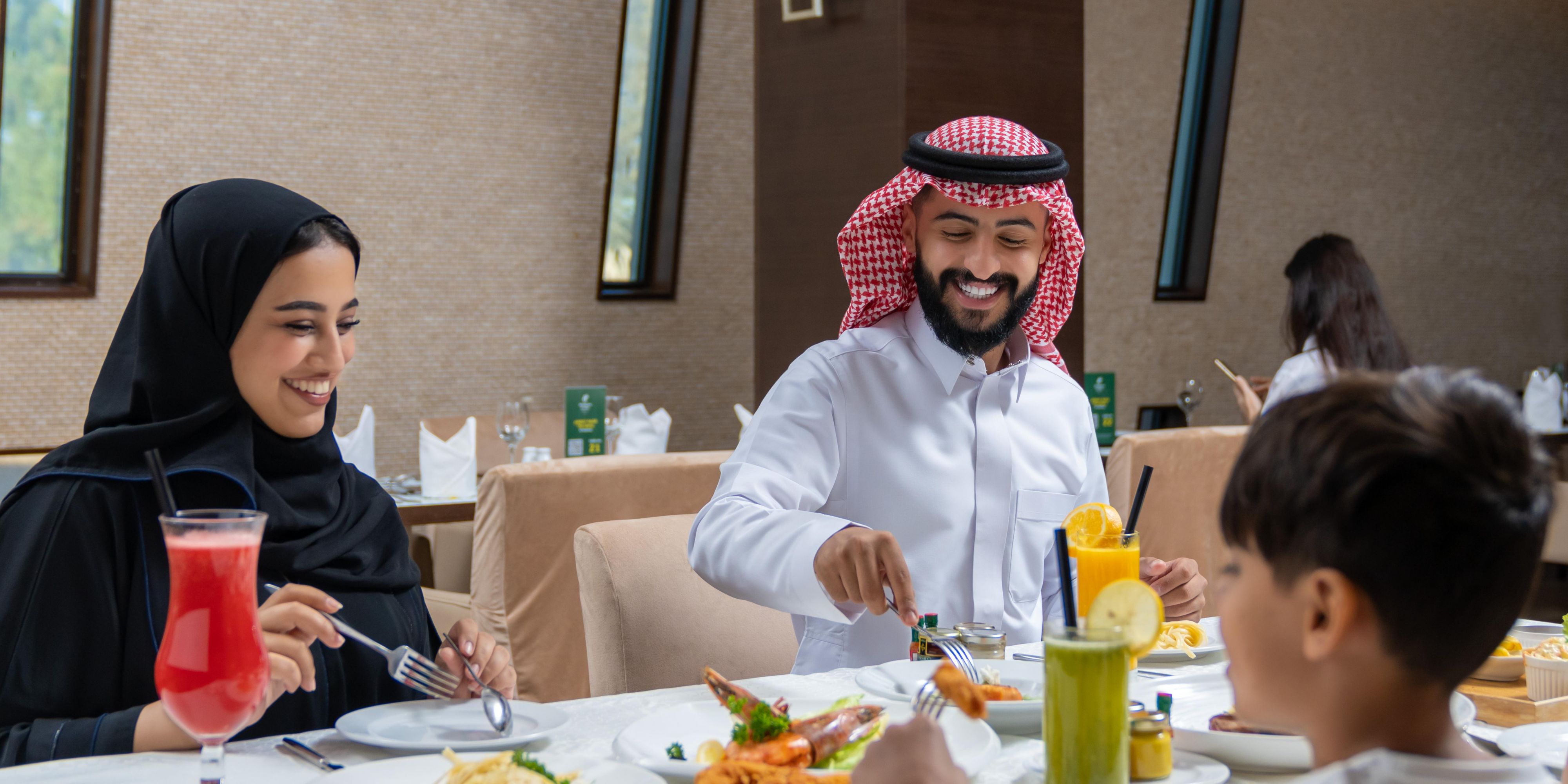 Start your day with a delicious breakfast at our in-house restaurant. In-room dining service is available around the clock. Al Walima Restaurant features a family section and can accommodate up to 100 guests, offering a variety of dining options