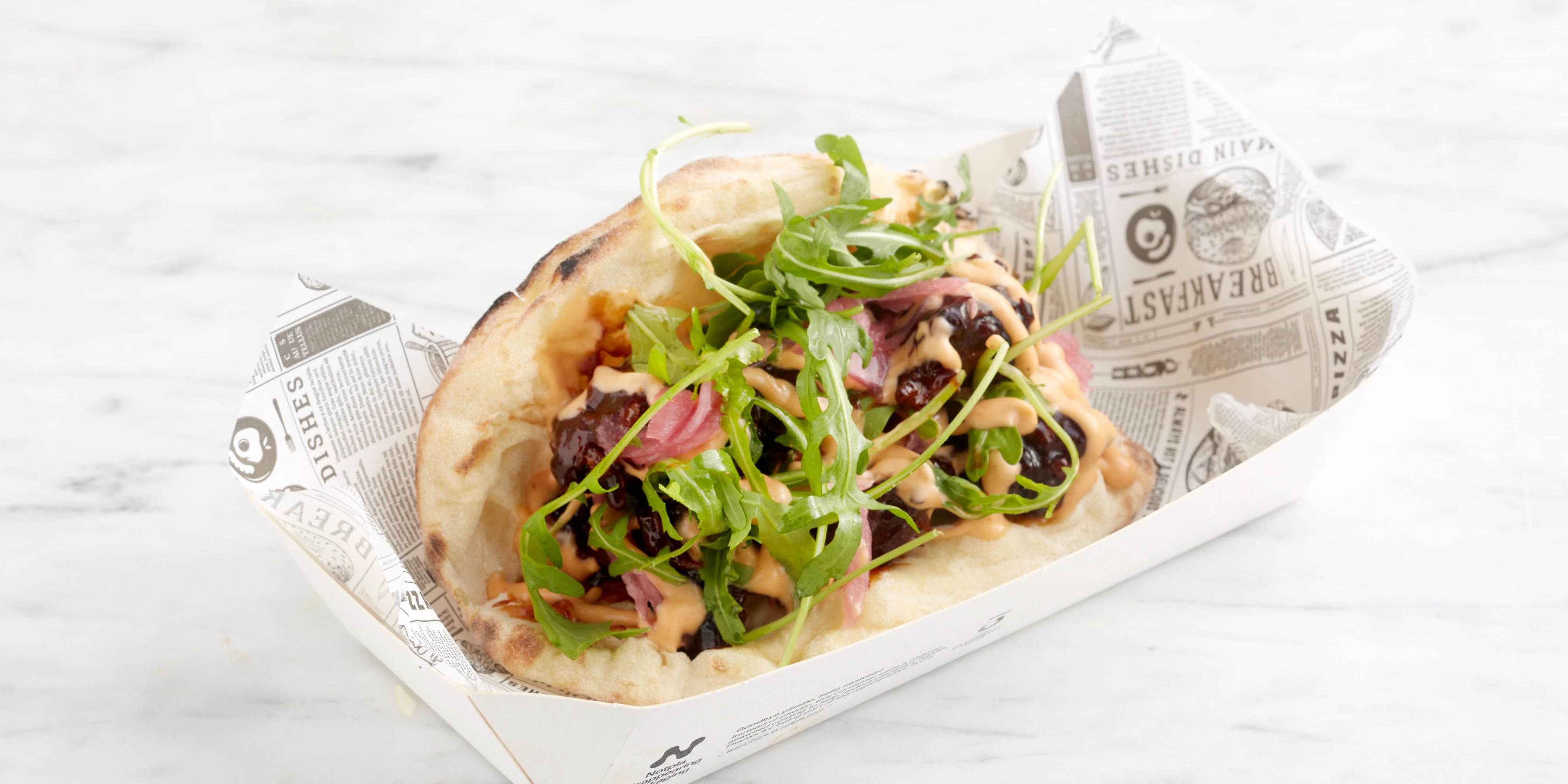 Enjoy bold street food inspired flavours from our casual Street Kitchen menu served 11AM to 10PM, last orders at 9:30pm, in the hotels Traders restaurant. Choose from folded pizzas, sourdough flatbreads, burgers, boneless wings and loaded fries or tater tots. All dishes are served street style in recyclable packaging. Perfect for relaxed dining alongside our all day menu.