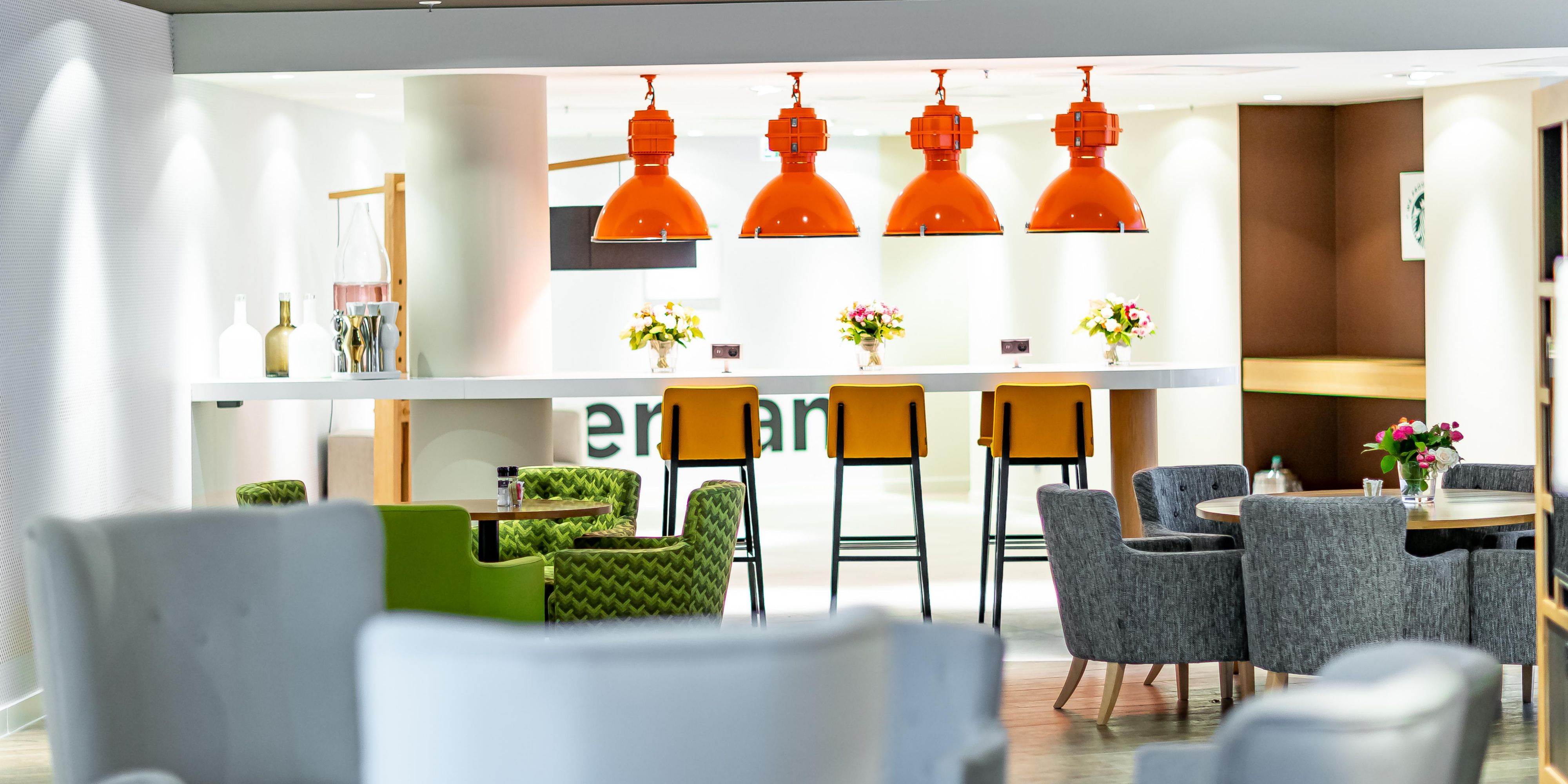The spacious and welcoming lounge bar is part of our Great Room in our Holiday Inn hotel and is the perfect place to relax and have a drink with friends and colleagues after a long day at work or a day full of sight seeing in the city. Besides drinks we also have sandwiches, noodles and salads available.