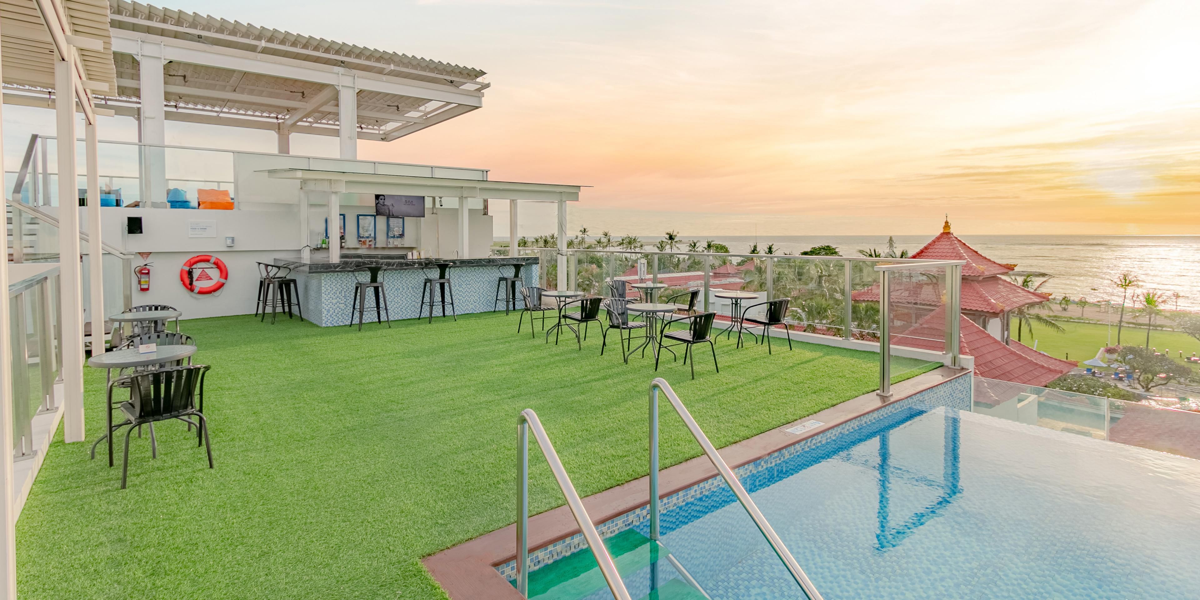 Escape the tropical heat at our refreshing rooftop pool, featuring panoramic views of the surrounding area. The perfect spot to cool down after a day of exploration or to simply unwind with a refreshing drink from our pool bar. Comfortable lounges and ambient lighting create an ideal setting for relaxation morning through evening.