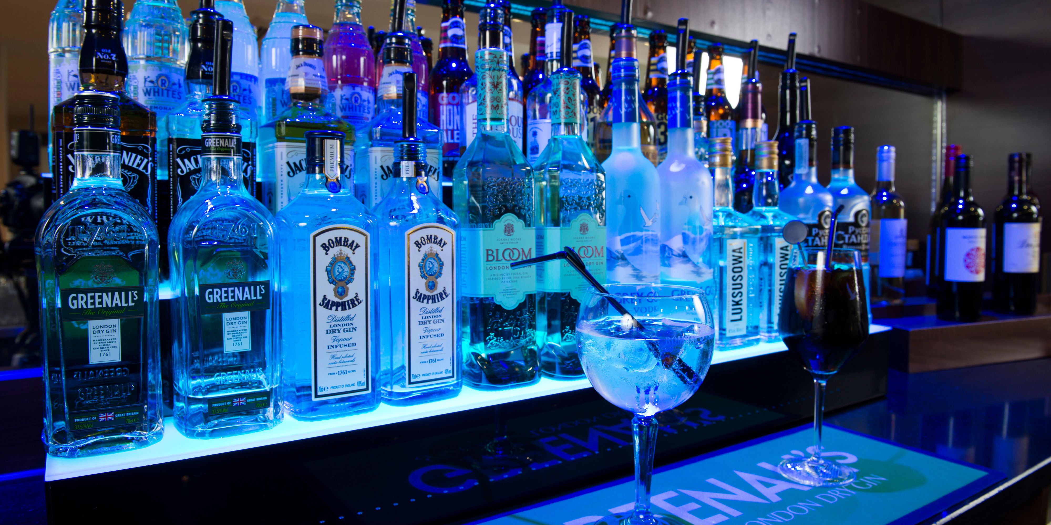 Our bar offers a wide range of wines, premium gins and tonics and draught beers. Pizzas and snacks are available round the clock if you're feeling peckish. If you're lucky enough to look under 25, you will be asked to prove that you're 18 or over if you buy alcohol.