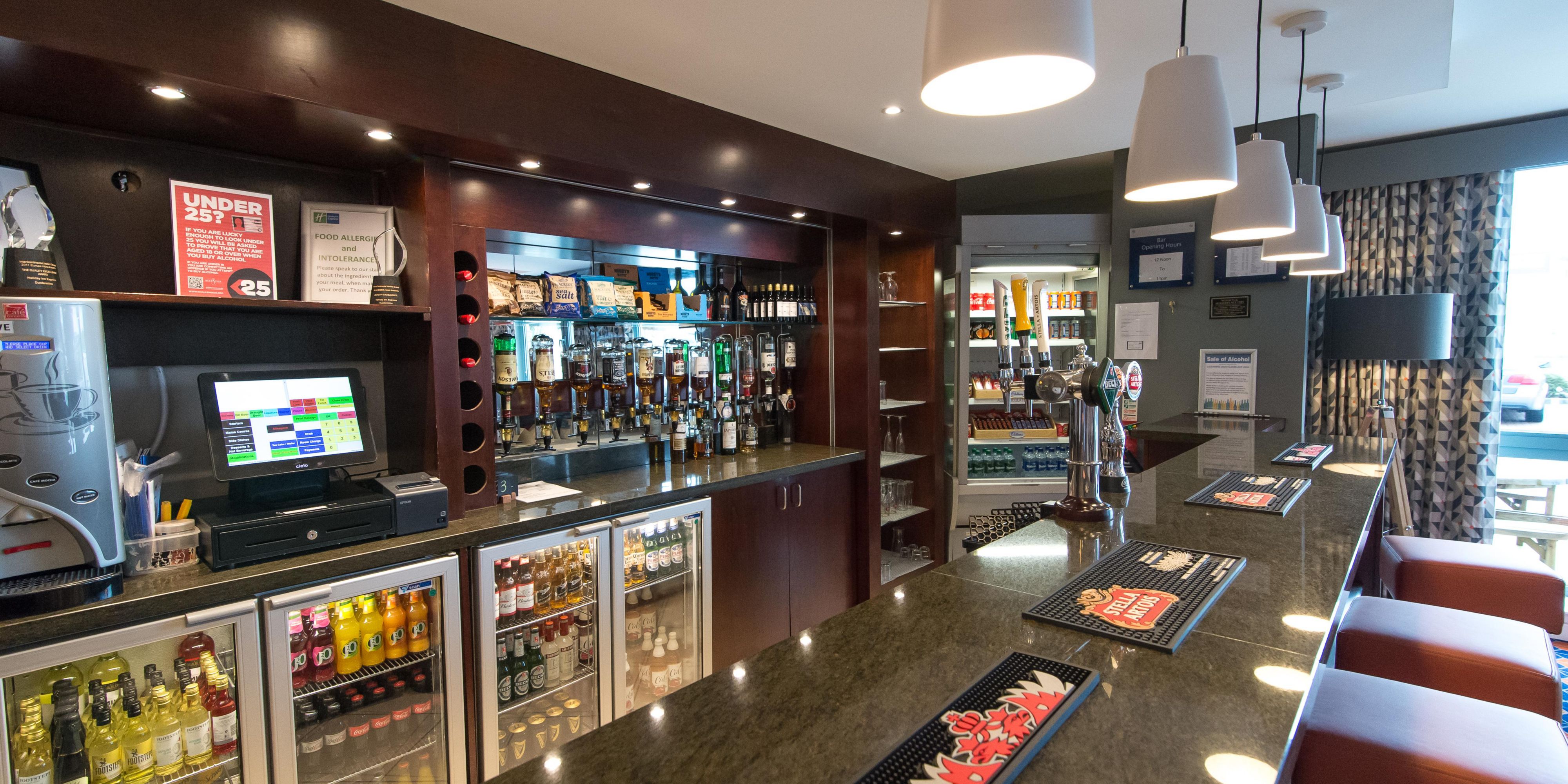 Contemporary styled bar area with large screen satellite TV showing the latest sports events and other programmes.