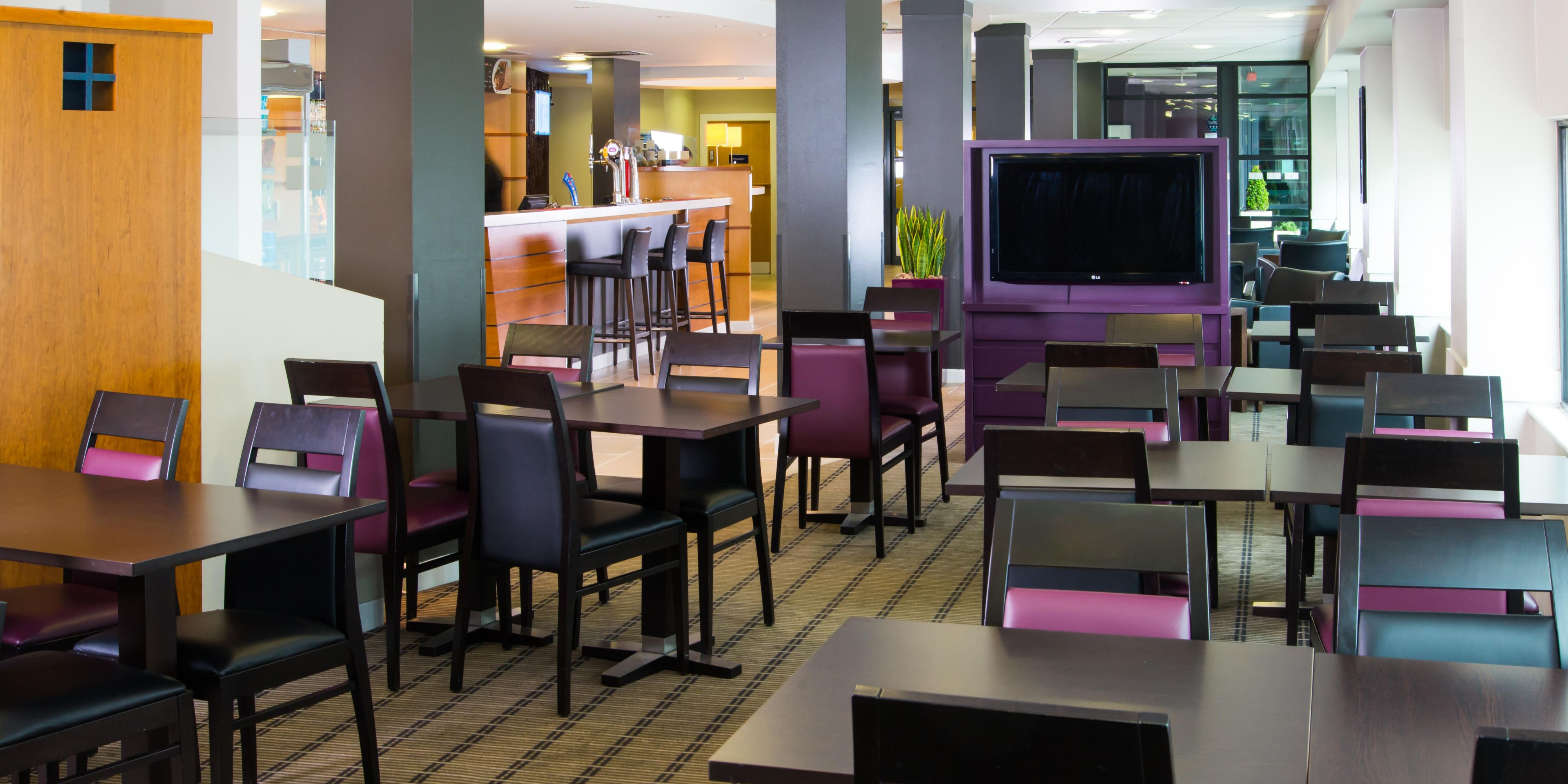 Start your day with a free buffet breakfast with hot and continental options. In the evening, enjoy light bites and pizzas or unwind with a drink from the bar.