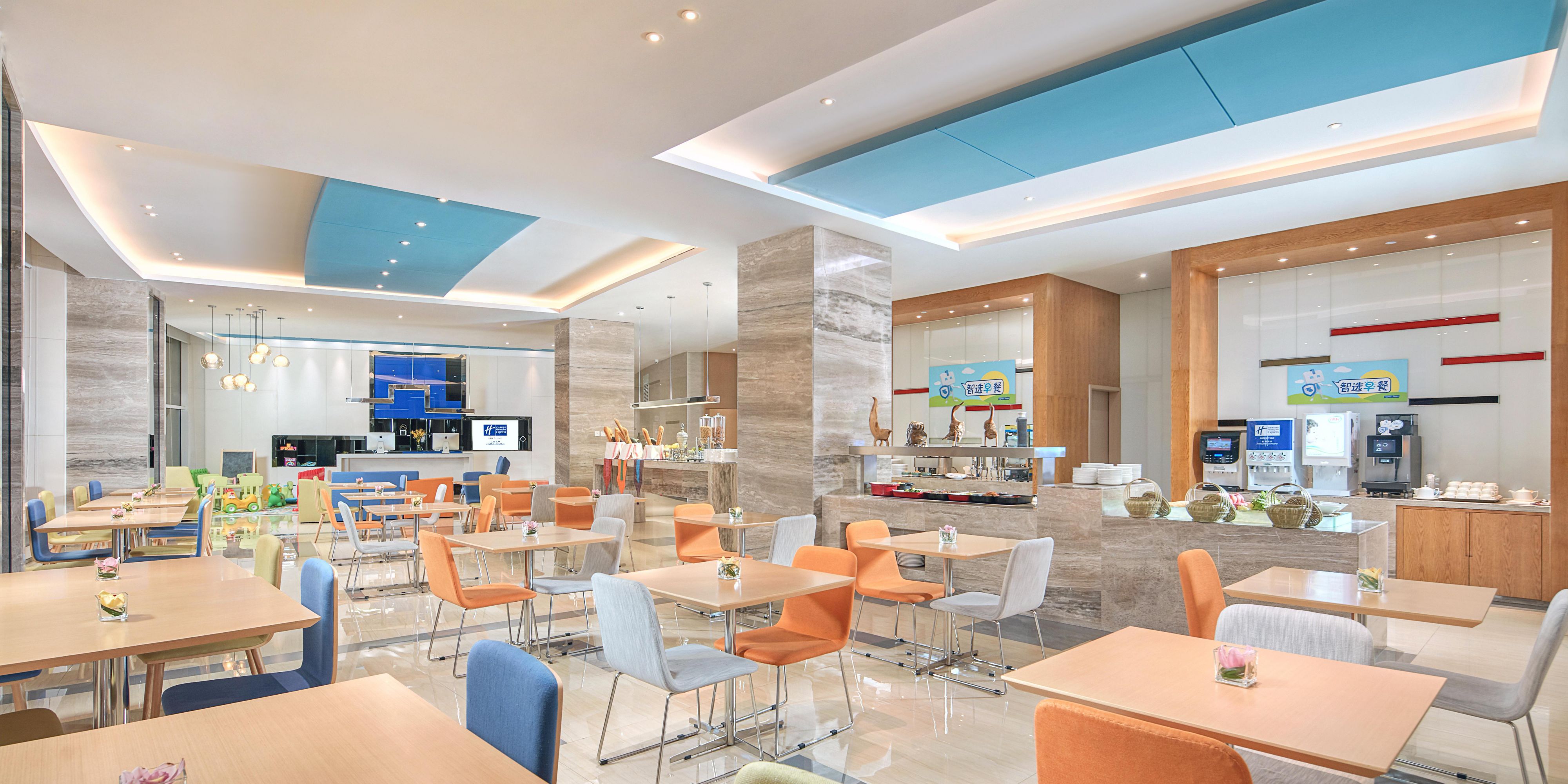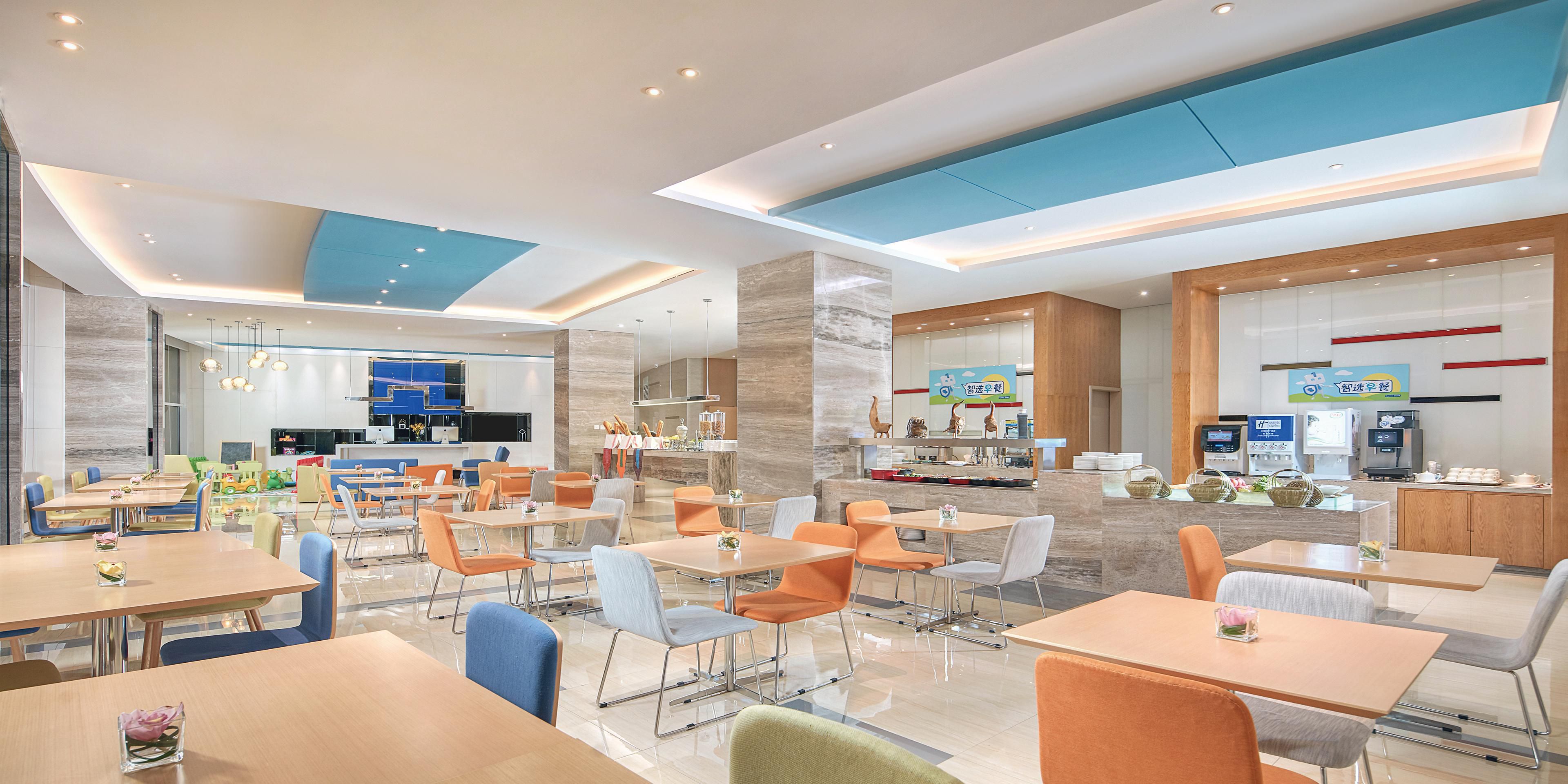 智空间拥有66个餐位,位于酒店2楼。酒店为所有住店客人免费提供中式且富有本地特色的营养早餐。早餐营业时间为星期一至星期五早上06:30至10:00,星期六及星期天早上06:30至10:30