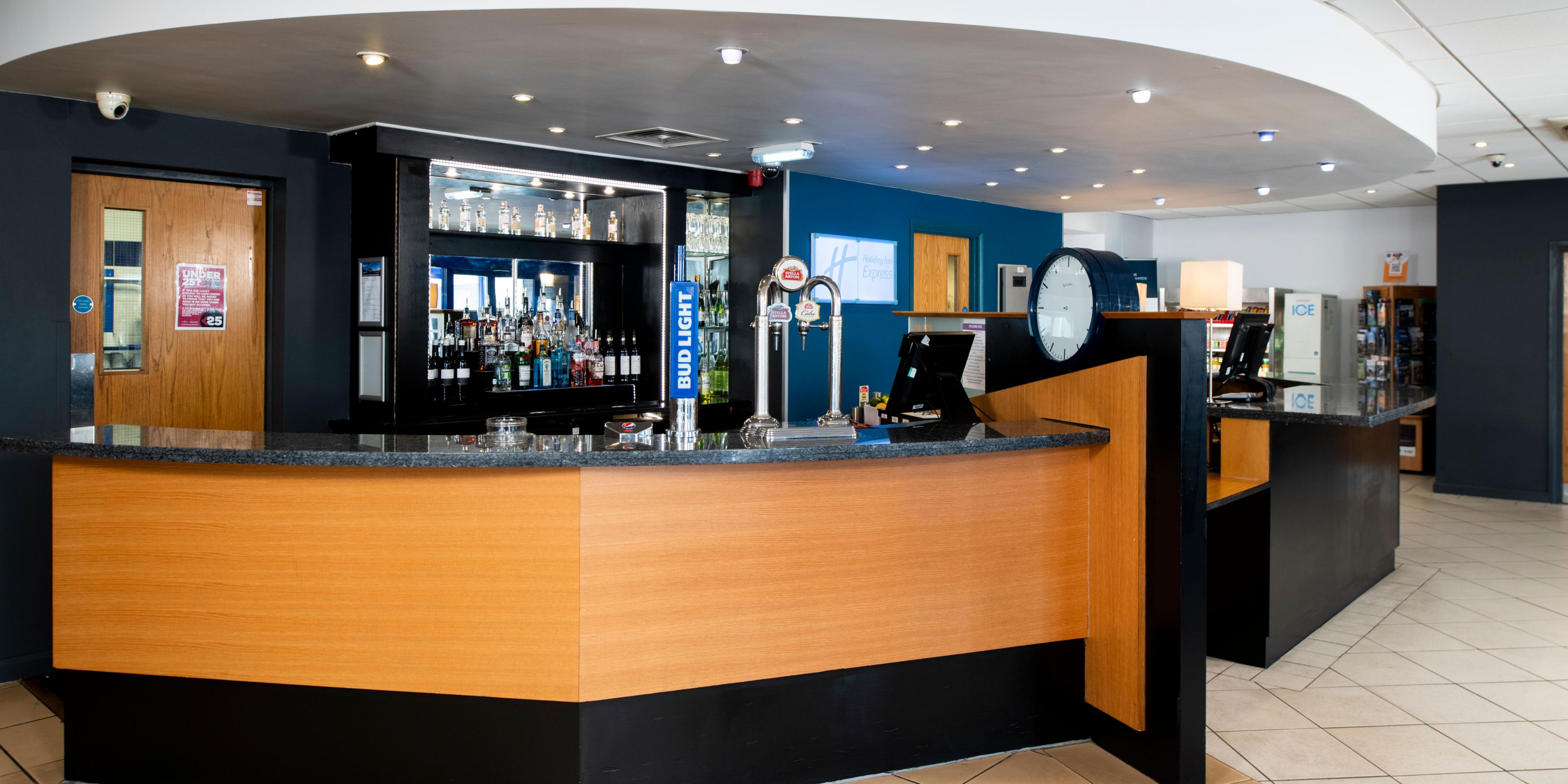 Pick your drink of choice from our wide range of wines, draught & craft beers and premium spirits. Pizzas and snacks are available round the clock if you're feeling hungry. If you're lucky enough to look under 25, you will be asked to prove that you're 18 or over if you buy alcohol.