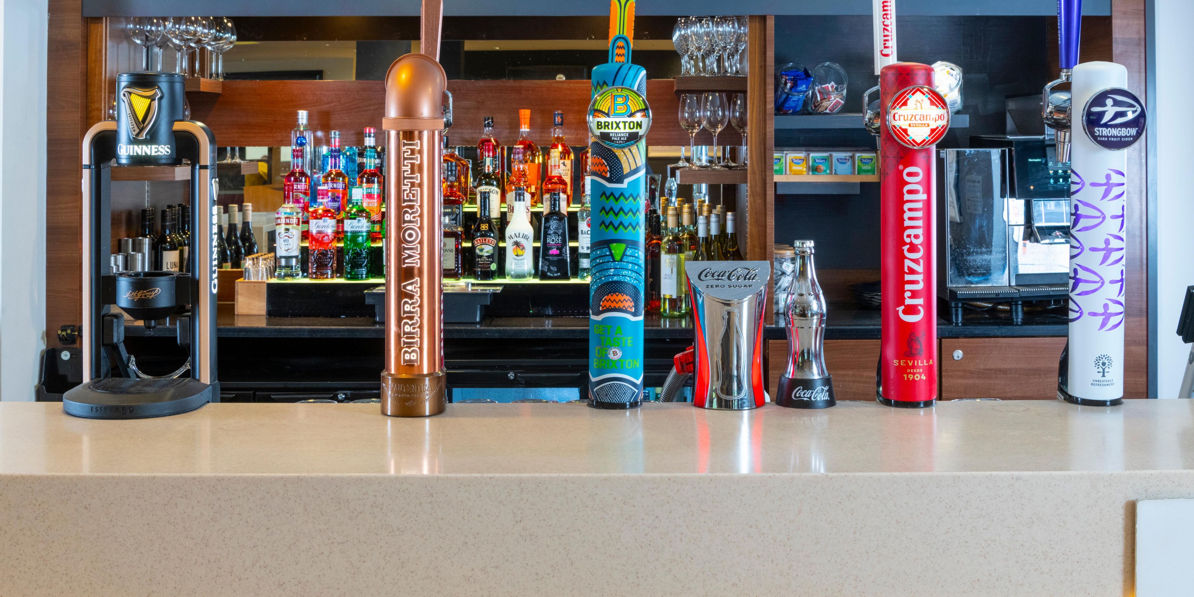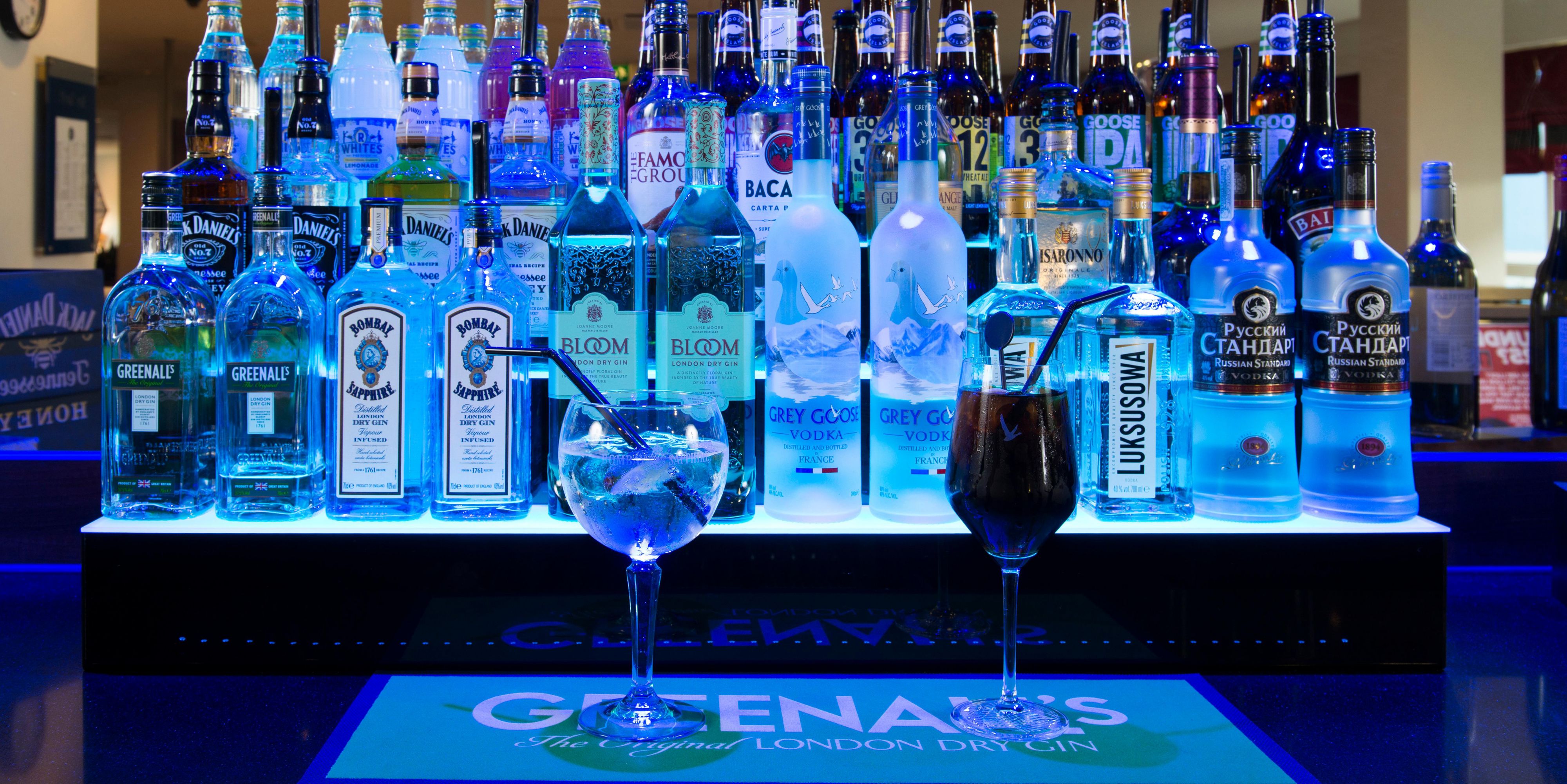 The bar offers a wide range of wines, draught & craft beers, premium gin and vodka. Pizzas and snacks are available round the clock if you're feeling peckish. If you're lucky enough to look under 25, you will be asked to prove that you're 18 or over if you buy alcohol.
