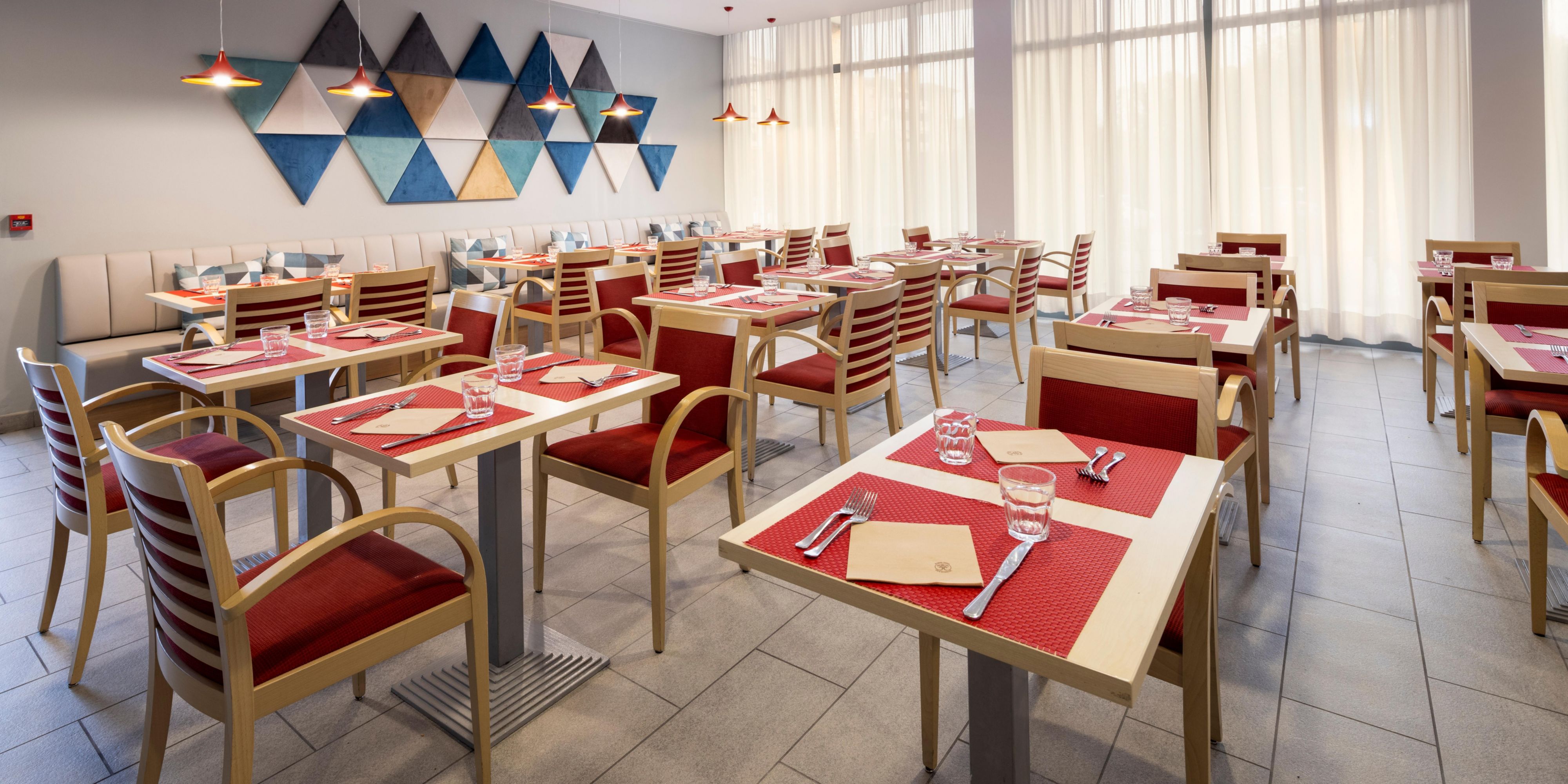 The restaurant offers international and typical parmesan cuisine. Special vegetarian dishes and gluten free