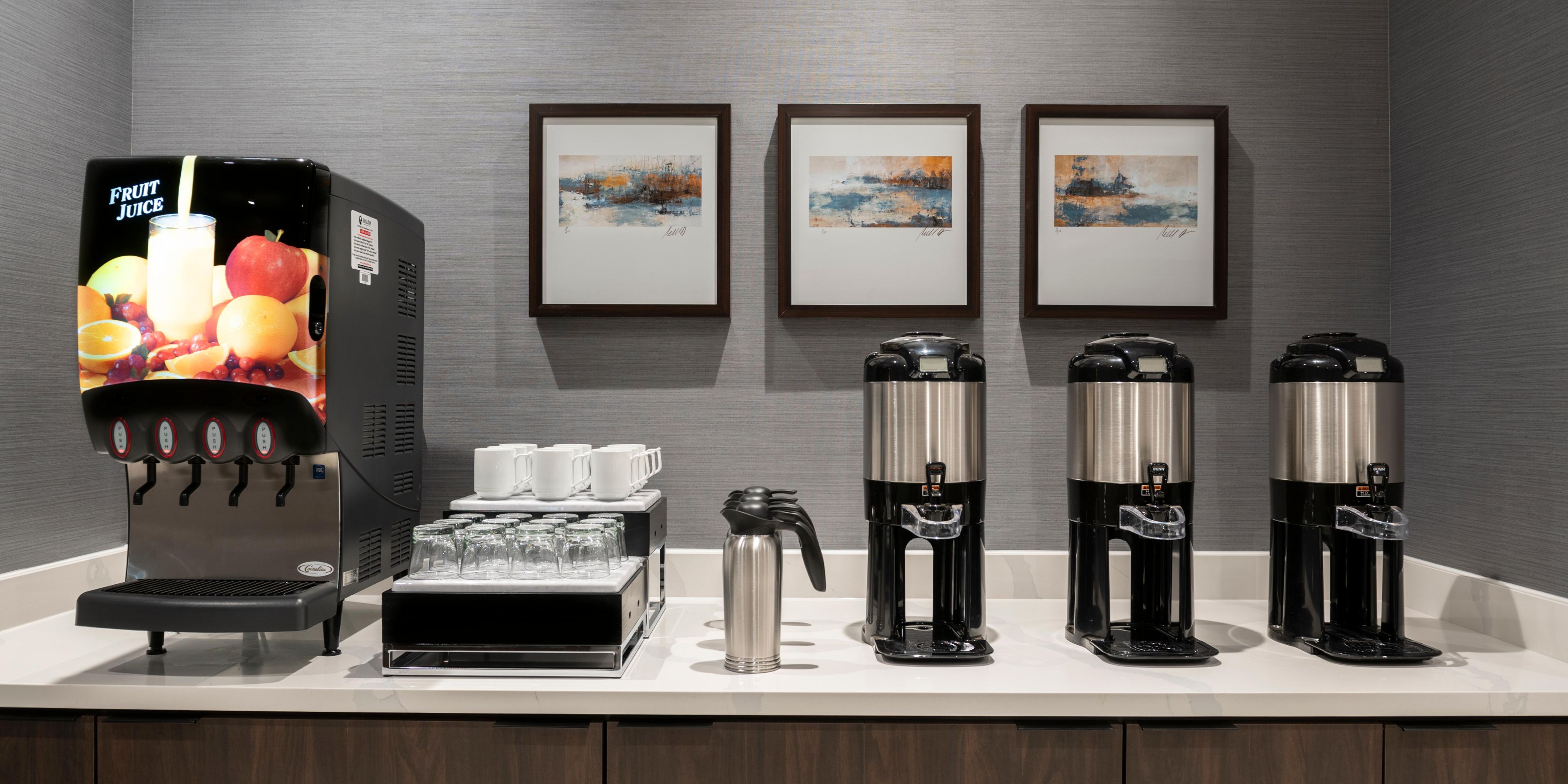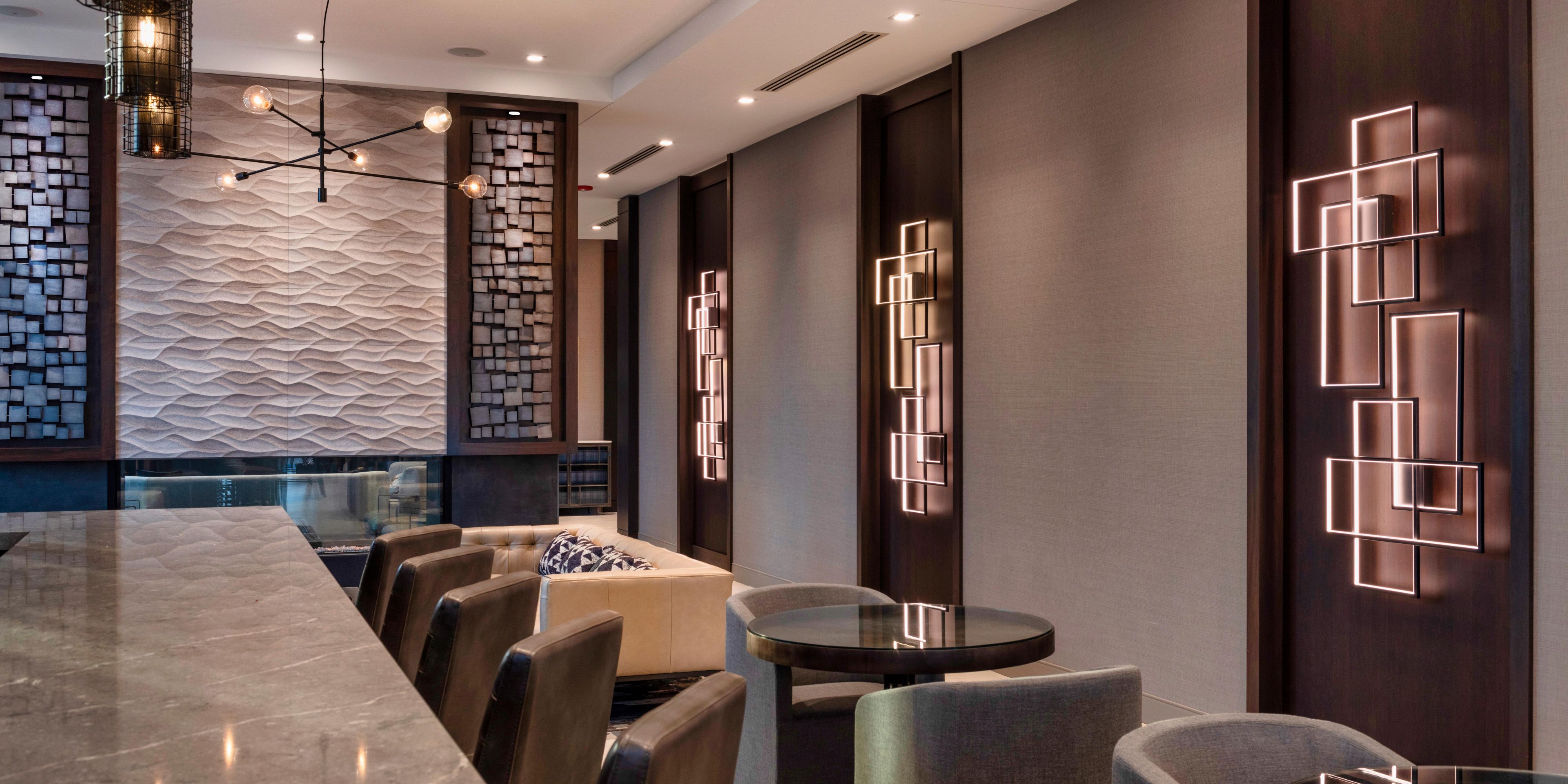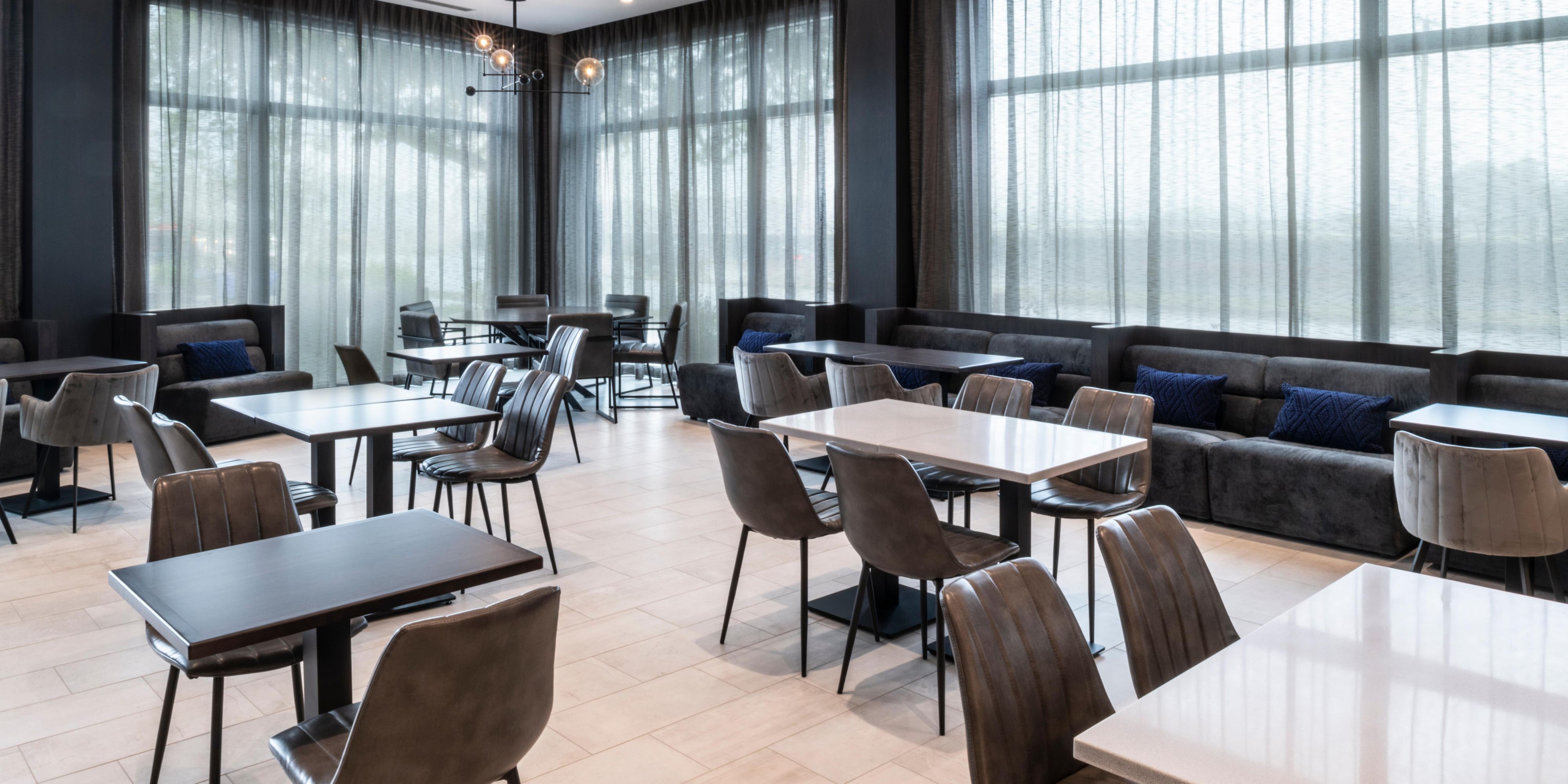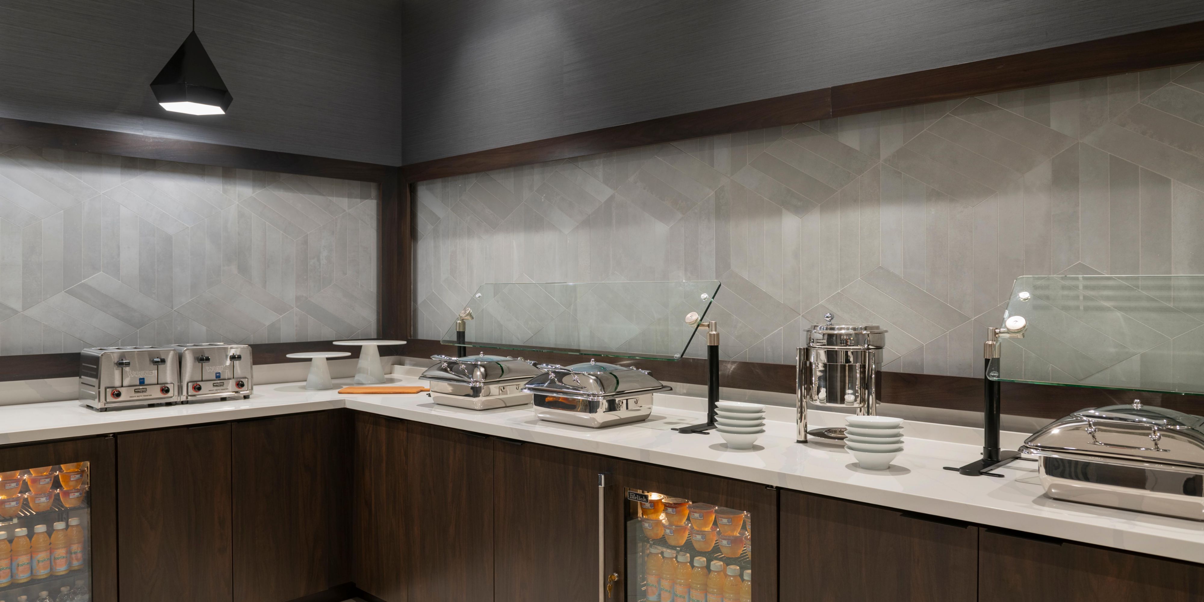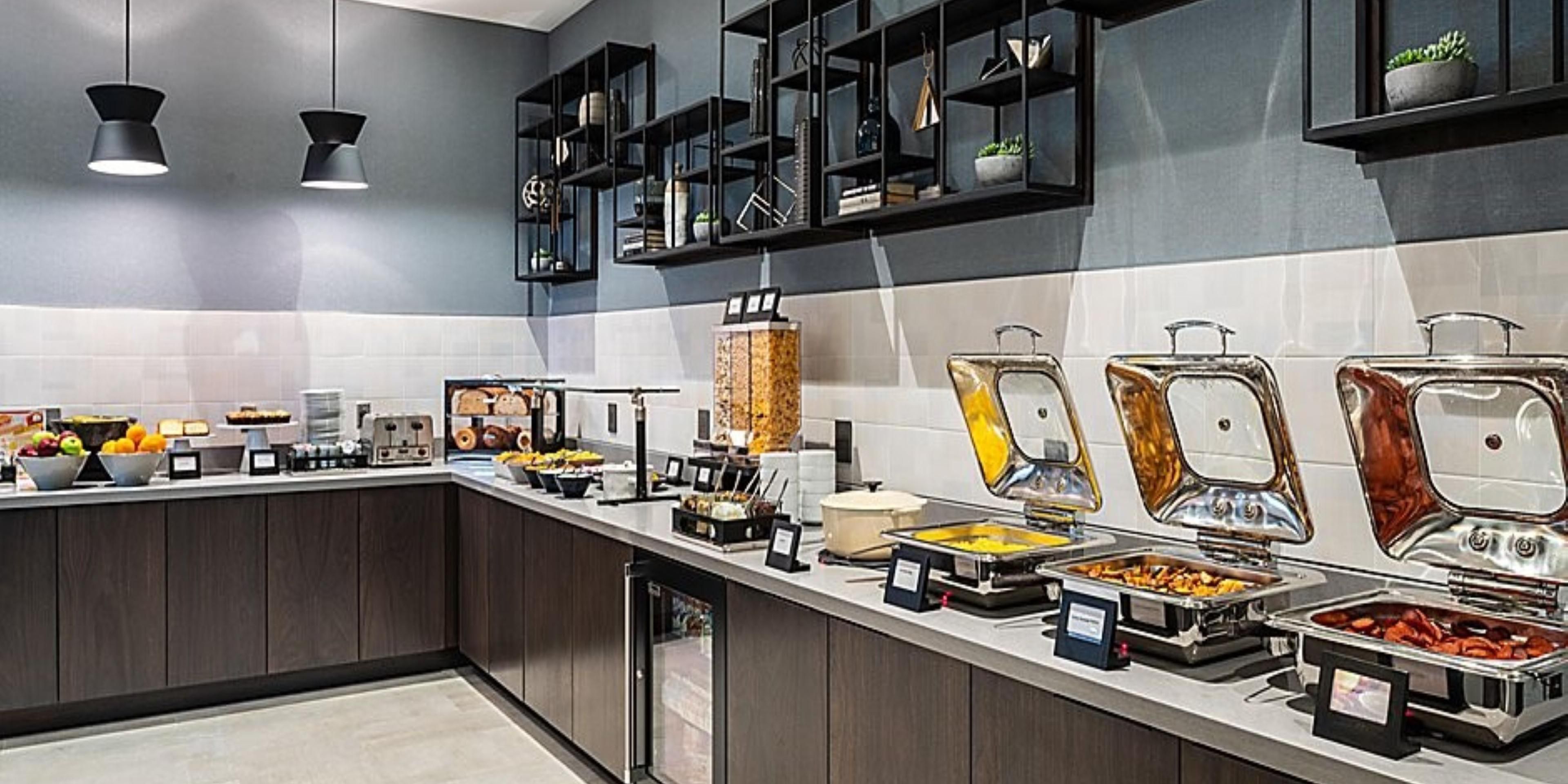 Start your day at our Holiday Inn Express hotel with hotel breakfast buffet featuring fresh fruit, eggs, yogurt, and various breads. At the end of each day, unwind at the hotel's lobby bar and lounge with a local brew or hand crafted cocktail.