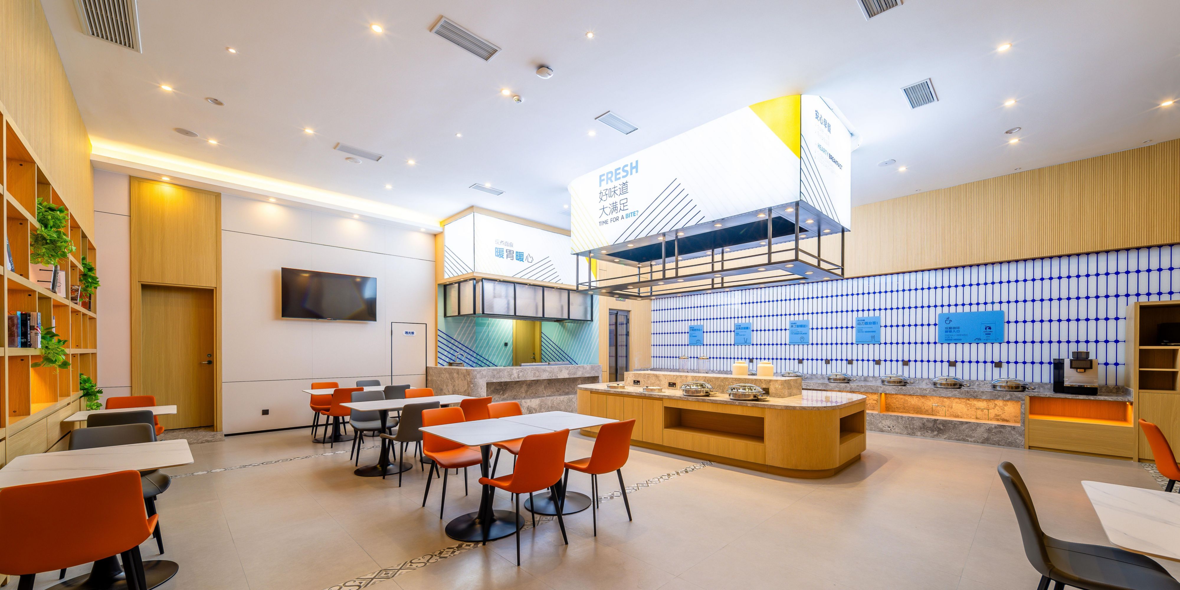 位于酒店一楼,可容纳约100人同时用餐,或200人份批次用餐,可提供中西式自助餐或团队餐。