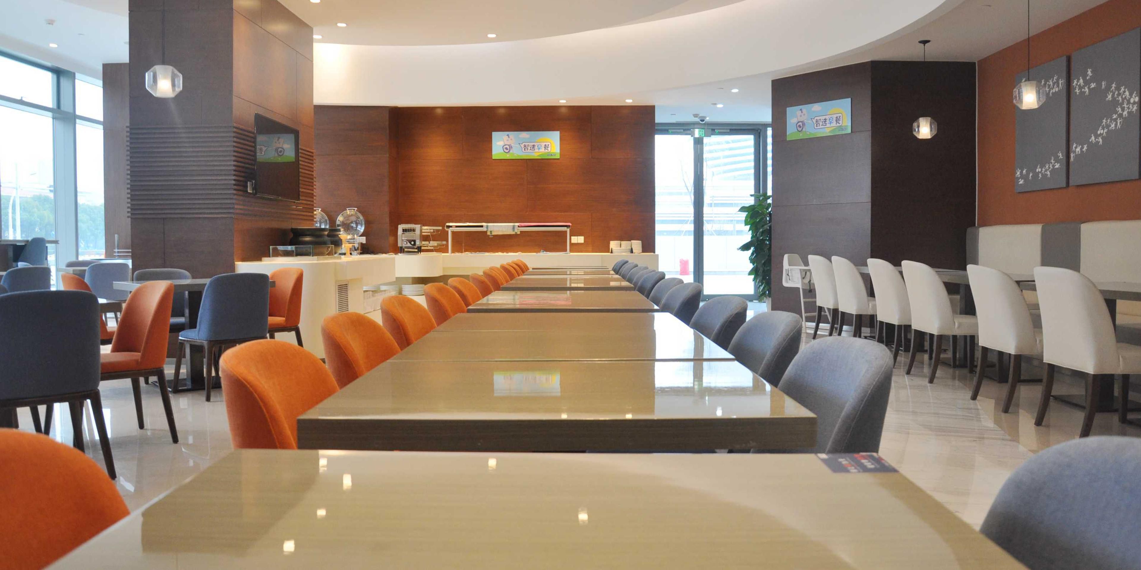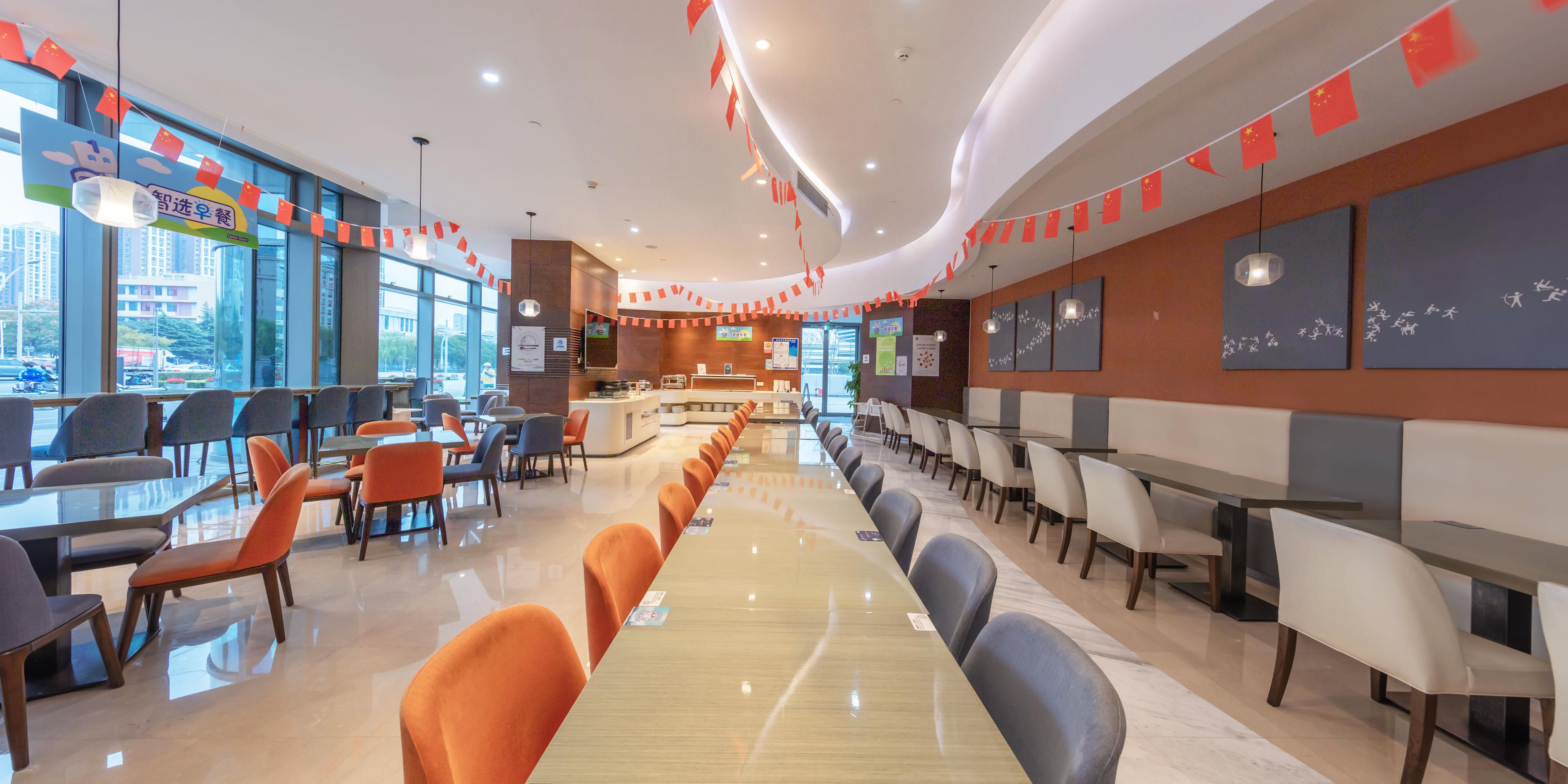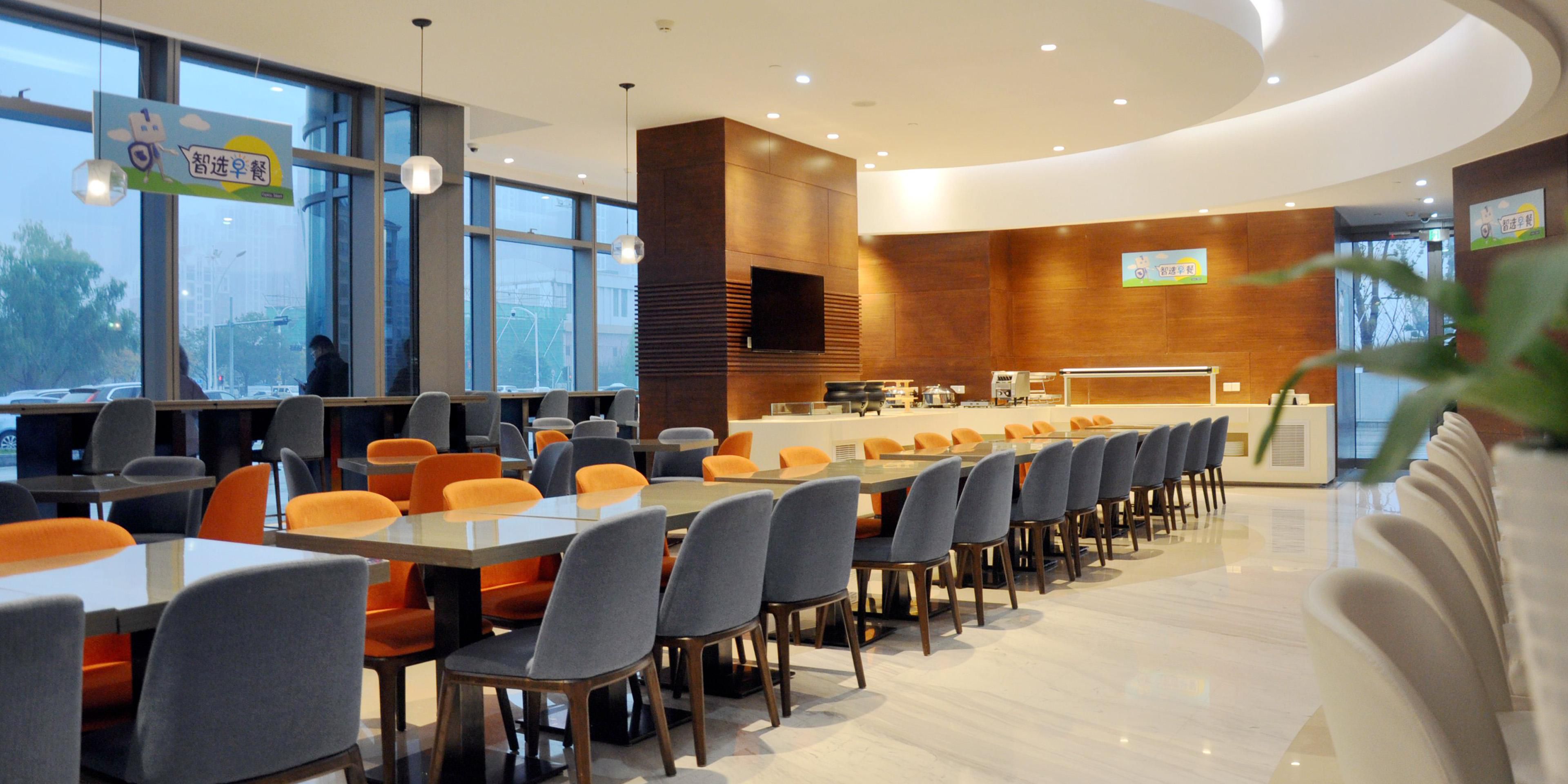 位于酒店一楼,可容纳约100人同时用餐,或200人分批次用餐,可提供中西式自助餐或团队餐。