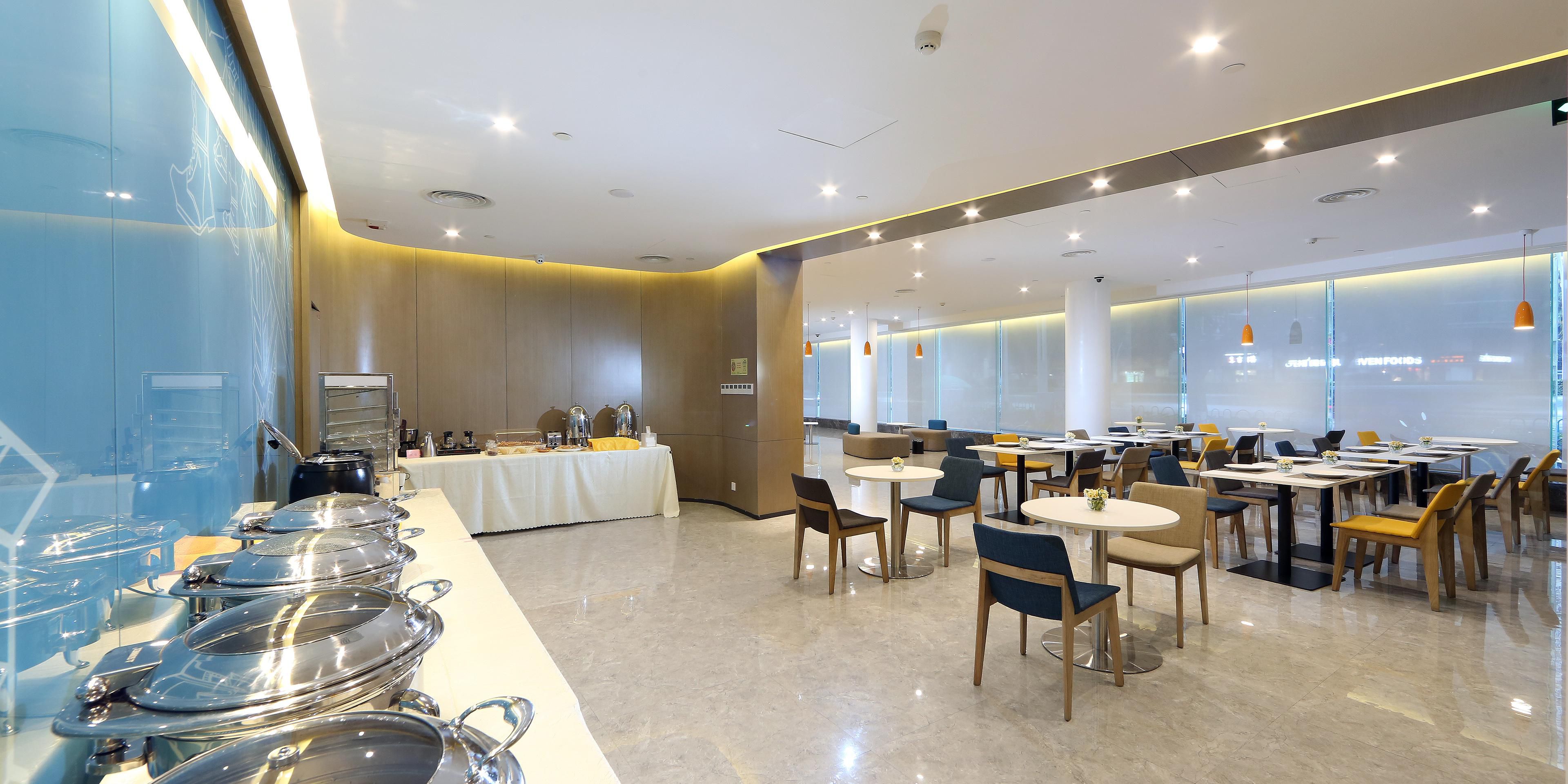 智空间餐厅为每位住店客人提供营养美味的中西式自助早餐,早餐时间为7:00-10:00