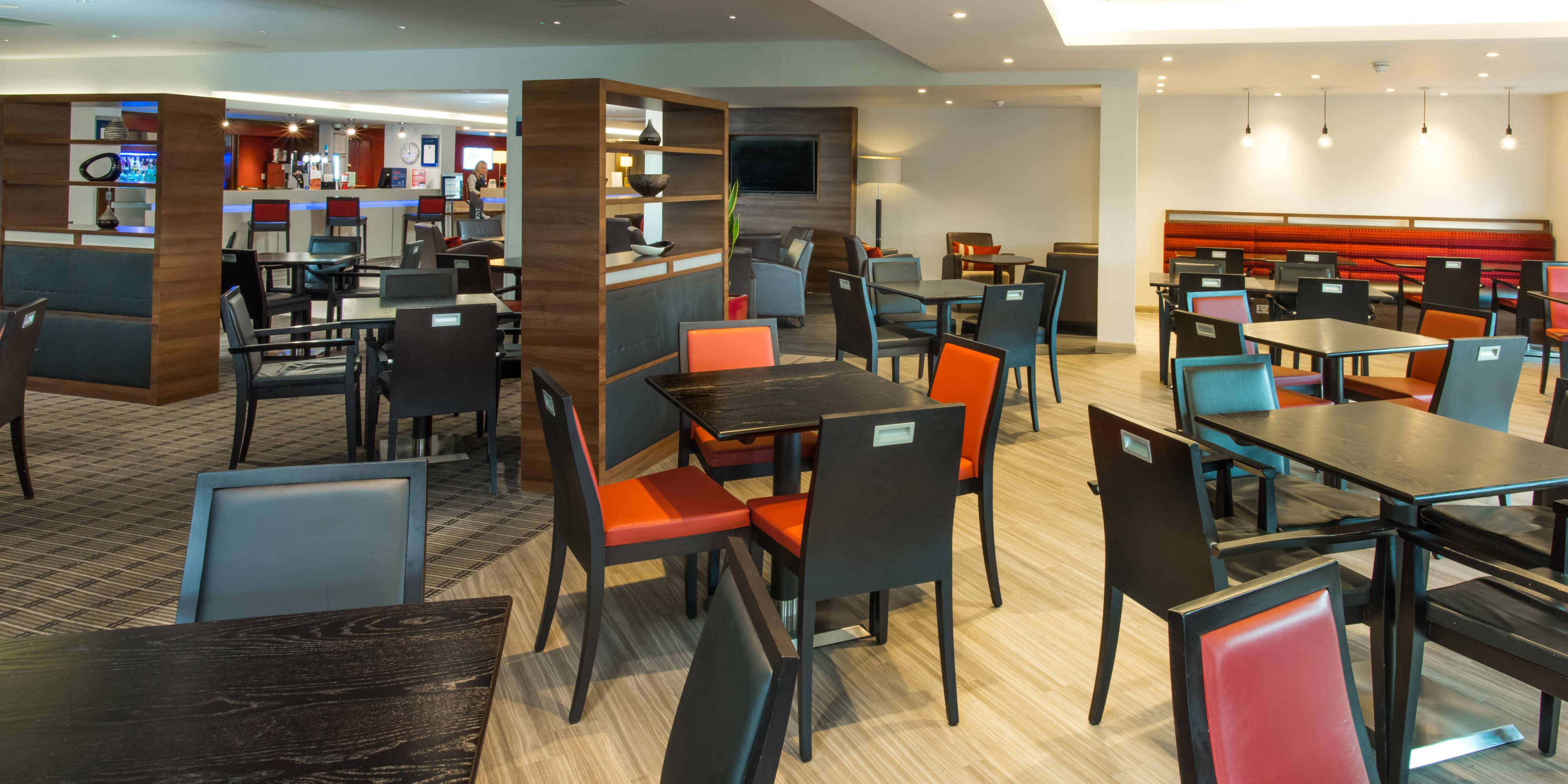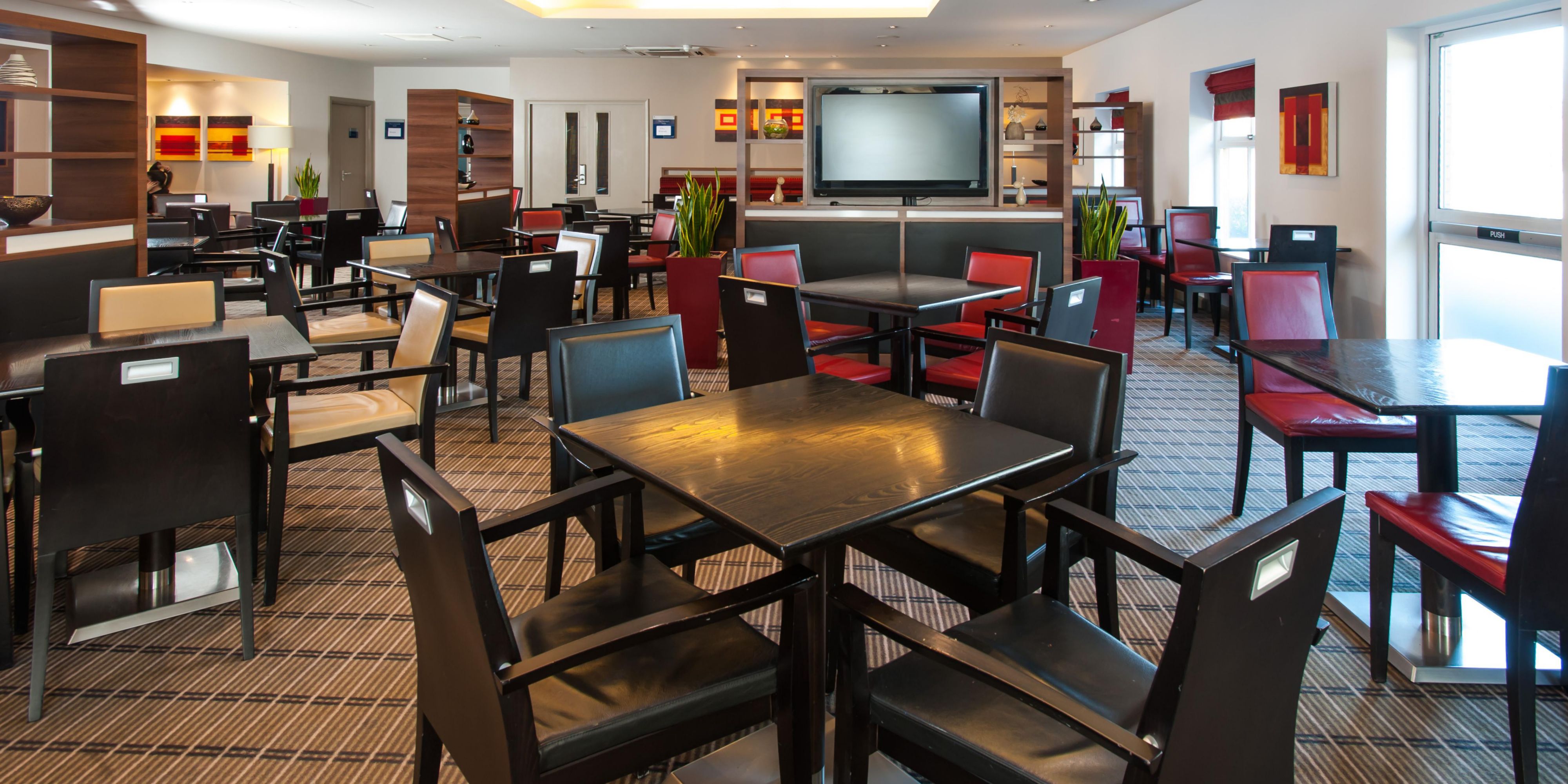 Kickstart your morning with hot and continental options at the free buffet breakfast. Dinner time? Order burgers and pizzas or grab a drink from the bar.