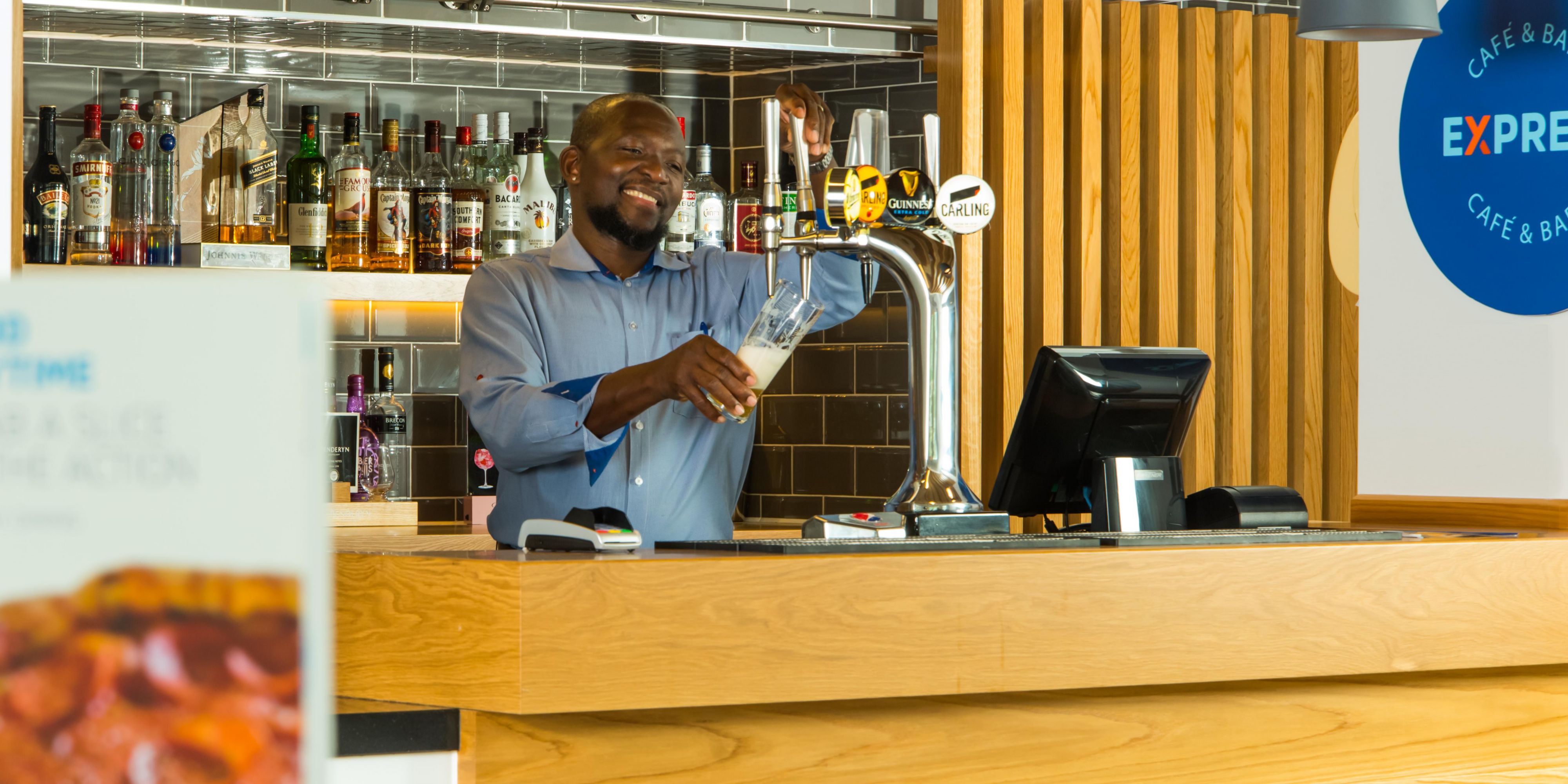 Serves draught beer and lager as well as a wide range of wines, spirits and liqueurs. Our All Day Dining Menu has a selection of meals and snacks which can be ordered from the bar.