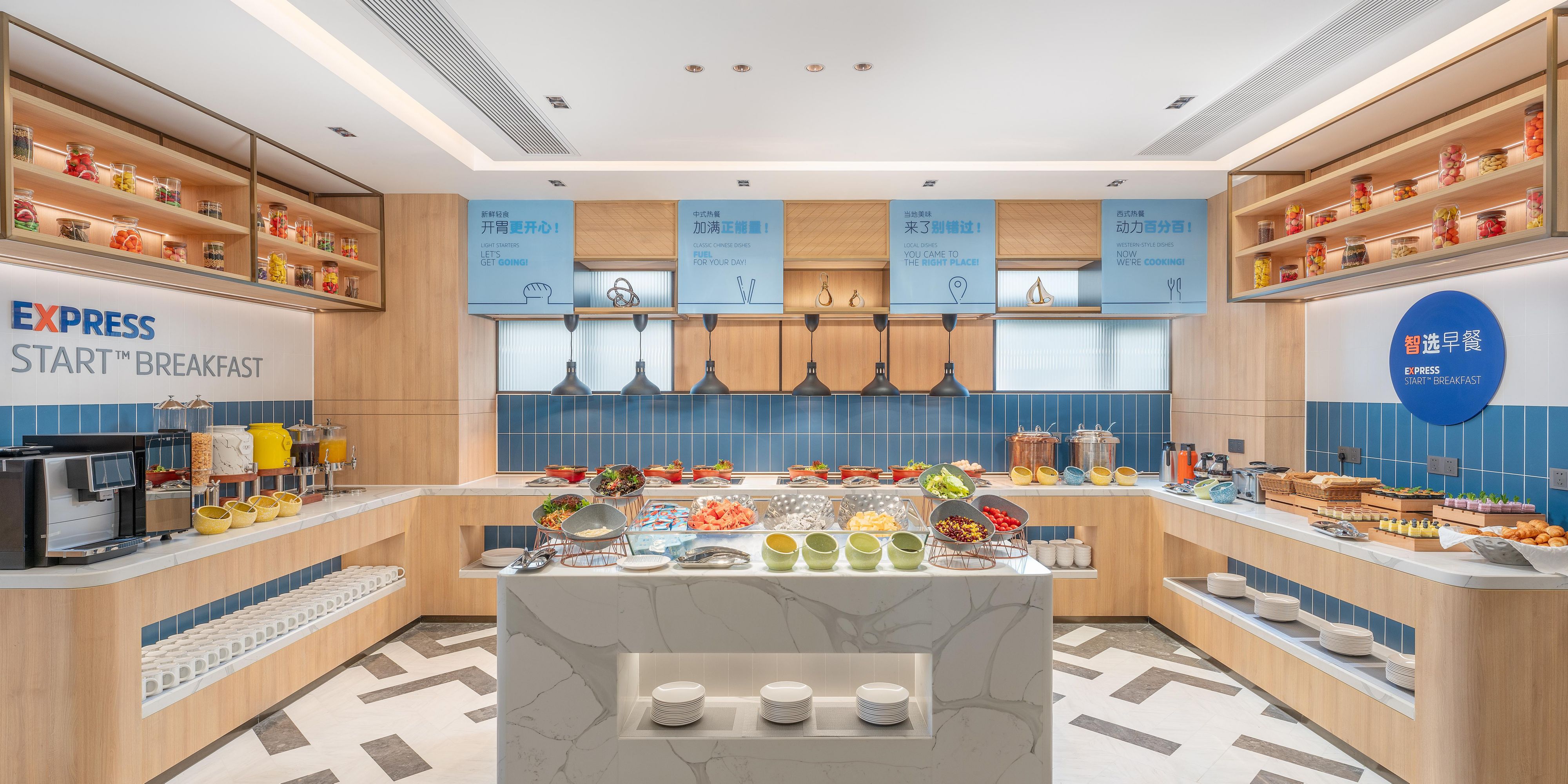 Enjoy our complimentary daily breakfast buffet featuring Chinese and Western dishes. Breakfast charges: above 1.4meters child and adult: 58 RMB per person; child between 1.2 to 1.4meters: 29RMB per person; child below 1.2 meters: Free.