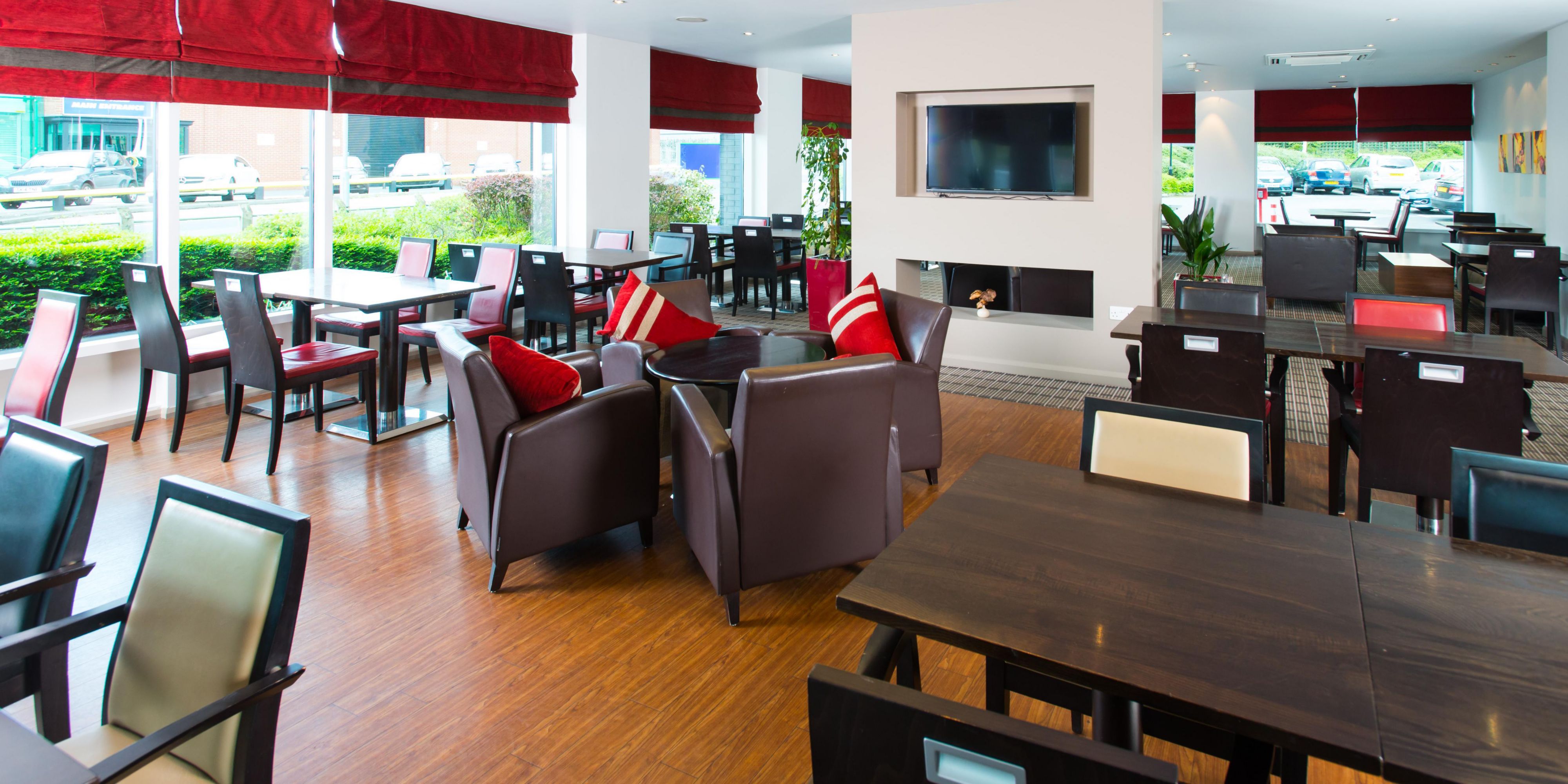 Kickstart your morning with hot and continental options at the free buffet breakfast. Dinner time? Order light bites and pizzas or grab a drink from the bar.
