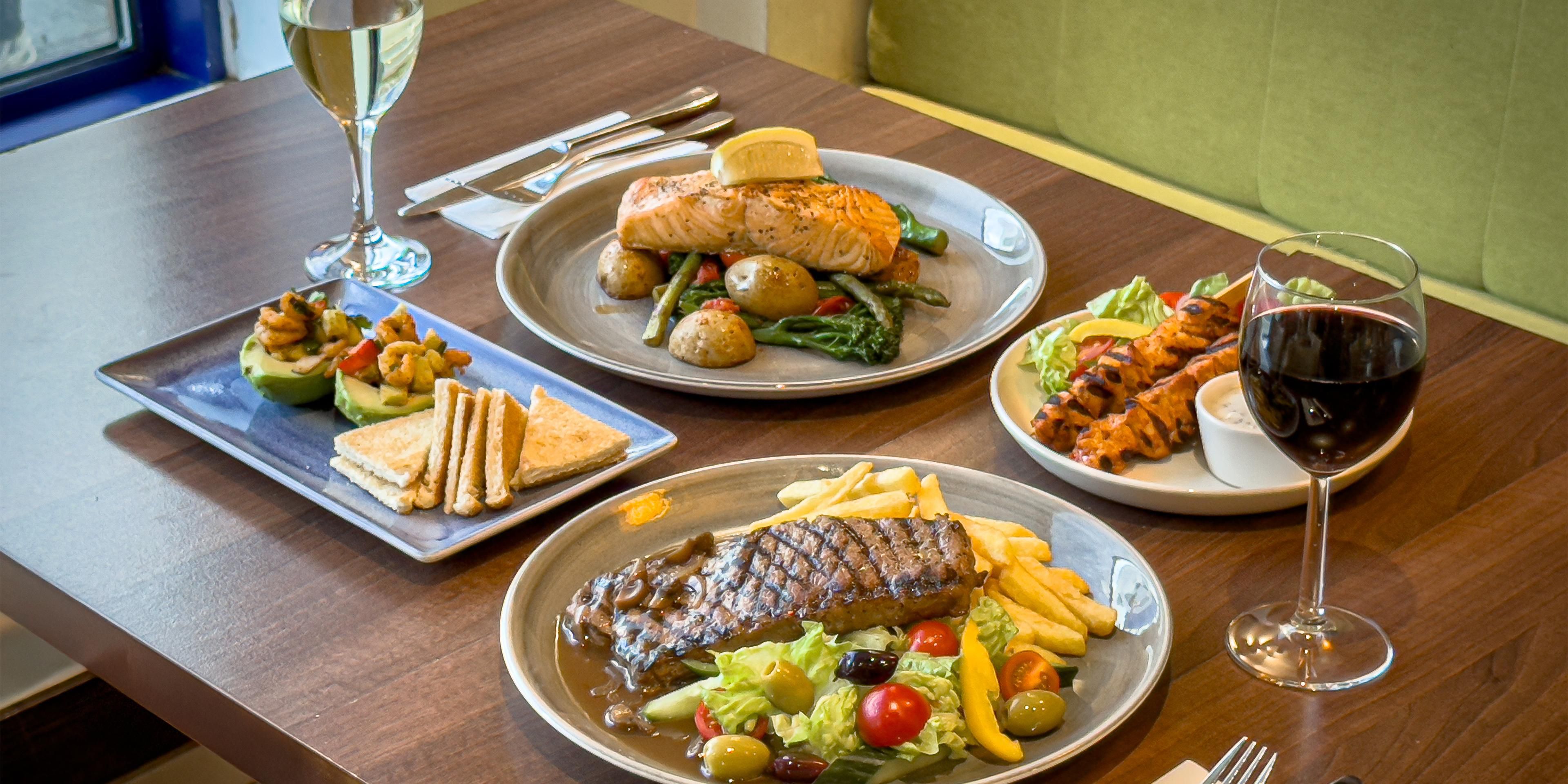 Dine with us in the Great Room from Monday to Sunday from 1200 to 2200 and sample our selection of salads, soups, sandwiches, steak, burger, pizza, pastas and fish options or try our chefs special.