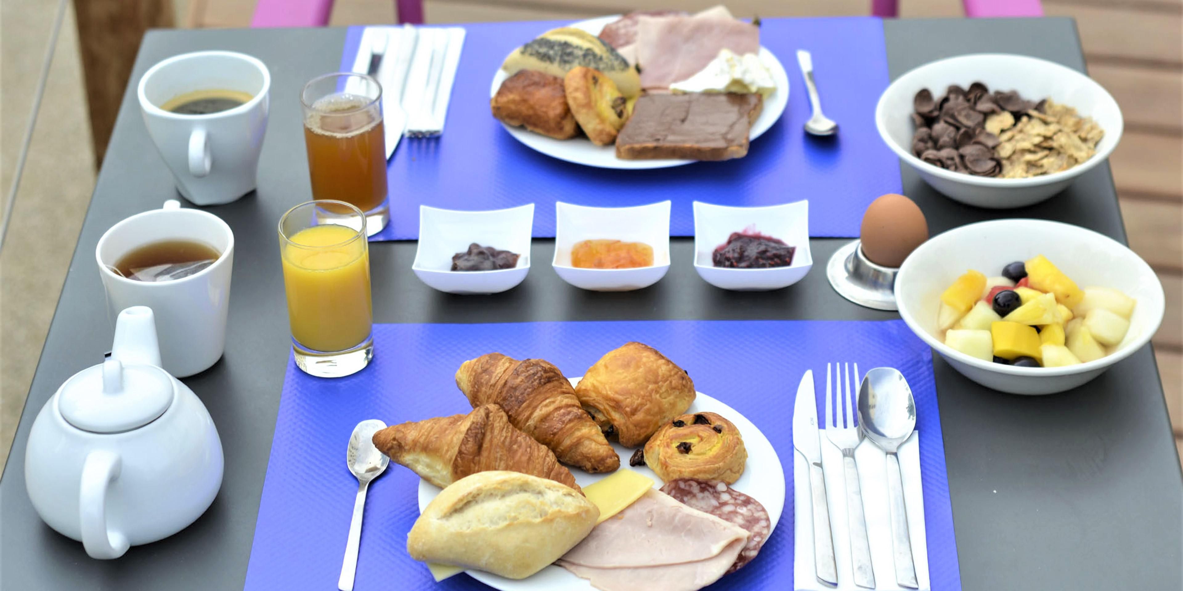 Come and enjoy the complimentary breakfast included with all our rooms. Every morning, discover a selection of regional products from Occitanie as well as a full hot and cold buffet. You can enjoy scrambled eggs, sausages, French pastries, pancakes, fruit juices, and many other delicacies to start your day off right.