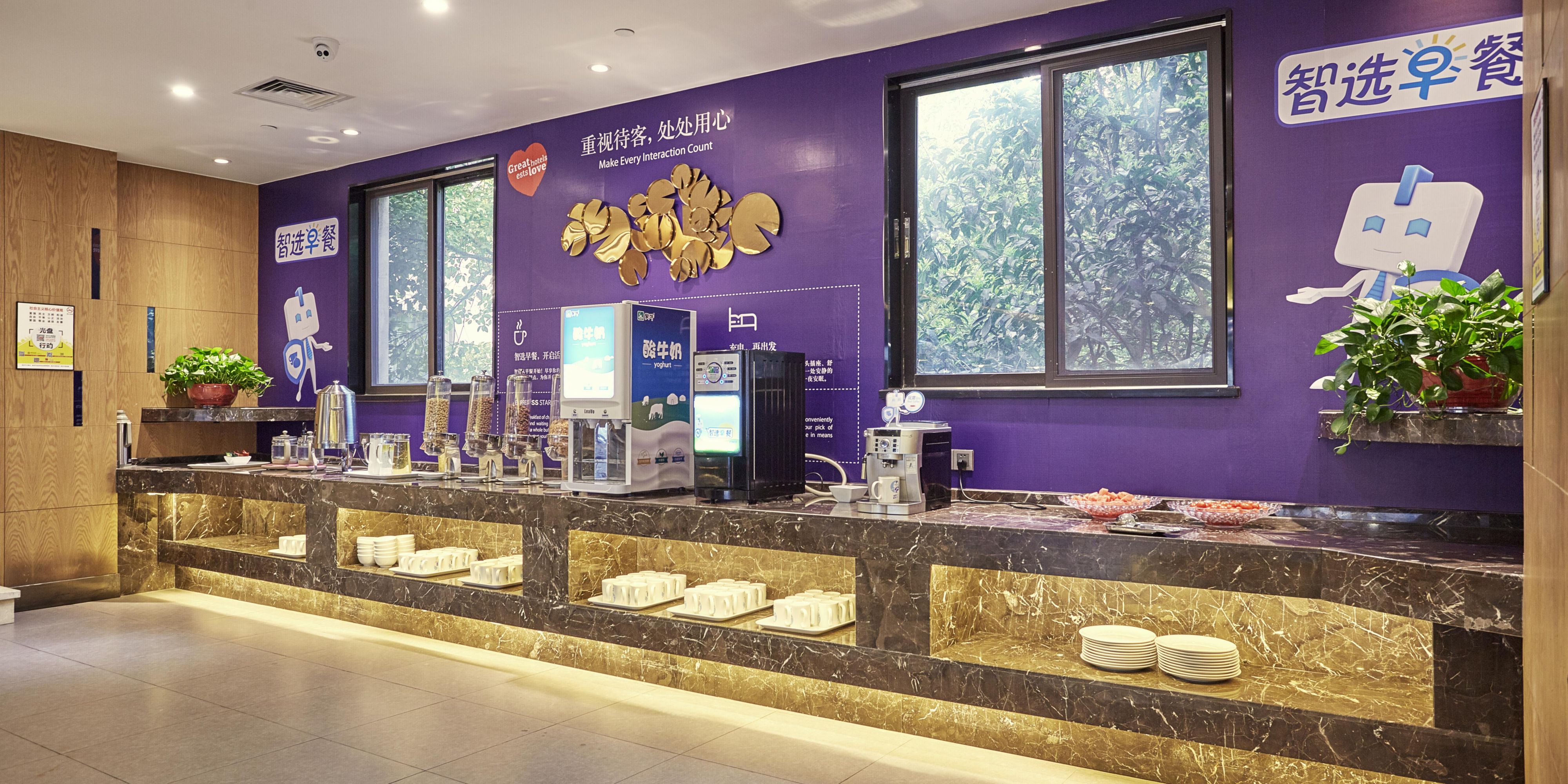 Located on the second floor, the hotel restaurant provides guests with a variety of delicious breakfast and Chinese and Western dishes.