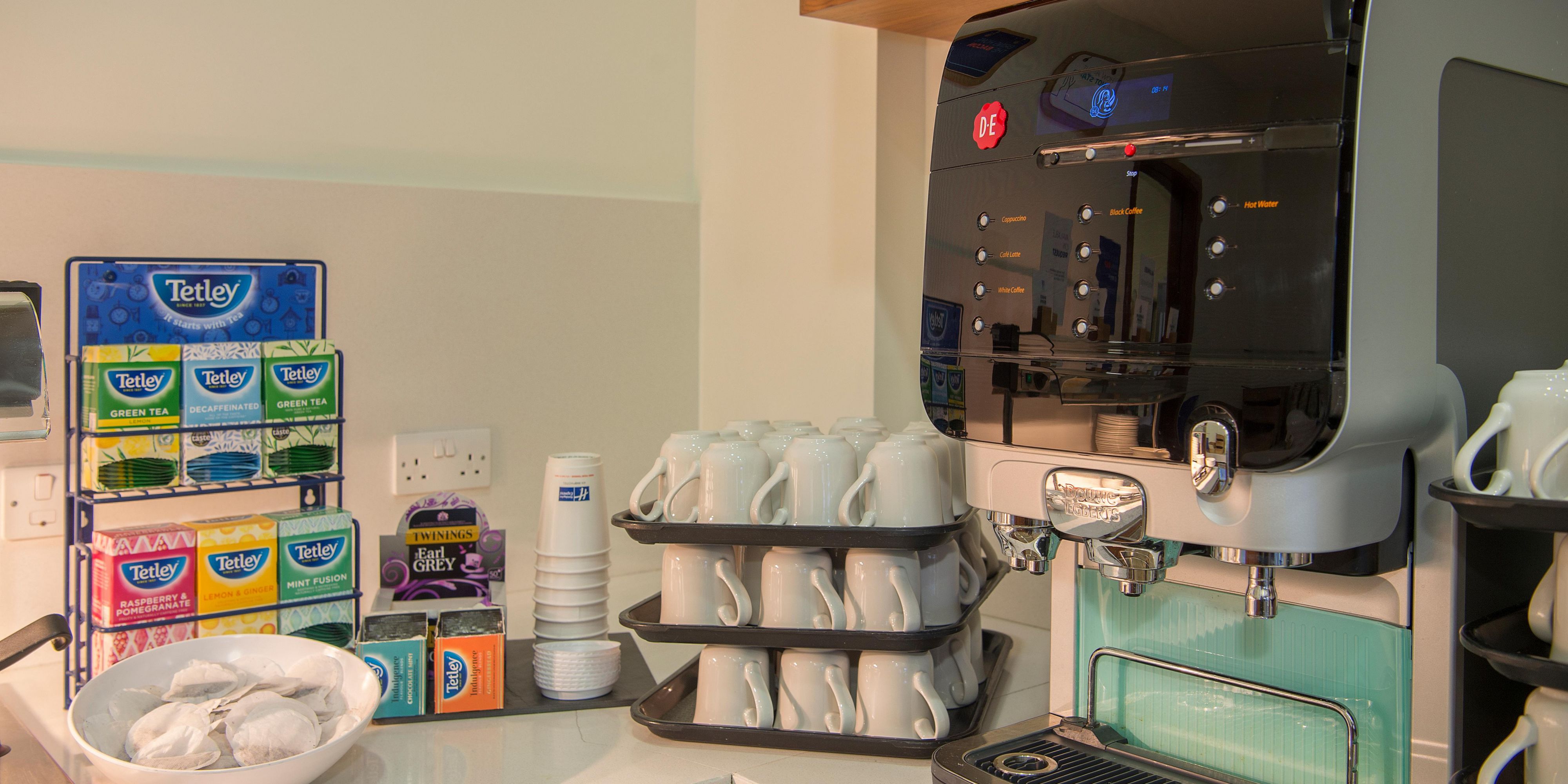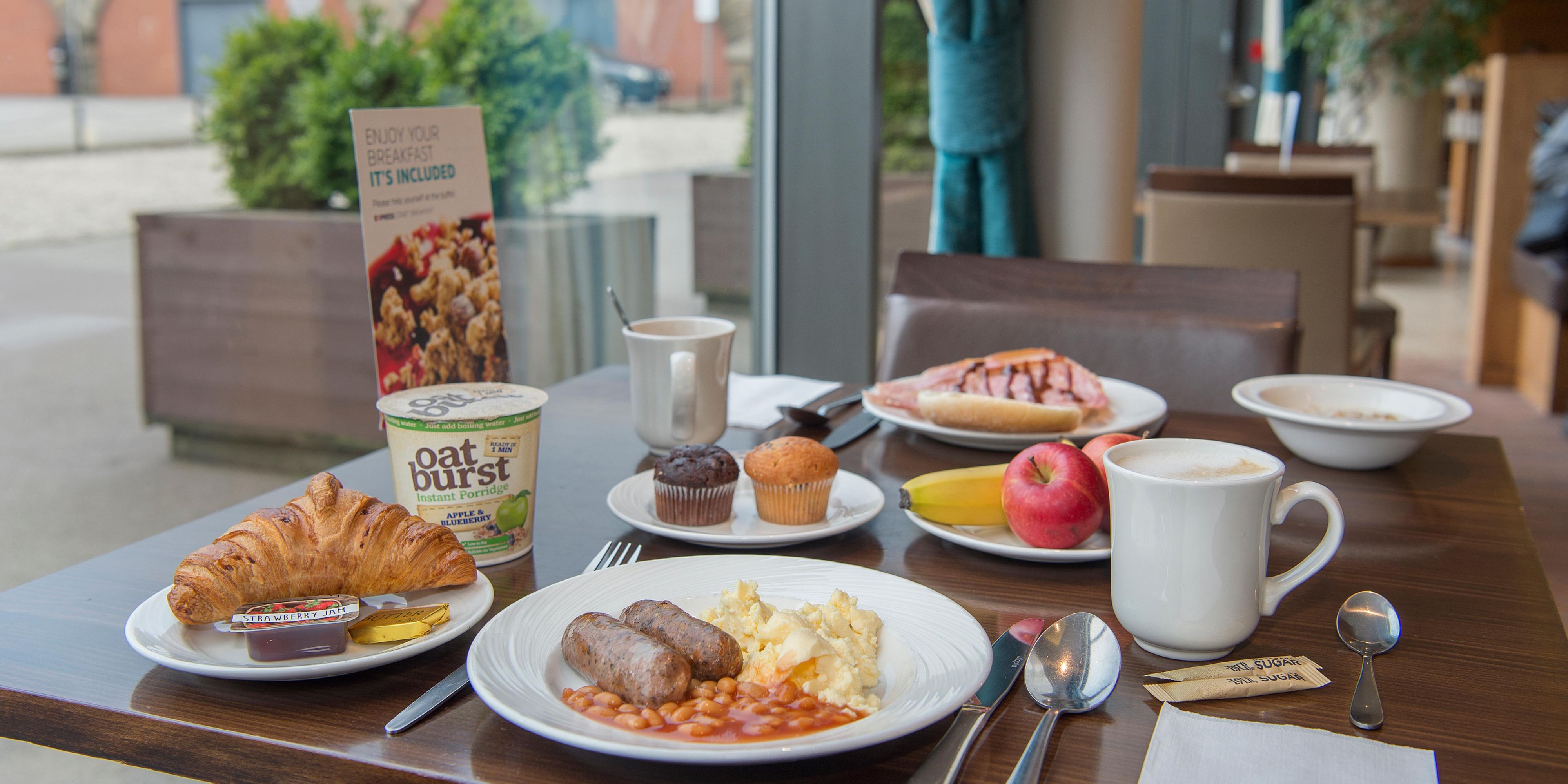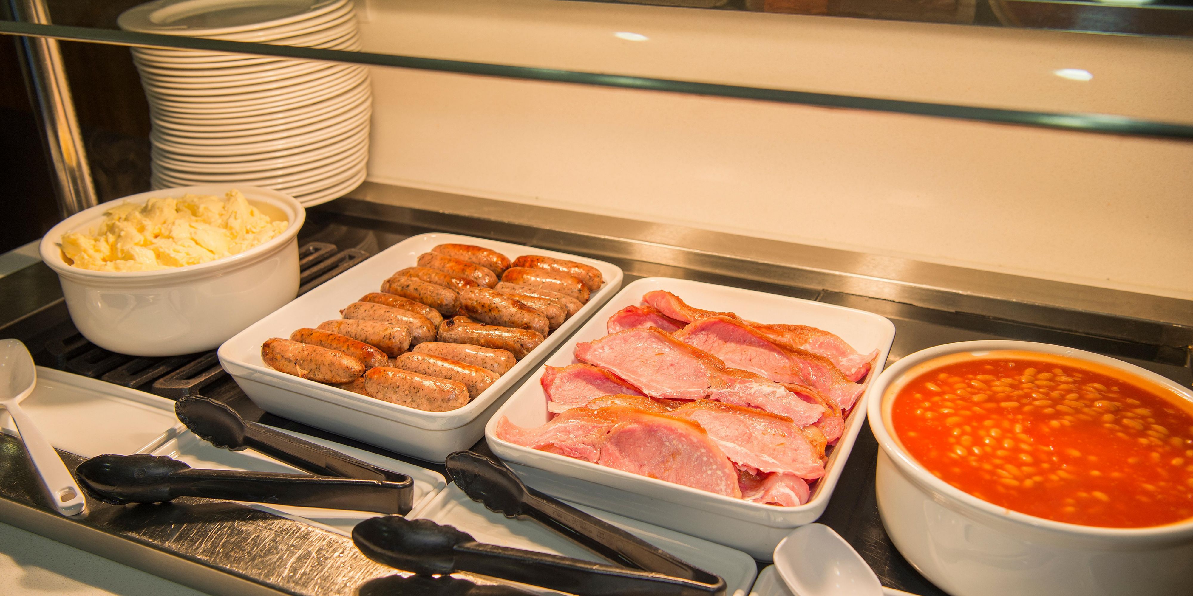 Sausages, baked beans and scrambled eggs feature in the Express Start Breakfast, along with fresh pastries, yogurts and more. Later, you can visit the bar for Costa coffee. A hearty dinner menu is offered from Monday to Friday in the stylish Great Hall.