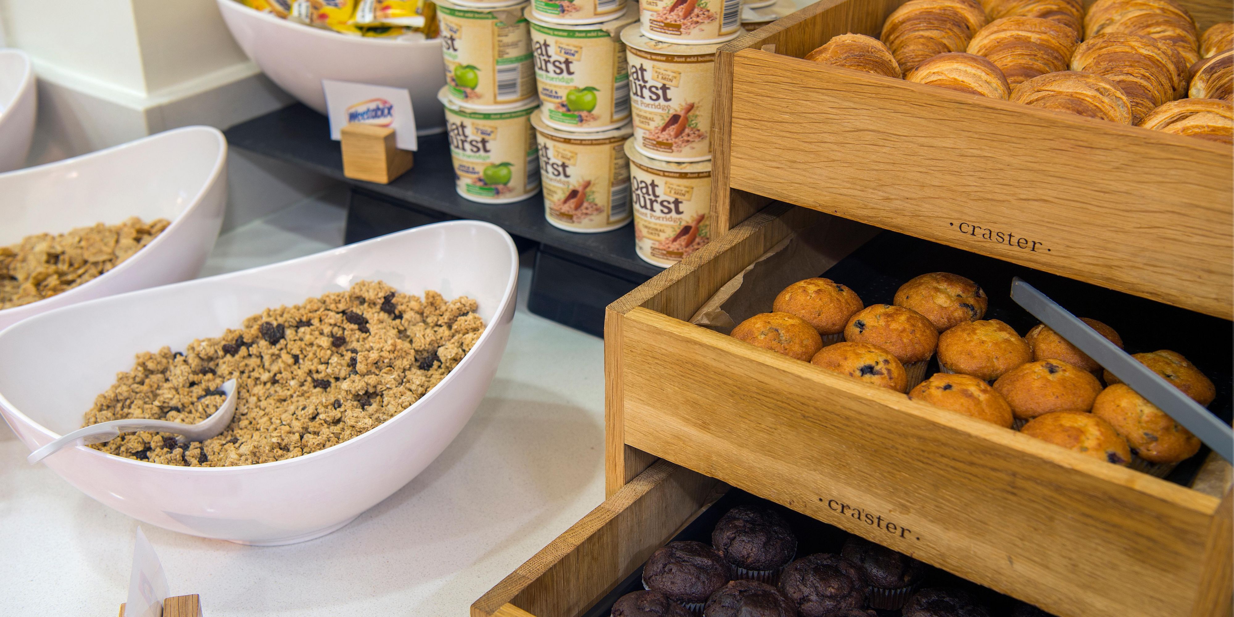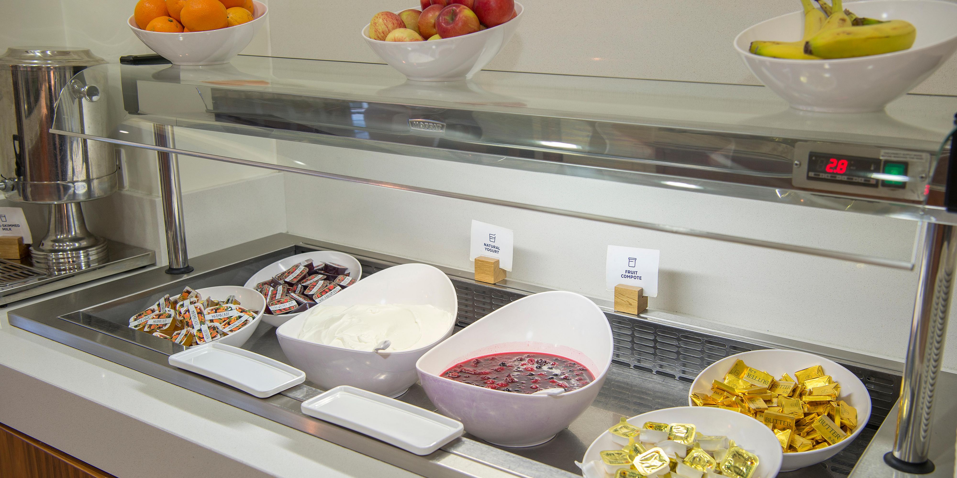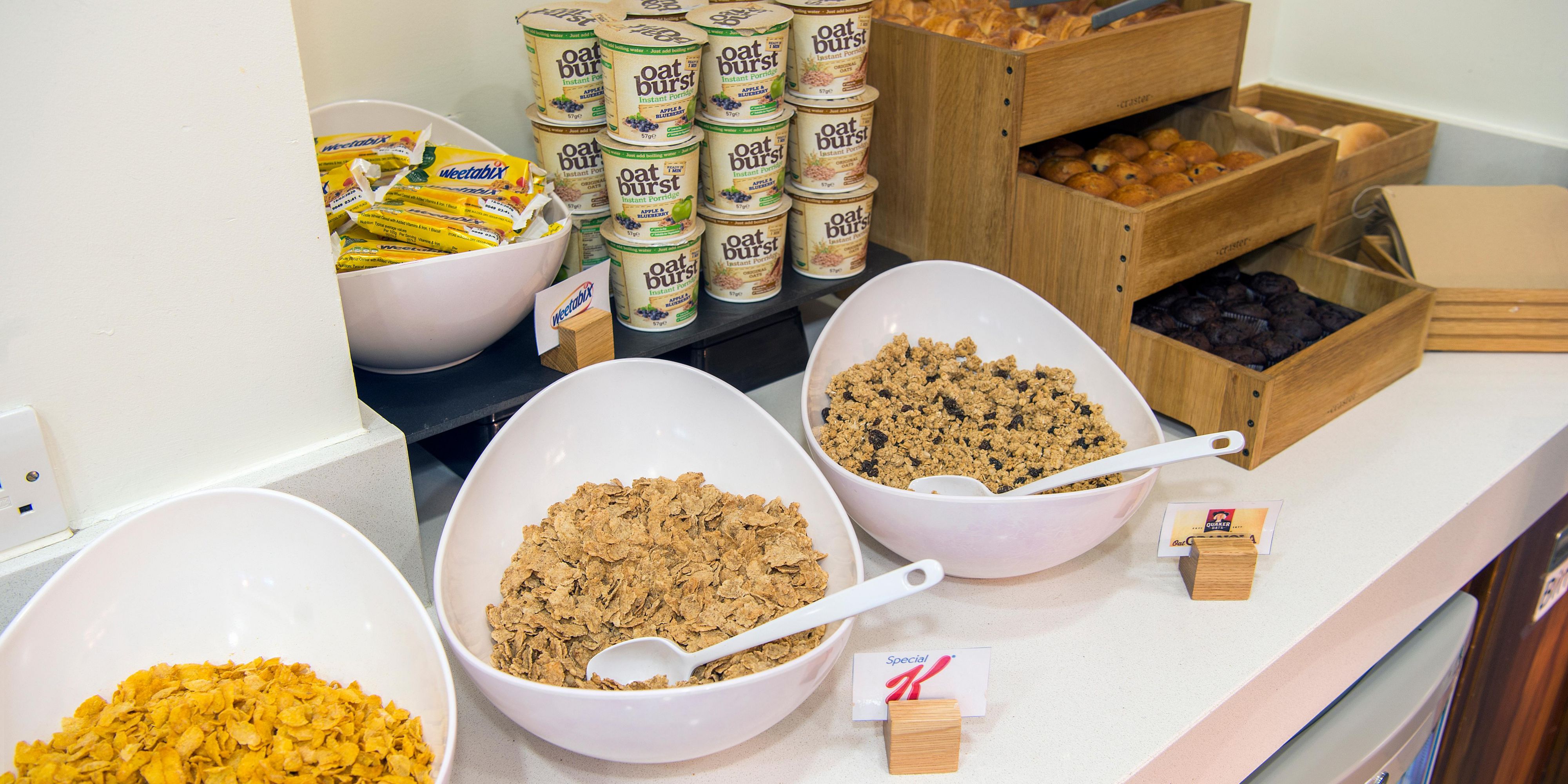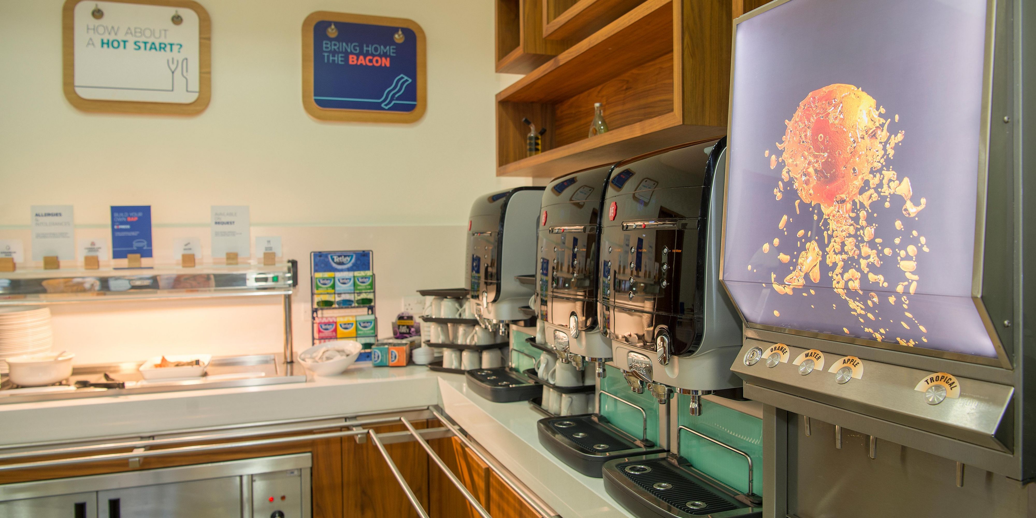 Sausages, baked beans and scrambled eggs feature in the Express Start Breakfast, along with fresh pastries, yogurts and more. Later, you can visit the bar for Costa coffee. A hearty dinner menu is offered from Monday to Friday in the stylish Great Hall.