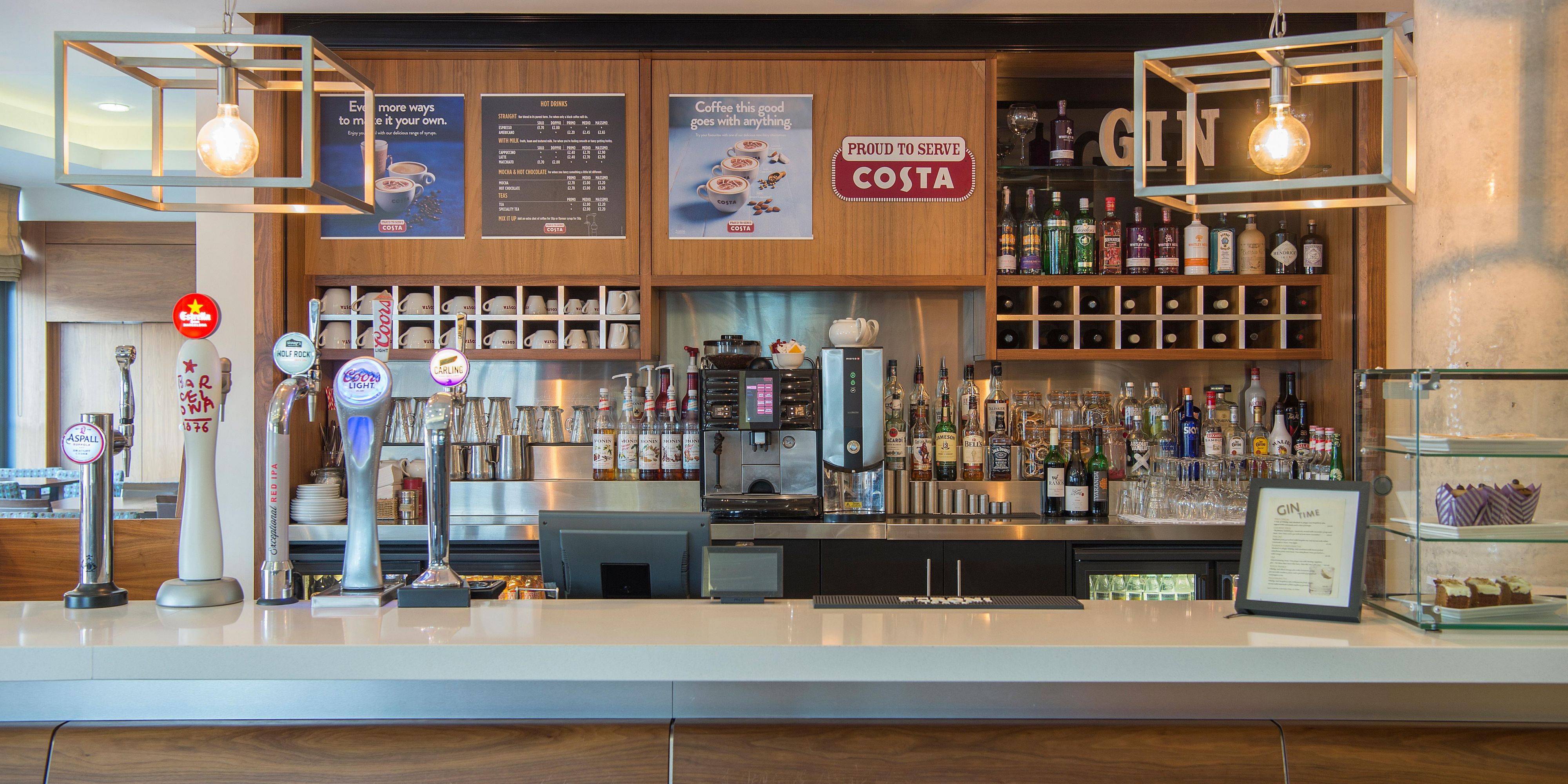 Relax and unwind in our comfy sofas in the Great Room Bar and Lounge at the Holiday Inn Express Sheffield City Centre where you can wind down with a drink and a bite to eat in an informal and friendly atmosphere. With plenty of comfortable sofas, and flat screen TVs; it’s the perfect place to chill out. The newly opened Costa Coffee shop is located in the Great Room as well.