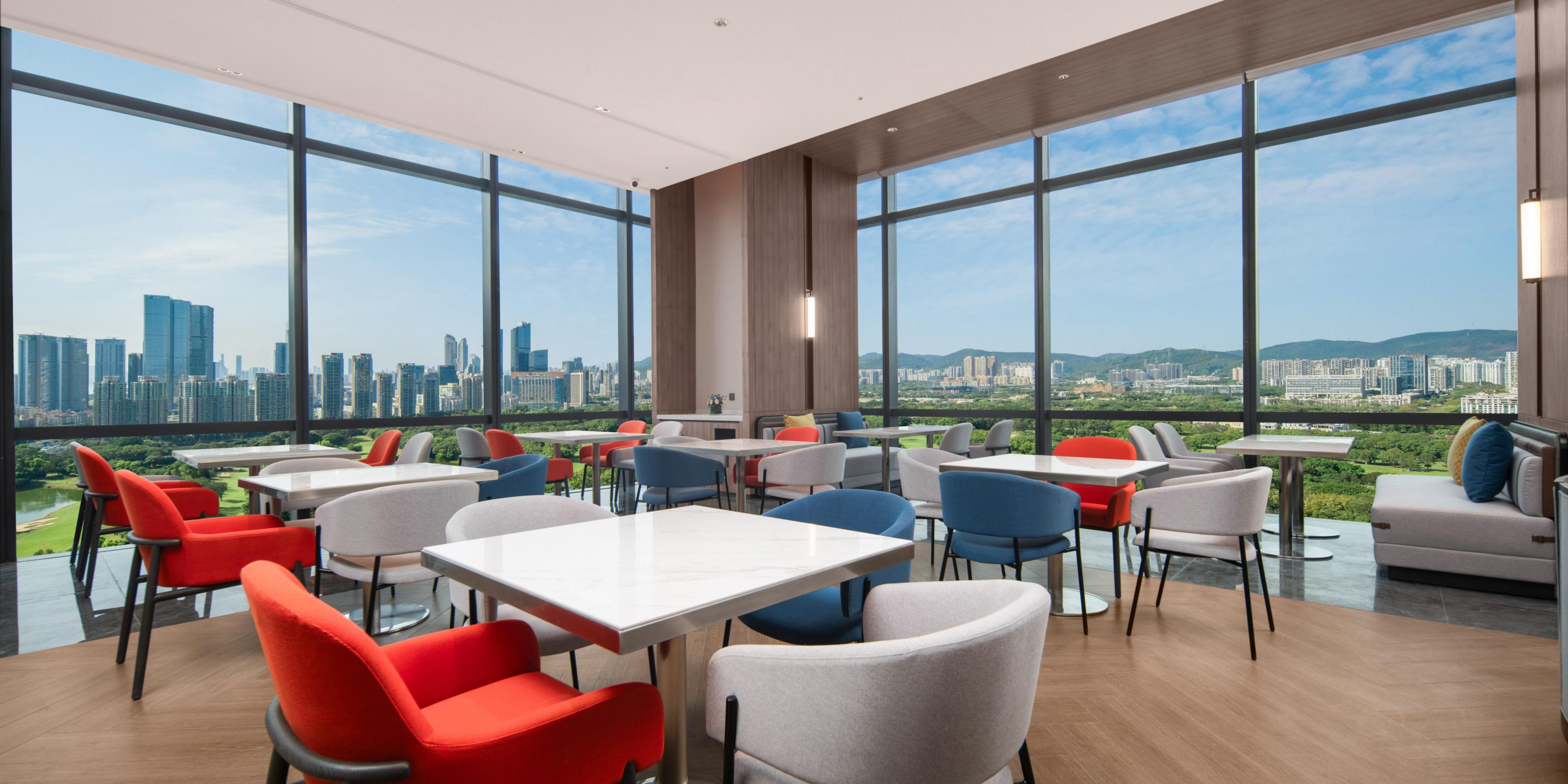 The Great Room provides a rich and delicious Chinese and Western buffet breakfast to start the journey of taste exploration. Multi faceted floor to ceiling windows offer views of the bustle of Shenzhen's Futian CBD and the greenery of the golf course.