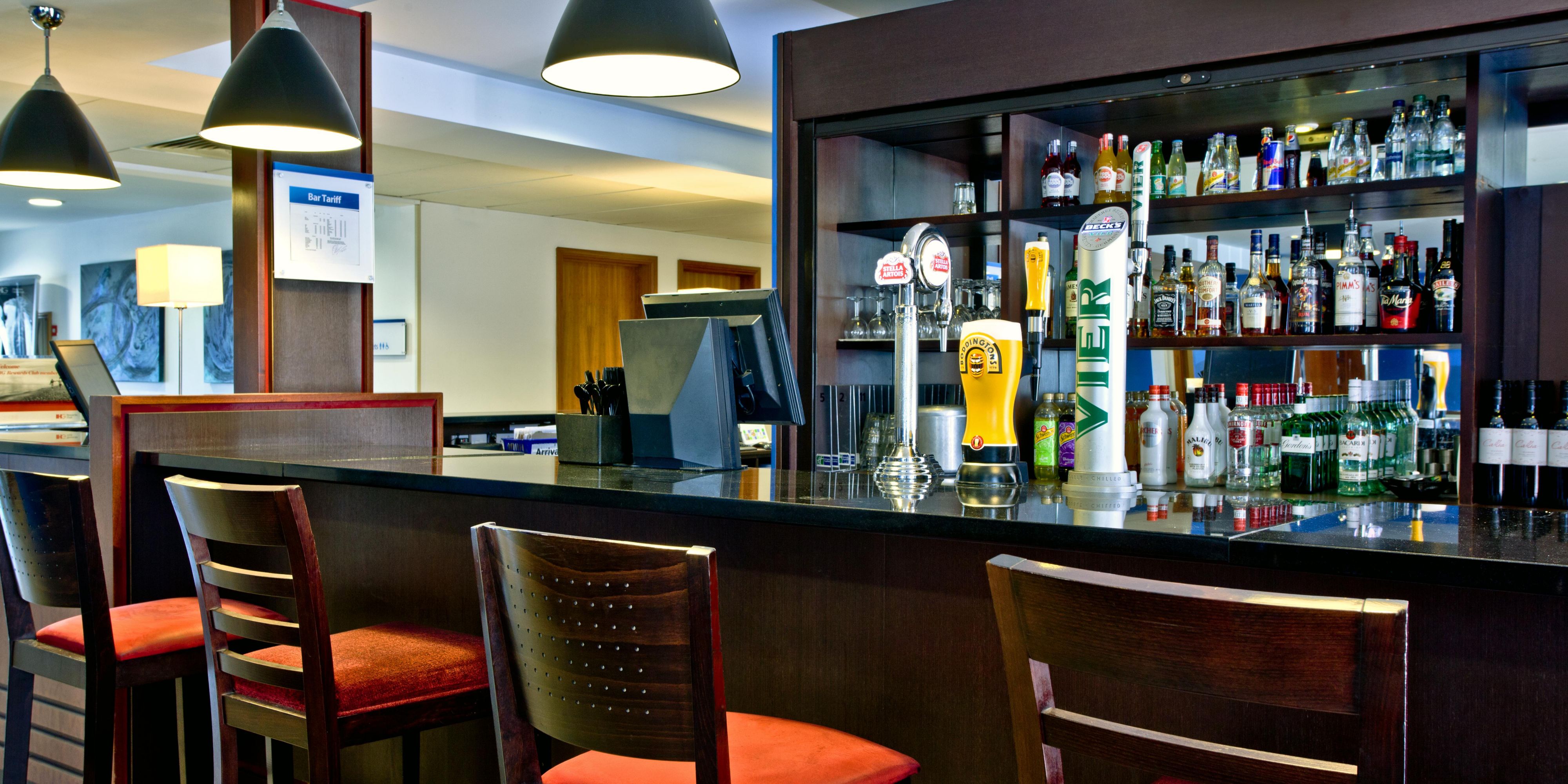 Open from 11am, the bar and lounge area at Holiday Inn Express Shrewsbury features an open-plan lobby, creating a relaxed and inviting space. With comfortable seating and a welcoming atmosphere, it's perfect location for enjoying a drink or snack from the café bar menu.
