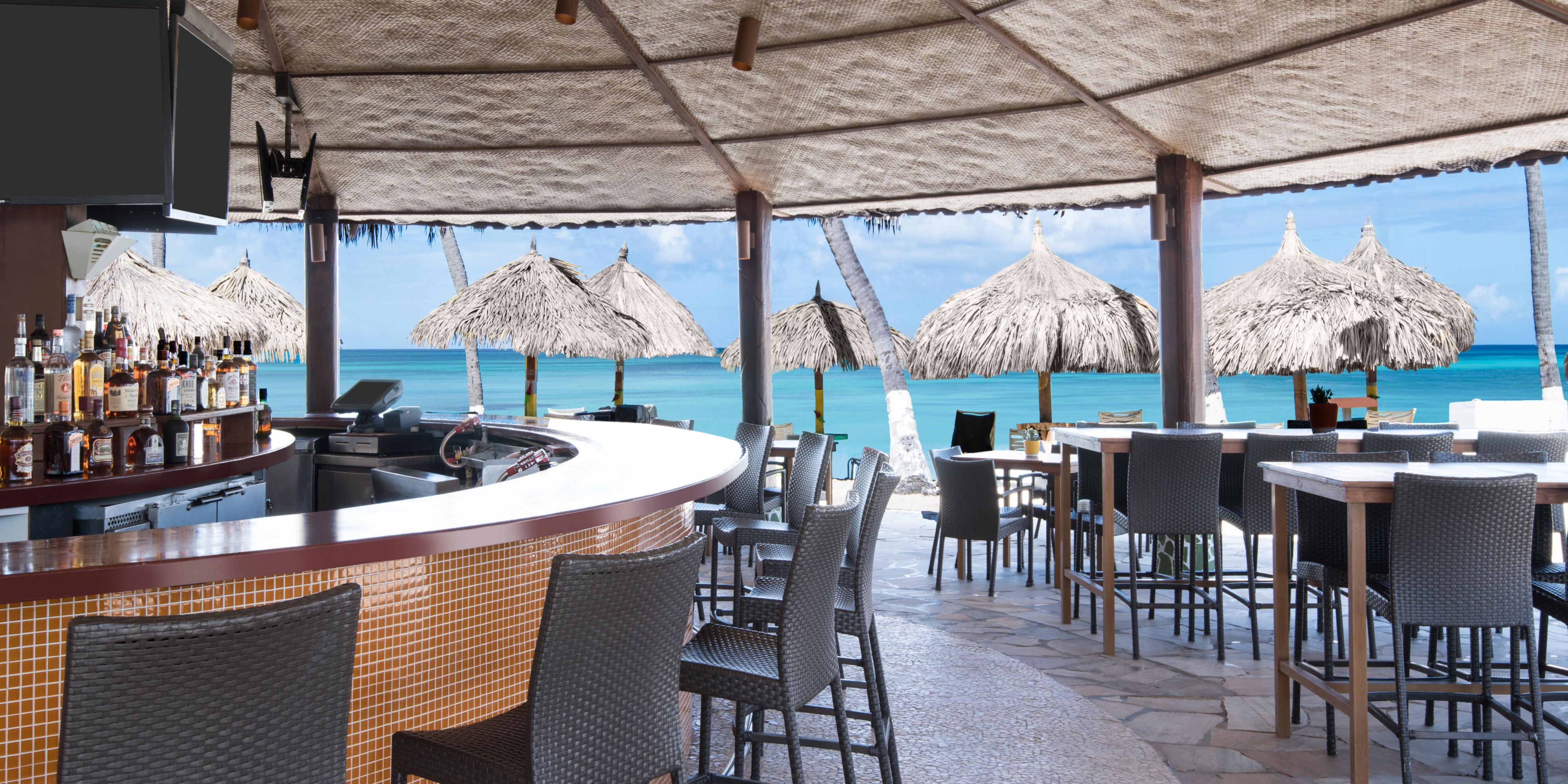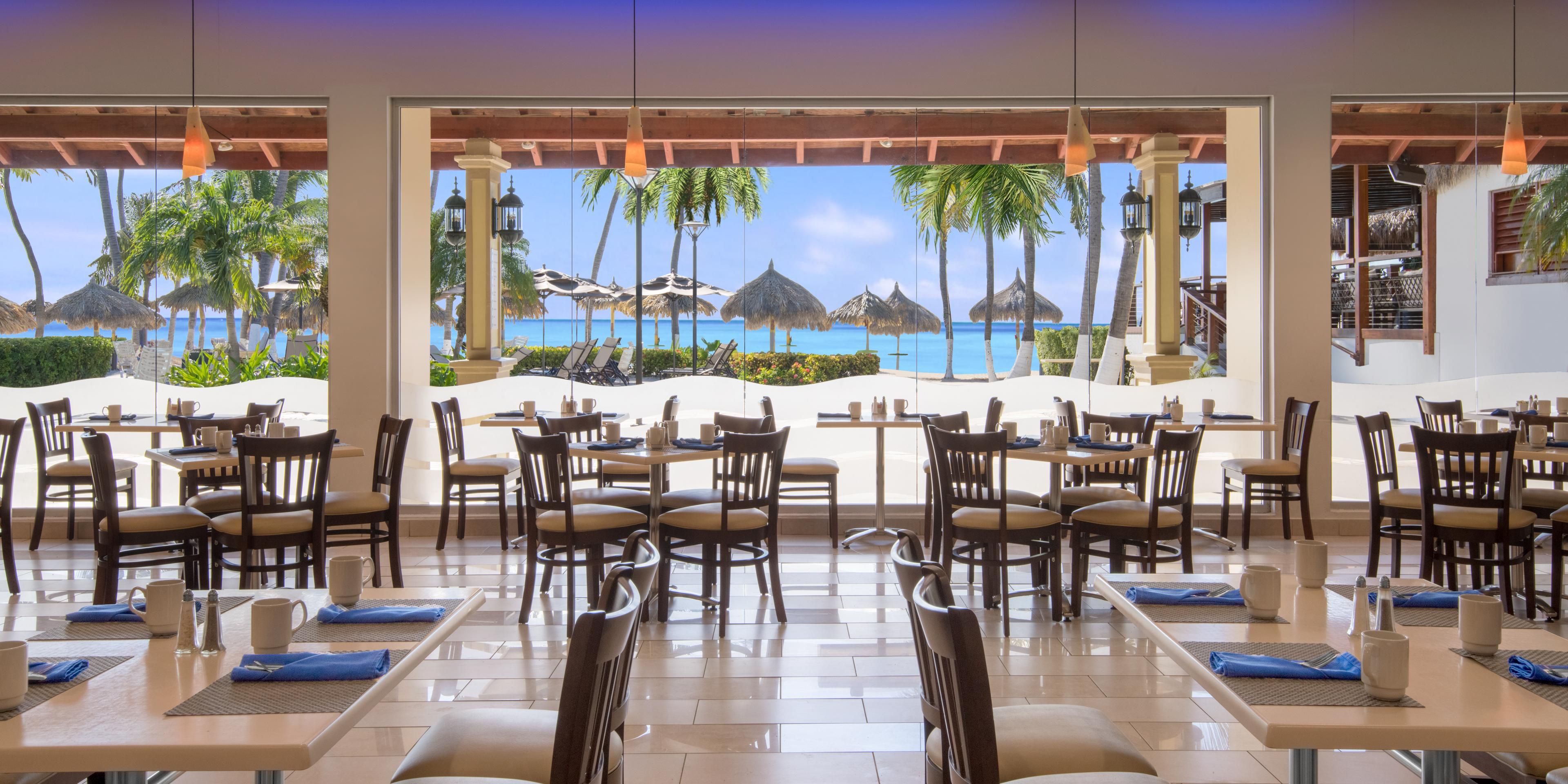 Located in the heart of the lobby right next to the courtyard, discover our Palm Lobby Bar & Café, the perfect place to start your day the right way. Grab your morning coffee before your tour, day at the pool or morning run. Take your favorite bites along with it and in the afternoon, catch your favorite drinks while at the Holiday Inn Resort Aruba! Give our bartenders a chance to surprise you with carefully crafted cocktails, martinis and bourbon specialties in breathtaking Aruba.