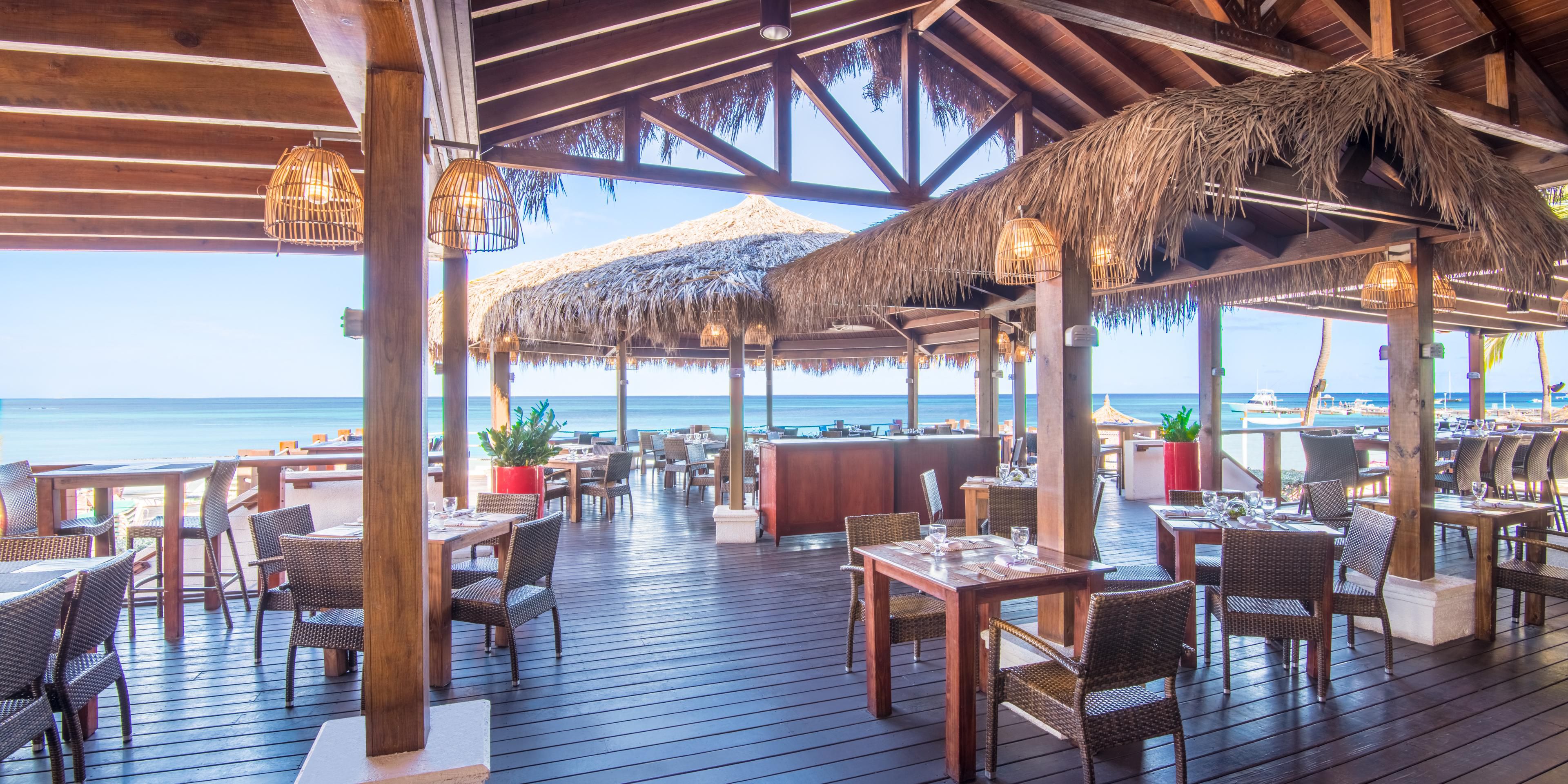 At our unique restaurant and bar, sample an international menu that is expertly crafted with fresh flavors from all over the world. Located on the shores of Palm Beach. Awaken your senses with the sound of the rolling waves, the cool breeze of the Caribbean trade winds and the spectacular colors of Aruba famous sunsets by booking our Dining on the Beach experience.