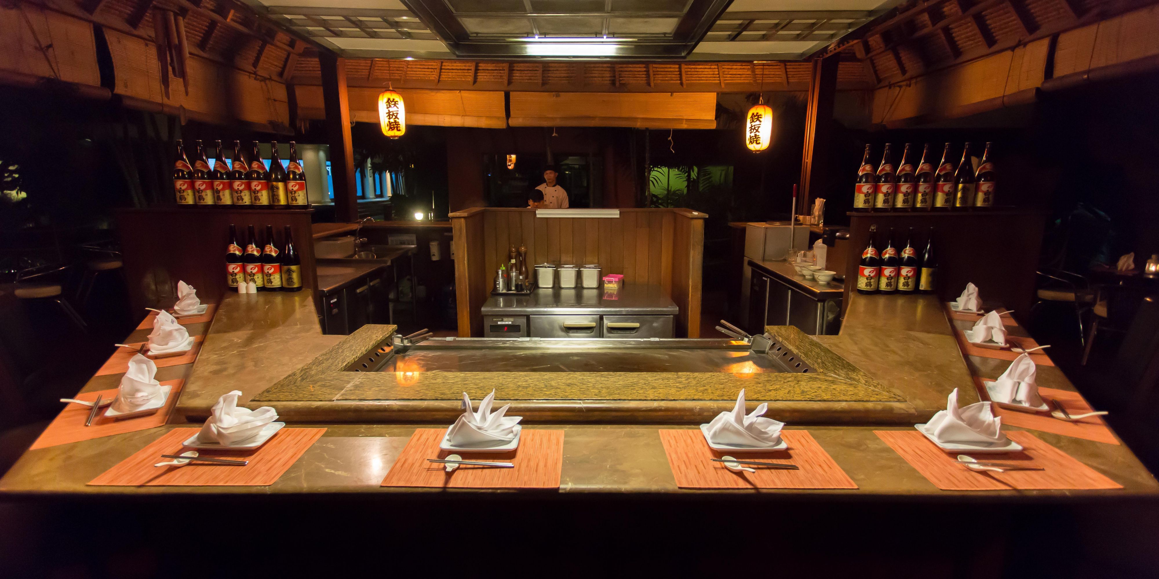 Be captivated by our Chef's live flambé demonstration right before your eyes as you partake in an authentic Teppanyaki feast under the stars.
