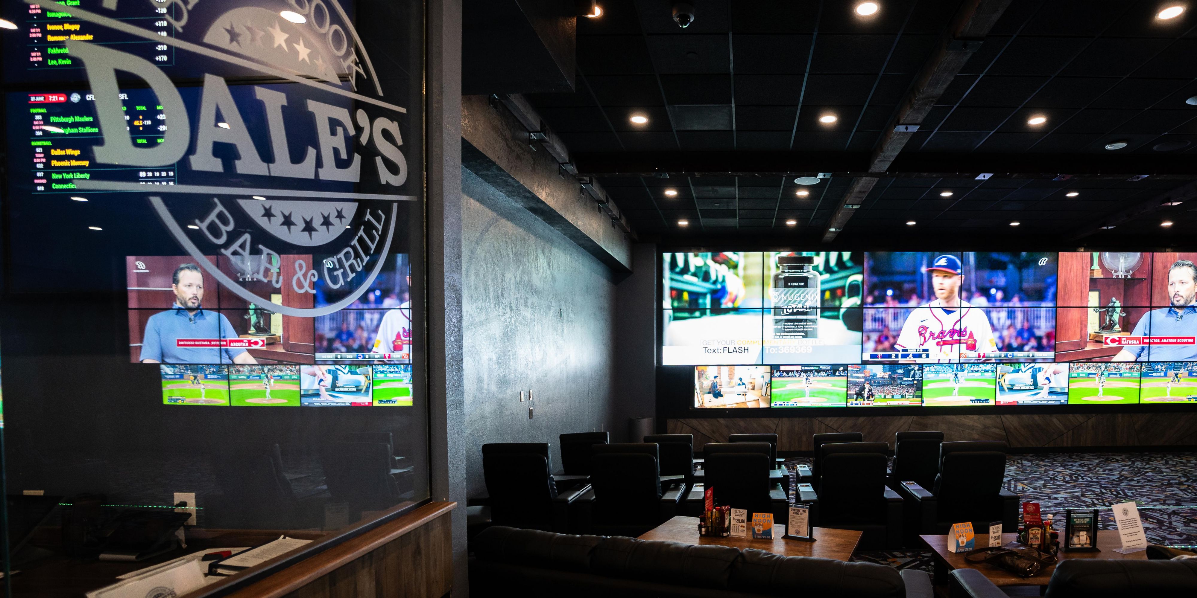 It’s time to eat, drink and play in the most modern Sports Bar in Deadwood! Newly renovated Dale’s Sportsbook, Bar & Grill offers the most modern technology available. Enjoy any sporting event on dozens of big screens; including a video wall that will feature up to 3 games at one time on three 172-inch screens, not to mention nearly 30 screens that are 65+ inches! Kick back on over 20 plush recliners and enjoy delectable food – from our famous burgers to South Dakota walleye.