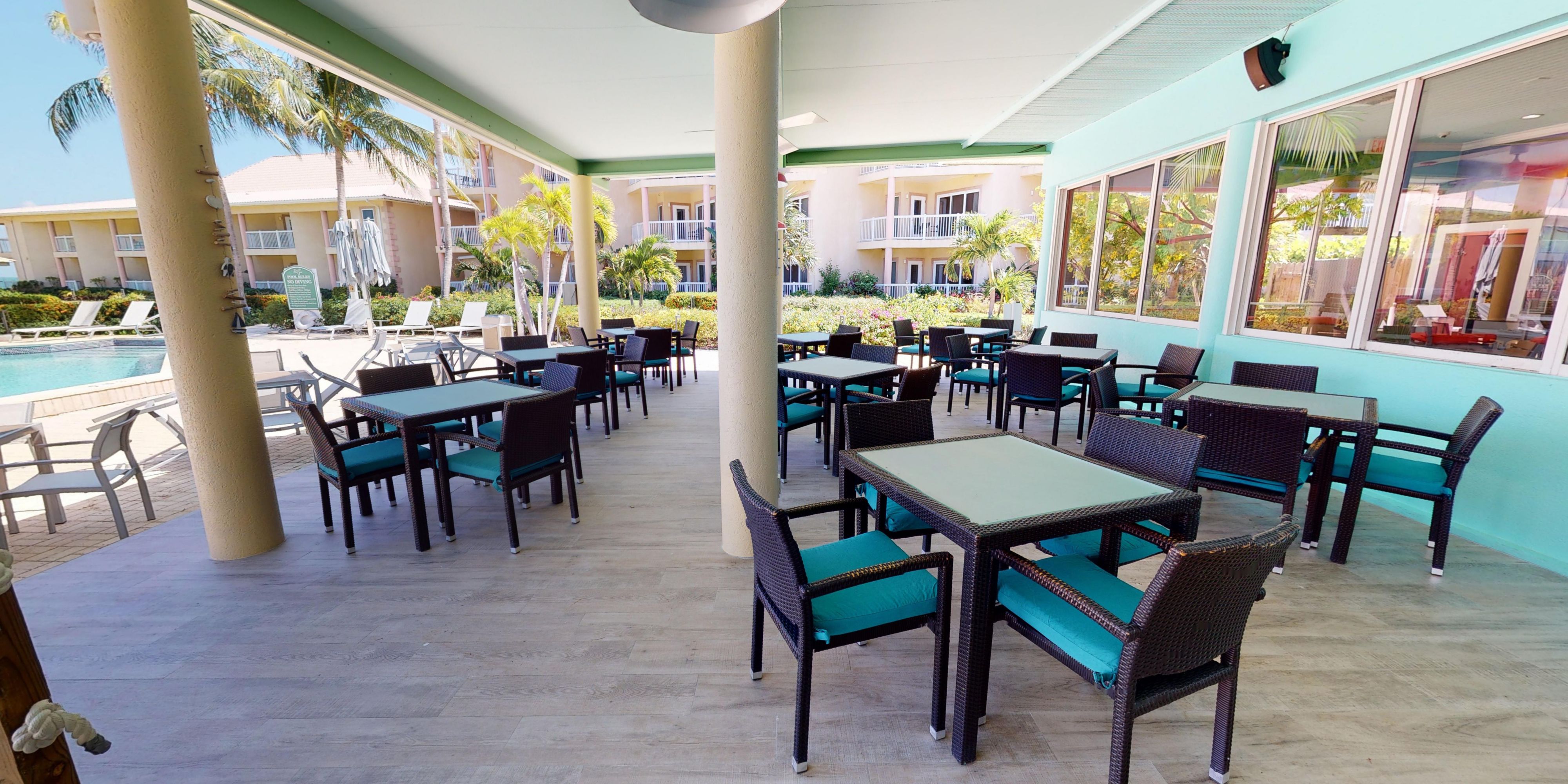 The Driftwood Bar and Grill was completely renovated in 2021 and is a Caribbean and American themed restaurant that is open for breakfast, lunch and dinner. Enjoy coastal inspired cuisine and an assortment of delicious local meals with uninterrupted views overlooking the North Sound waters. Guests can choose to dine indoors, sit in the open air covered patio section, or poolside for meals.