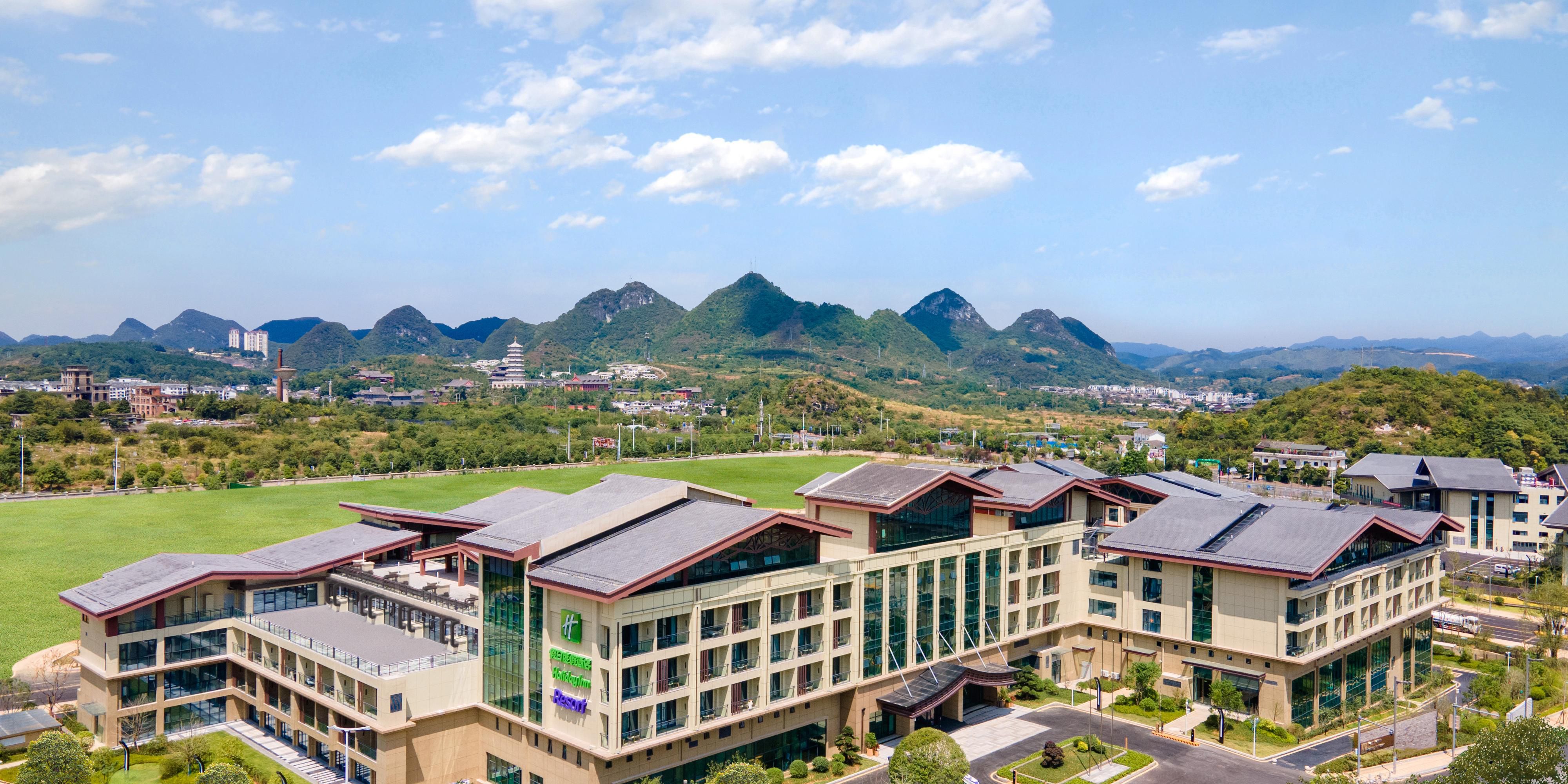探索贵阳,下榻贵阳青岩假日度假酒店。 酒店地理位置优越,位于花溪区青岩镇,距离贵阳龙洞堡国际机场 26公里,我们临近的景点有青岩古镇,花溪湿地公园。靠近酒店的定广大道或是附近充足的出租车便于您前往城市的其它地区。 贵阳青岩假日度假酒店的客房均配有软硬双枕,让您享受舒适睡眠;高速网络让您时刻保持连线。在酒店现代的健身中心健身,焕发身心活力,光顾享用全日餐厅的的美味佳肴。何不在大堂吧以下午茶或是晚间鸡尾酒犒赏自己?童趣满满的布迷亲子房和“儿童食宿欢乐尽享”礼遇,为家庭客人带来更多惊喜。假日酒店标识性品牌服务定能让宾客在酒店宾至如归,笑由心生。 在酒店包括大宴会厅在內的6间会议室中举办活动,我们的大宴会厅可轻松容纳300人。无论是董事会议,温馨的香槟招待酒会或是盛大的婚礼,贵阳青岩假日度假酒店的宴会团队还可以定制会议设施以满足您的活动的需求。 无论是假期,还是公务,让贵阳青岩假日度假酒店成为您下一次到访贵阳的酒店吧。