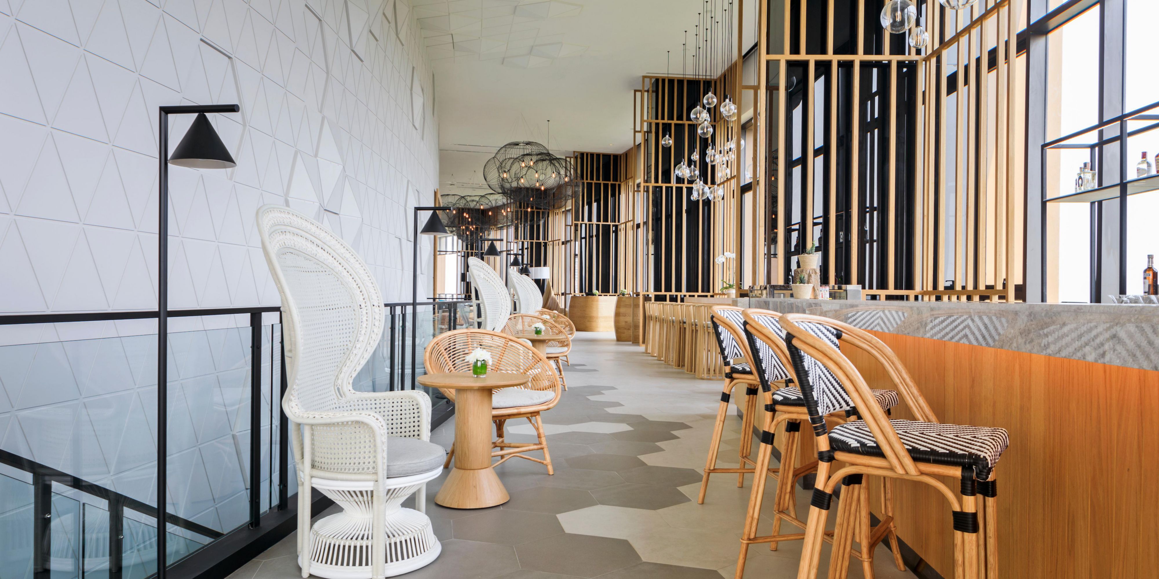放松身心在我们时尚的大堂咖啡厅Thalay café。无论您喜欢在吧台上的高椅子还是在低躺椅上,都可以品尝新鲜冲泡的咖啡以及各种糕点和烘焙食品。您可以环顾四周,欣赏到海洋形状和纹理灵感的令人惊叹的天花板雕塑。